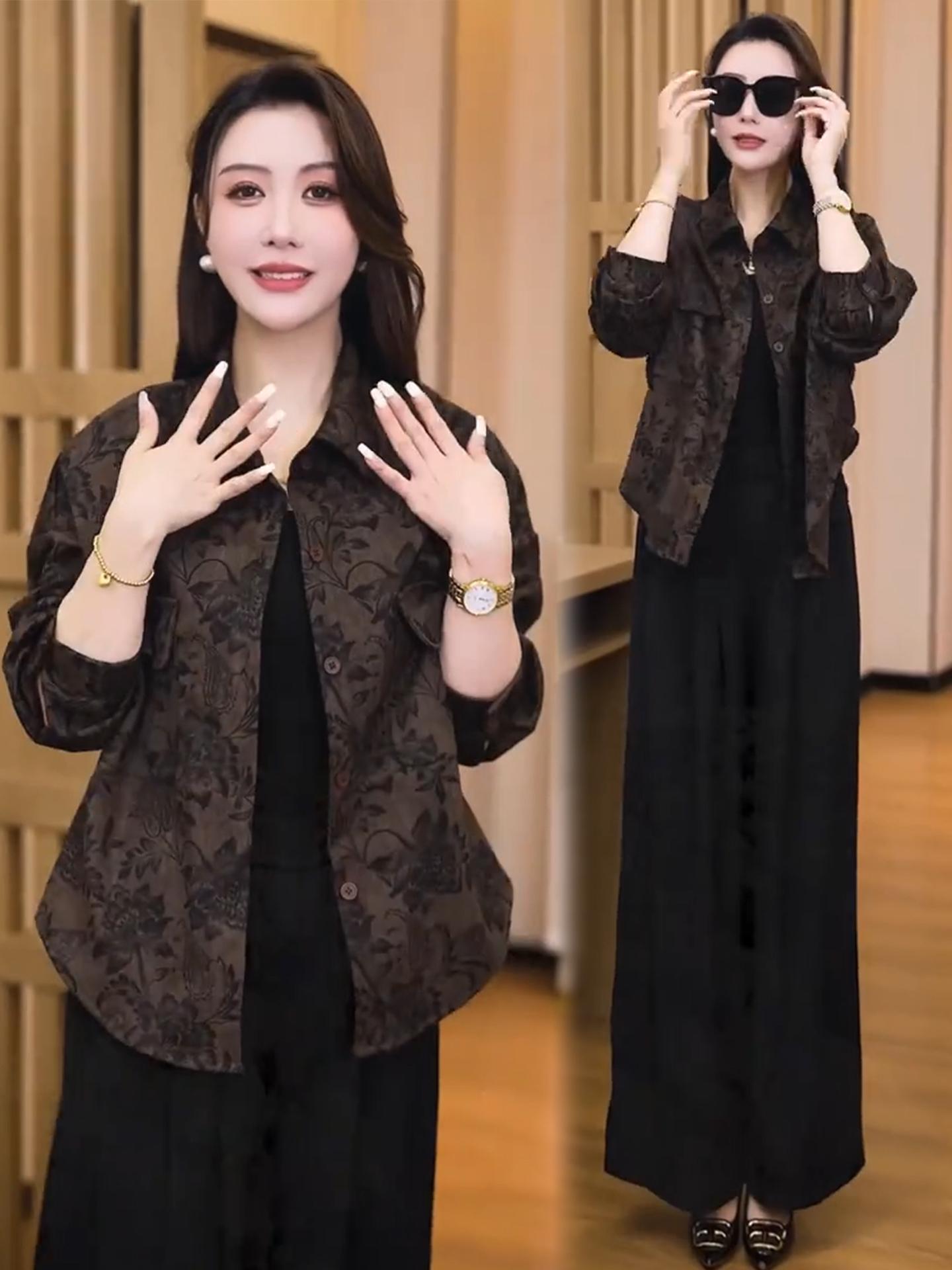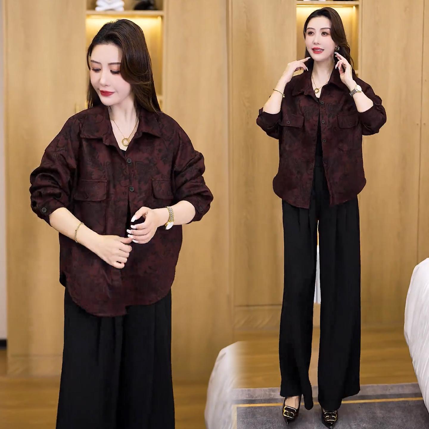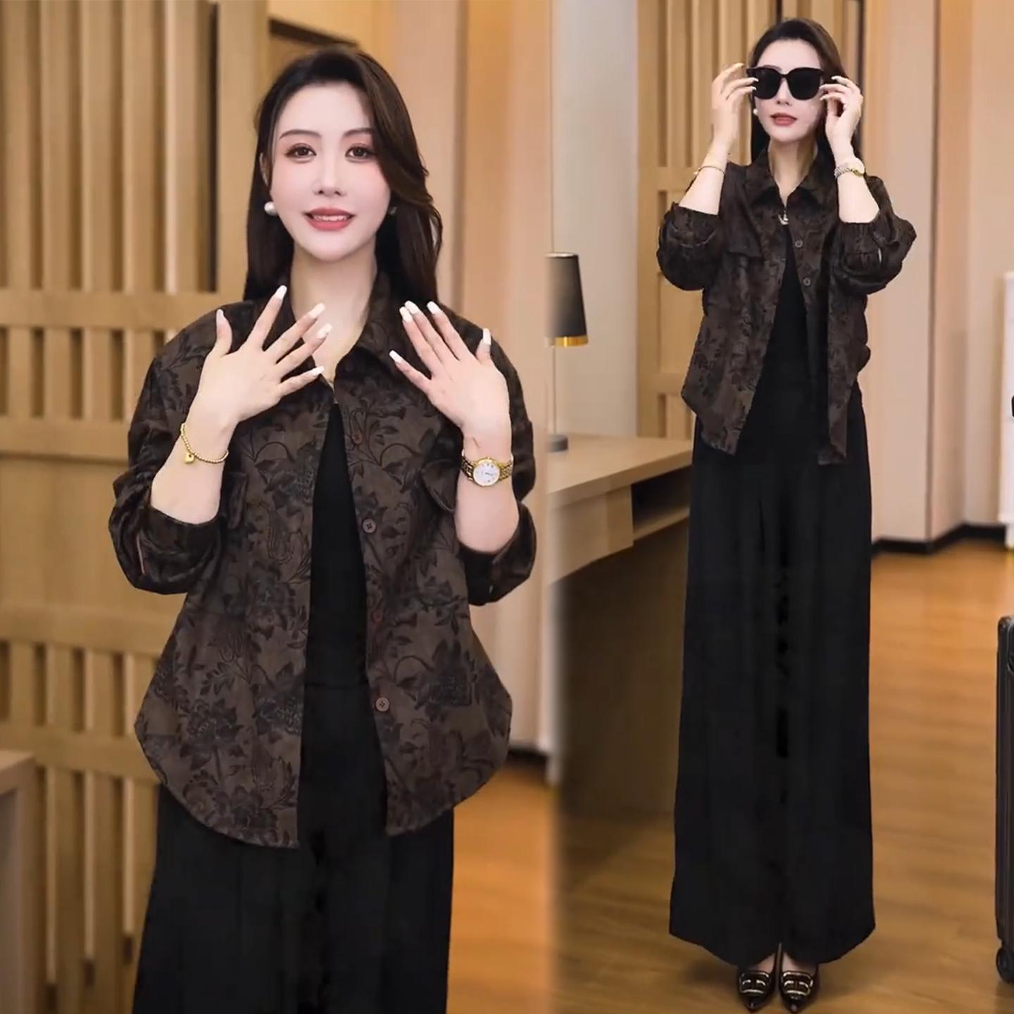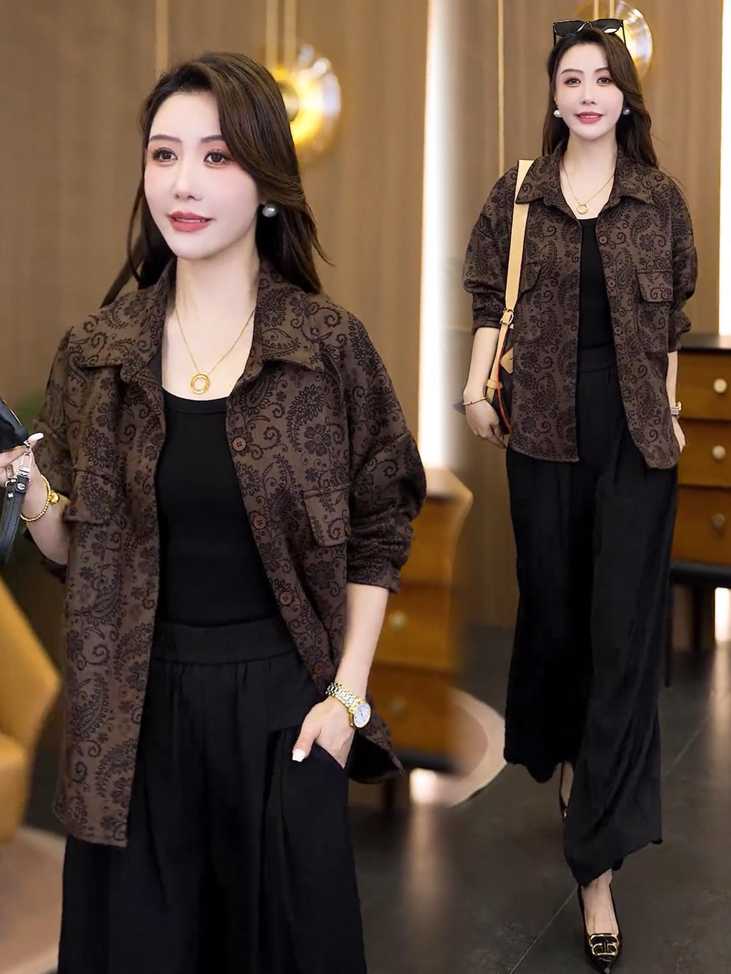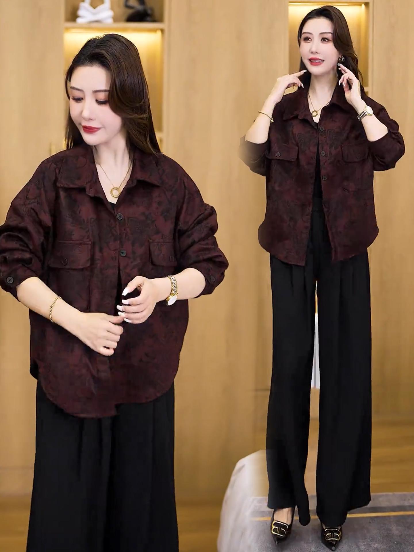 Camisa de Moda para Mujer 2025 Otoño Nuevo Estilo Estilo Extranjero Suelta Adelgazante Sentido del Diseño Estampado Casual Manga Larga