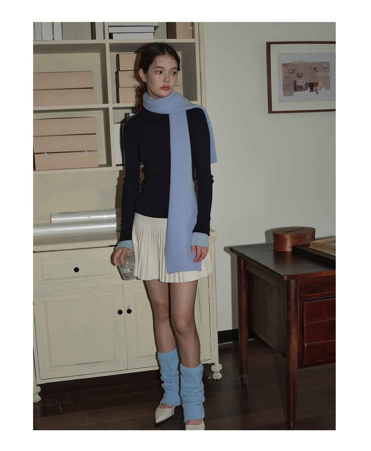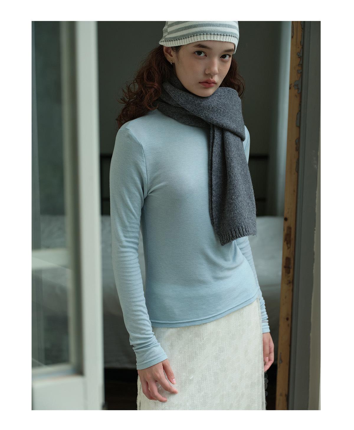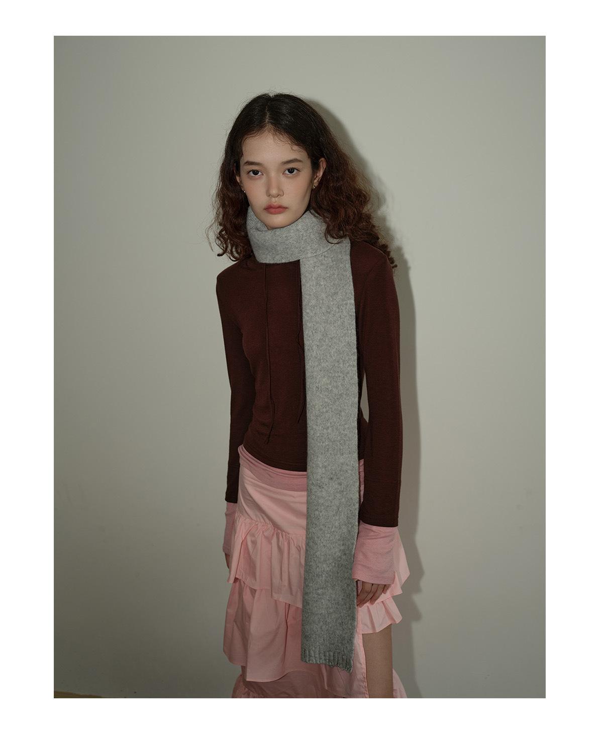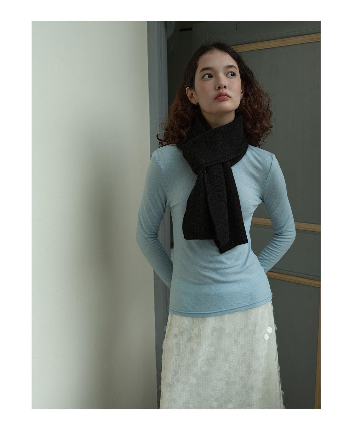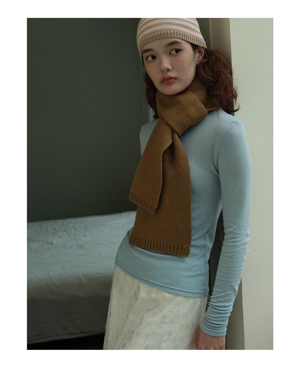 Bufanda Básica de Punto de Color Sólido de Lana 100% Algodón Puro Seleccionado para Otoño e Invierno para Mujer, Bufanda Pequeña de Lana Suave, Estilo Coreano
