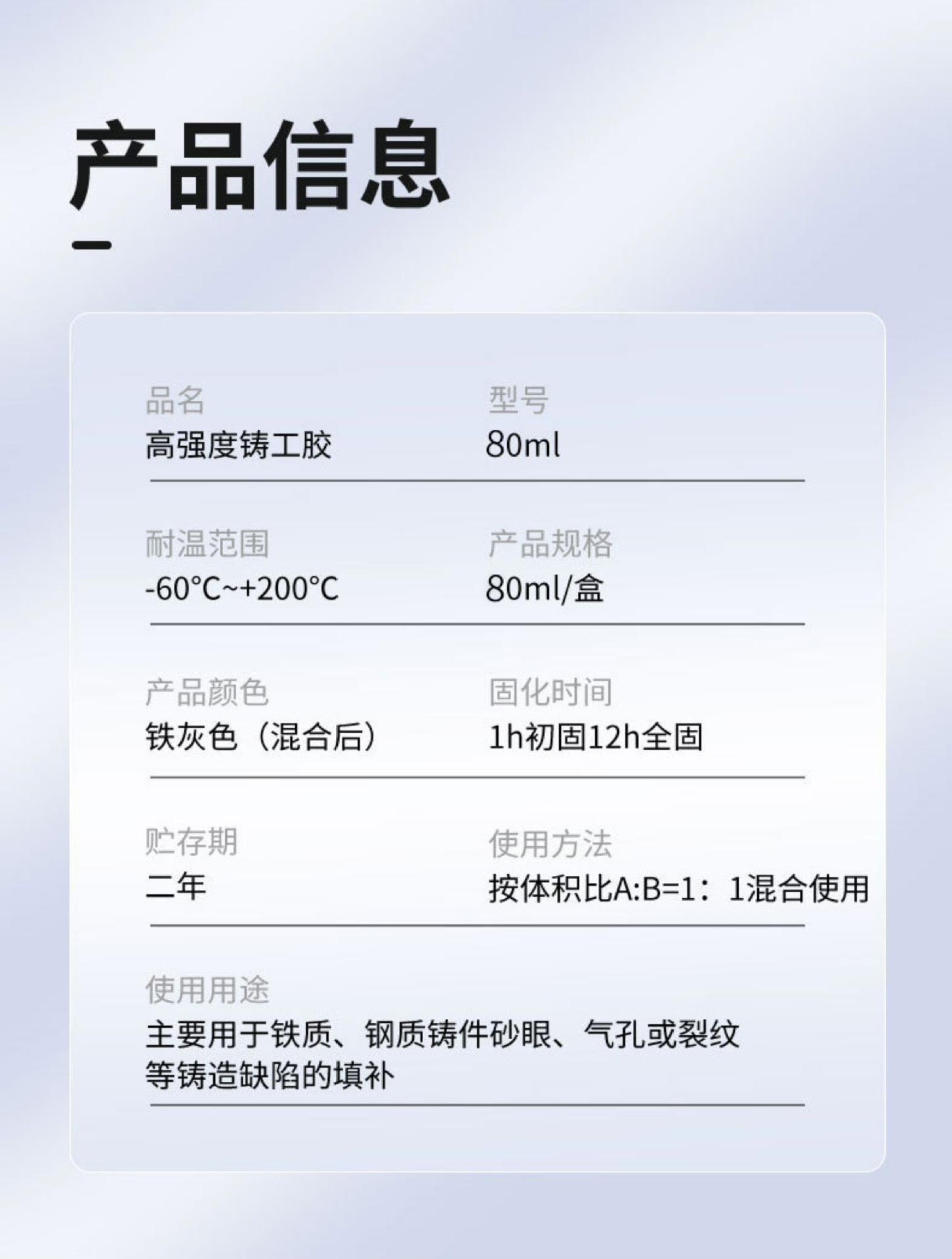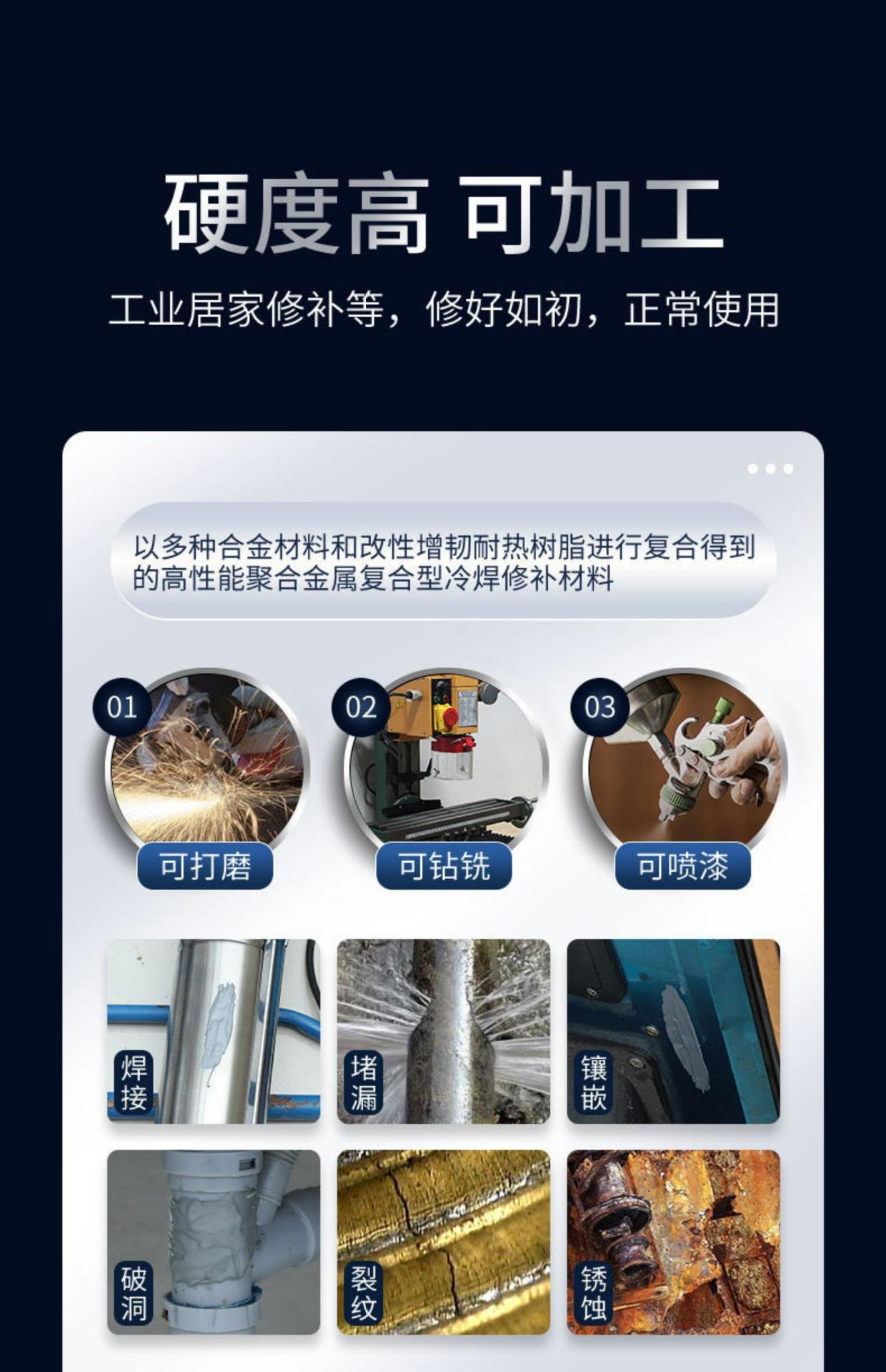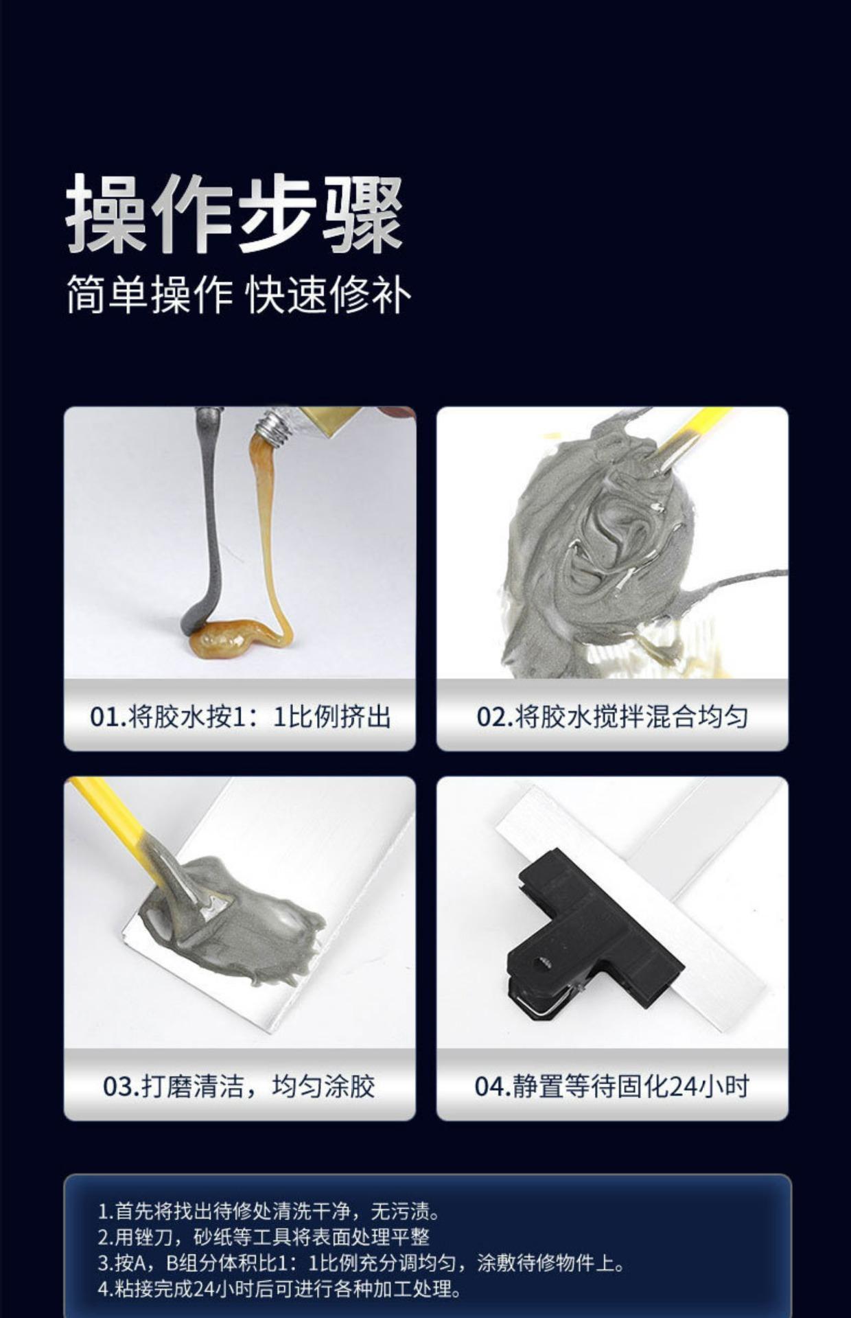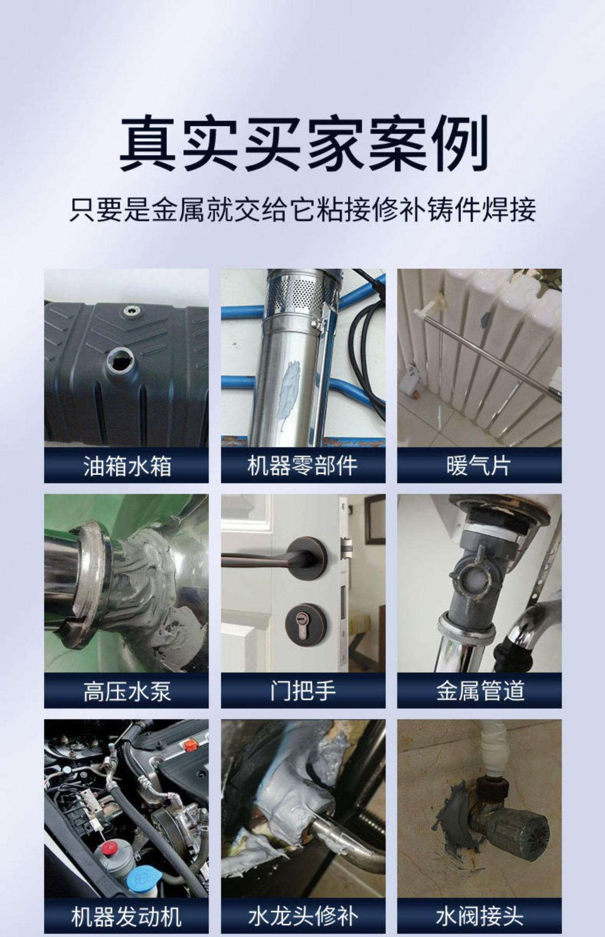 Pegamento de fundición resistente a altas temperaturas resistente a la corrosión pegamento para soldar AB pegamento para soldadura eléctrica fuerte adhesión hierro fundido acero inoxidable metal agente reparador