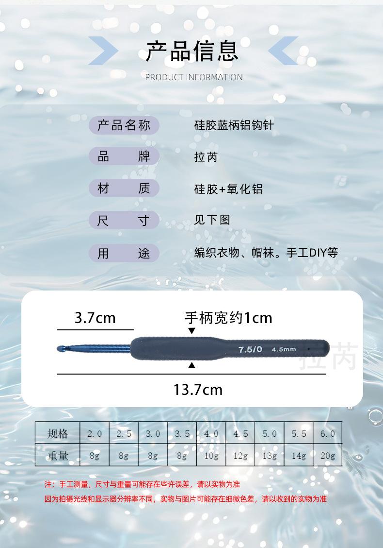 Traje de ganchillo azul transfronterizo de mango suave, tejido de bricolaje, lana de ganchillo, bolsa de ganchillo, ganchillo de silicona antideslizante