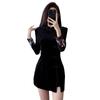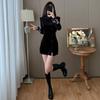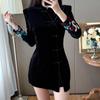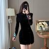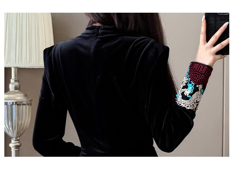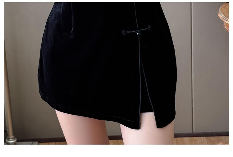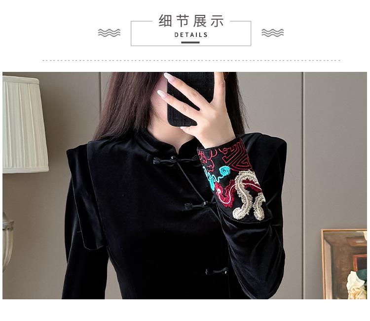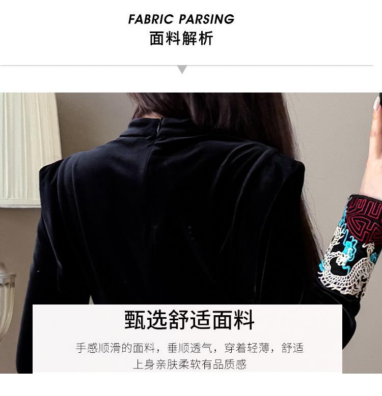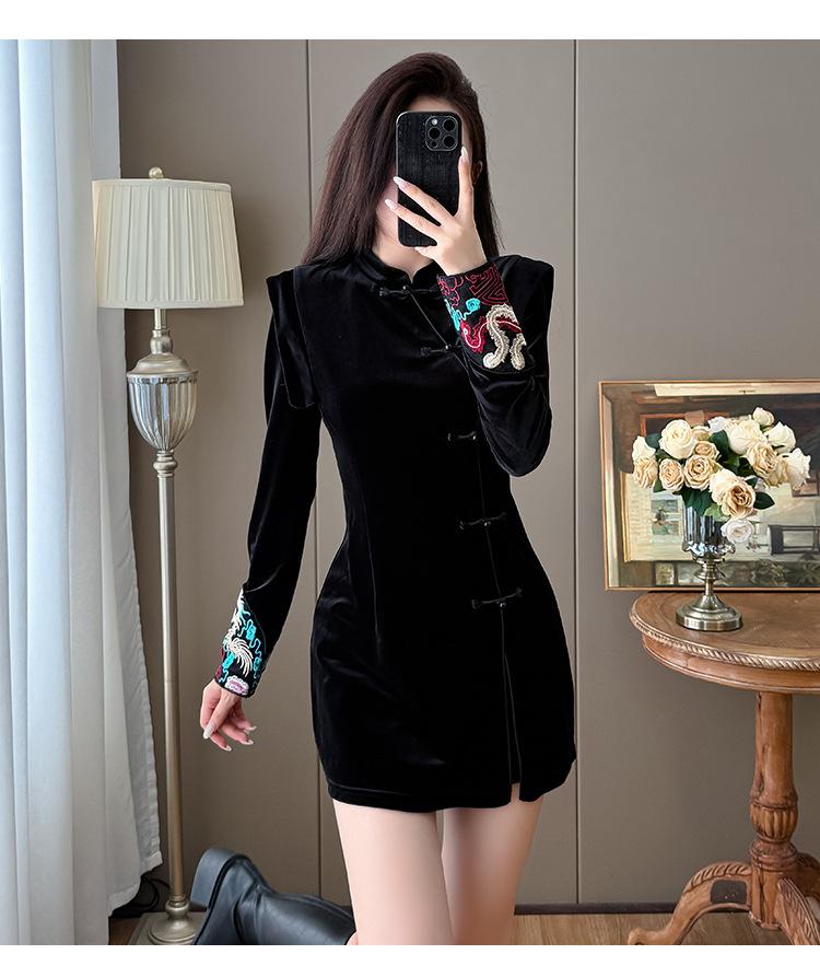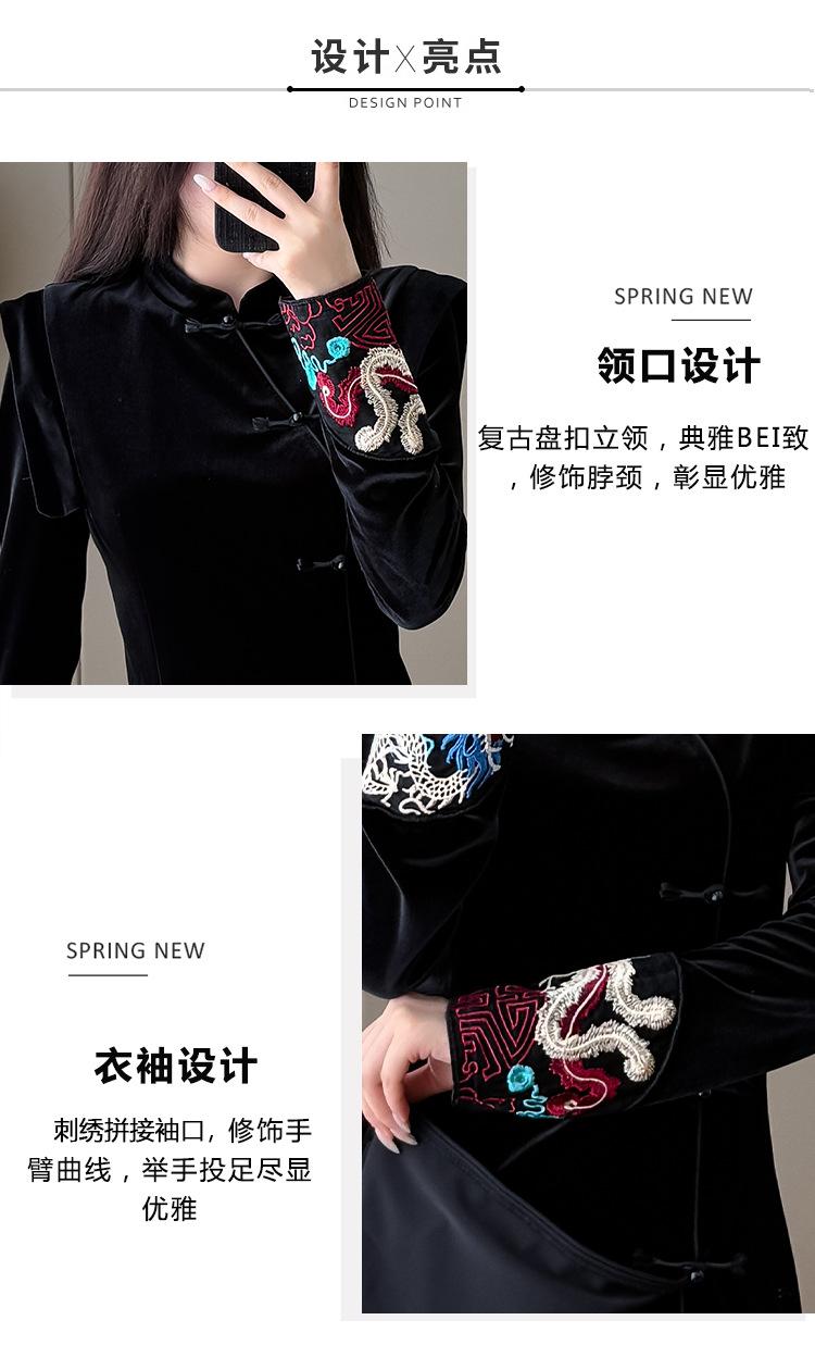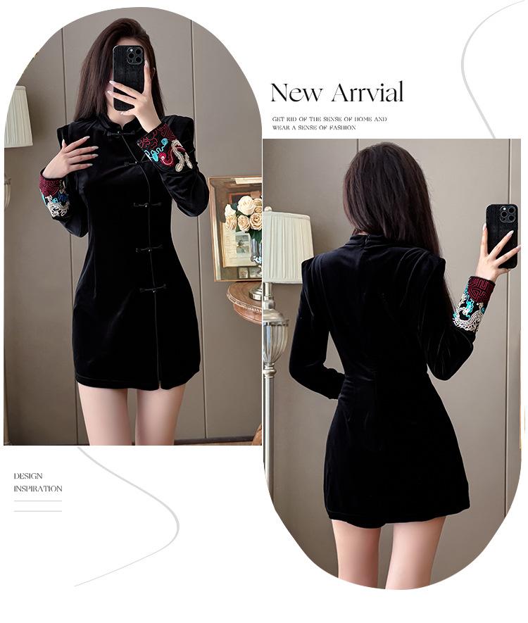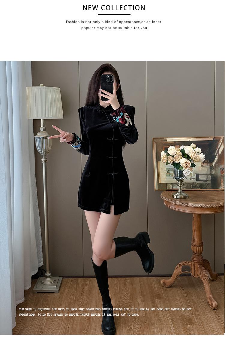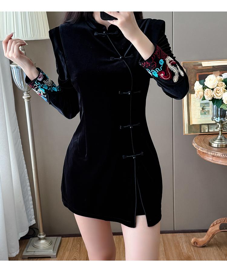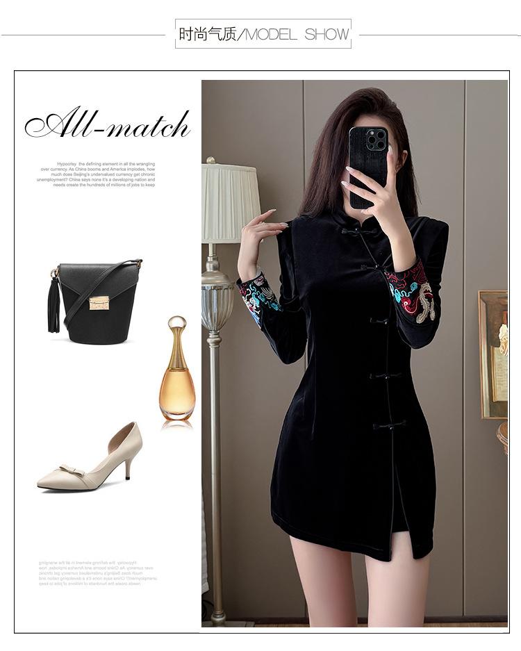 Foto real nuevo vestido de terciopelo bordado estilo chino 2025 otoño vestido estilo cheongsam retro + leggings conjunto de dos piezas