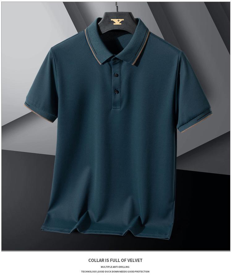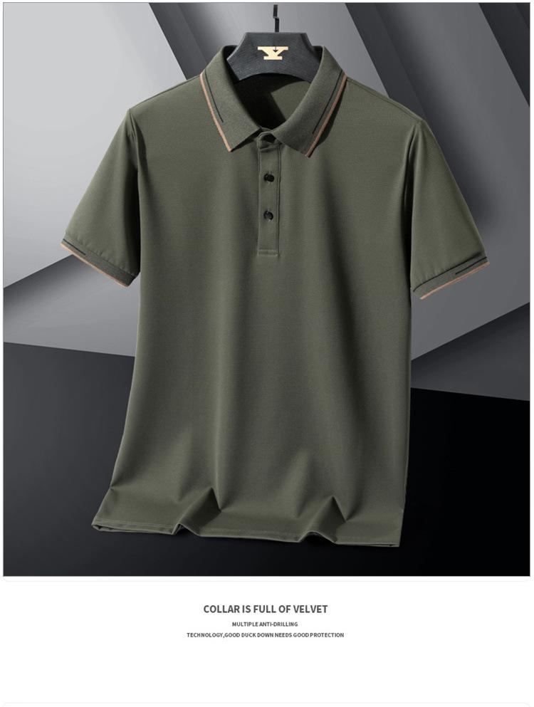 Polos de Verano Transfronterizos de Estilo Sin Planchado de Manga Corta, Polos Casuales de Lujo Ligero para Negocios de Color Sólido, Ropa Deportiva para Hombre de Talla Grande