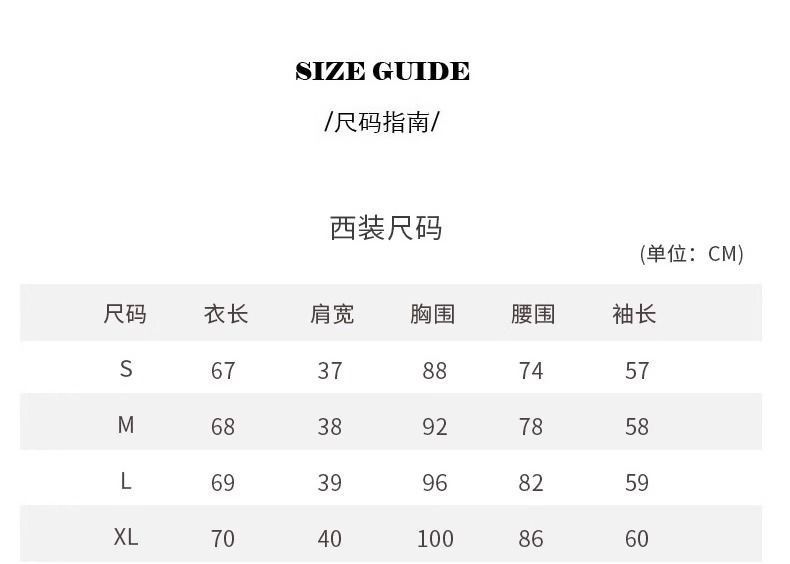 S Suggested weight【85-100】, M Suggested weight【101-115 jin】, L suggested weight【116-128 jin】, XL suggested weight【129-145 jin】