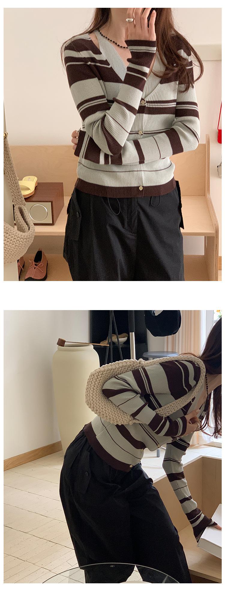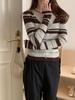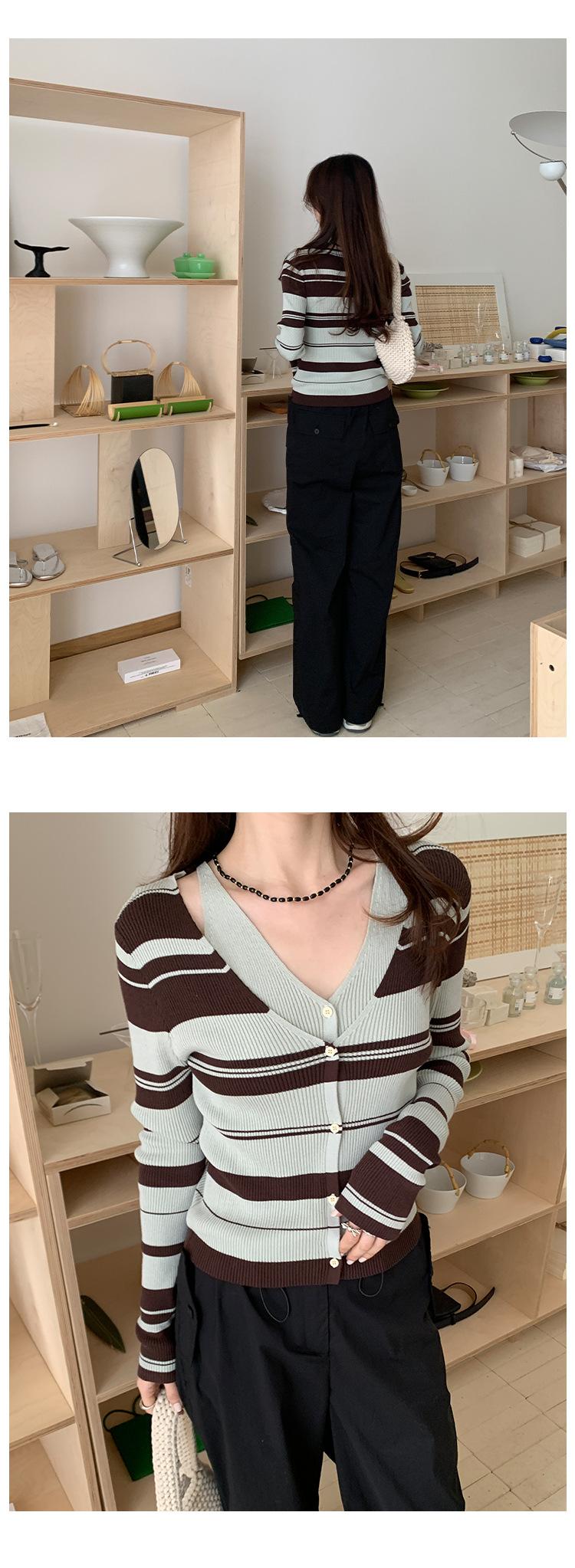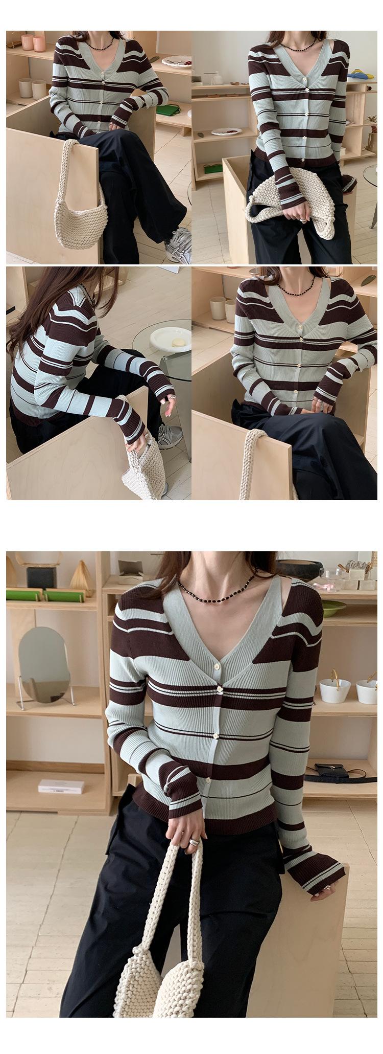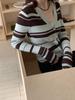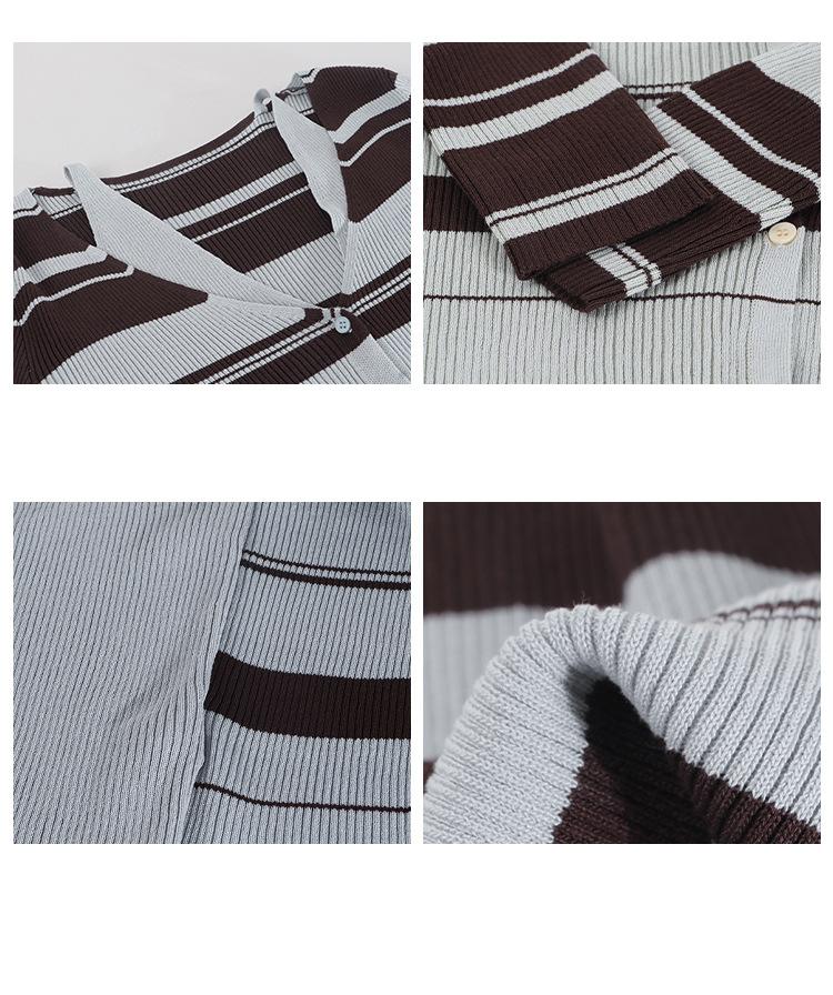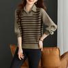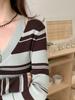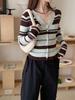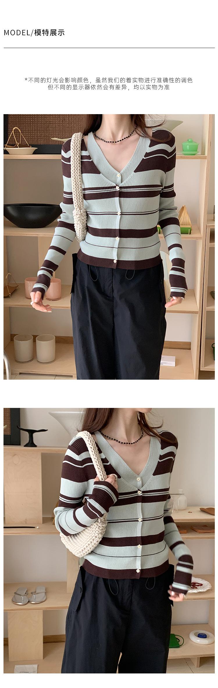 Suéter de Punto de Manga Larga a Rayas de Estilo Coreano Falso de Dos Piezas para Mujer Otoño Nuevo Sentido del Diseño Adelgazante Cuello en V Top Casual
