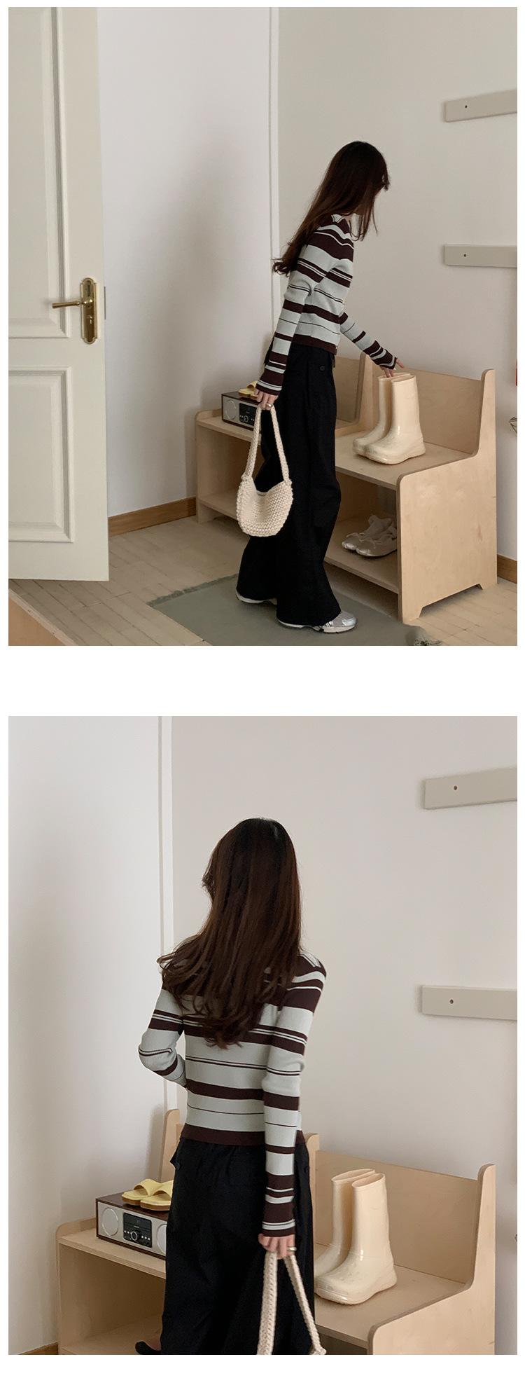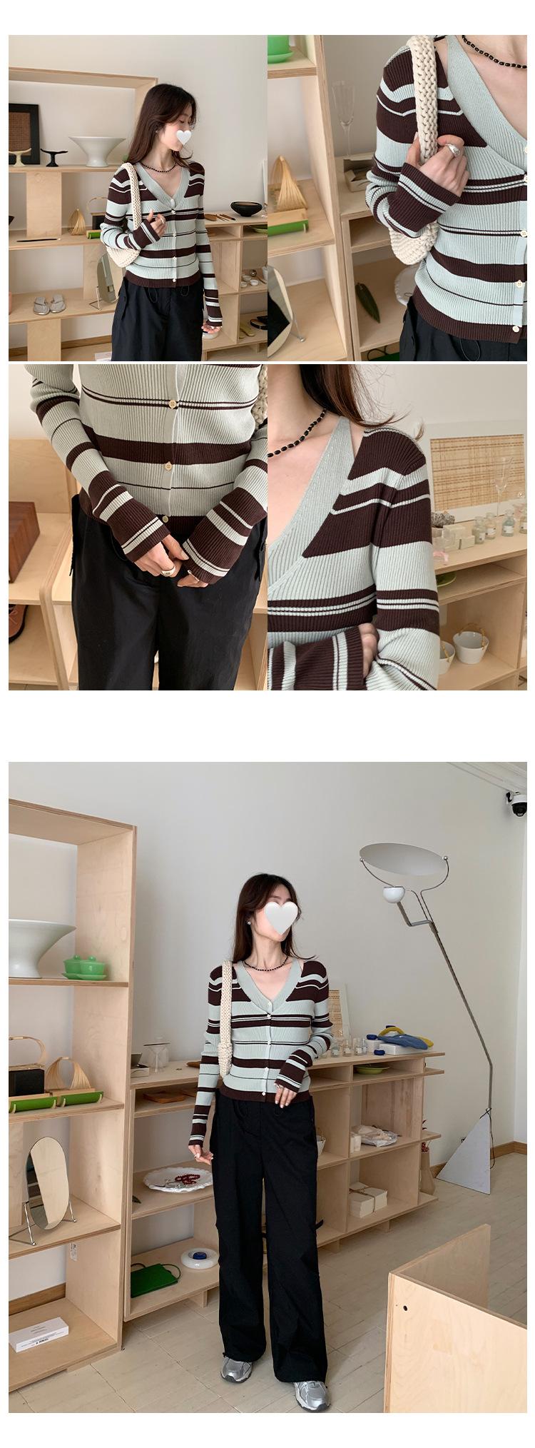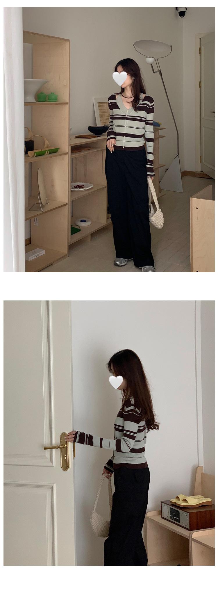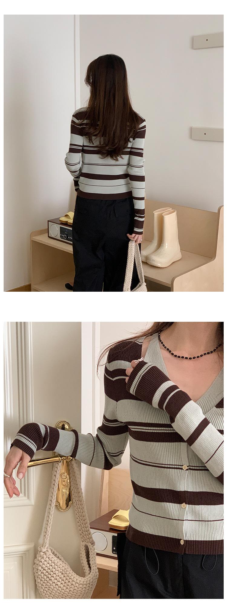 Suéter de Punto de Manga Larga a Rayas de Estilo Coreano Falso de Dos Piezas para Mujer Otoño Nuevo Sentido del Diseño Adelgazante Cuello en V Top Casual