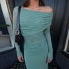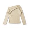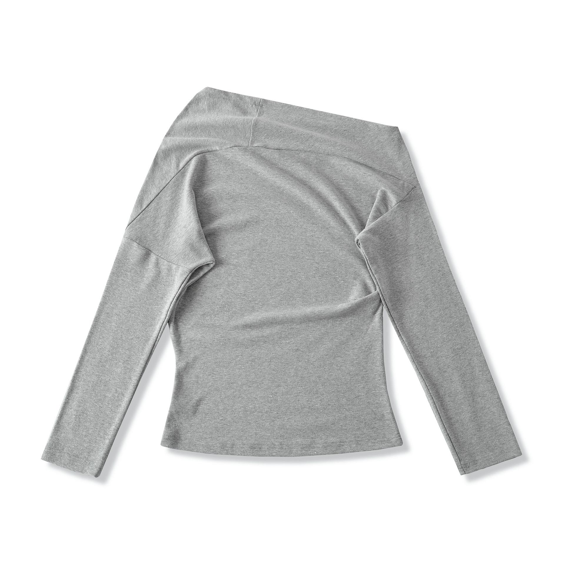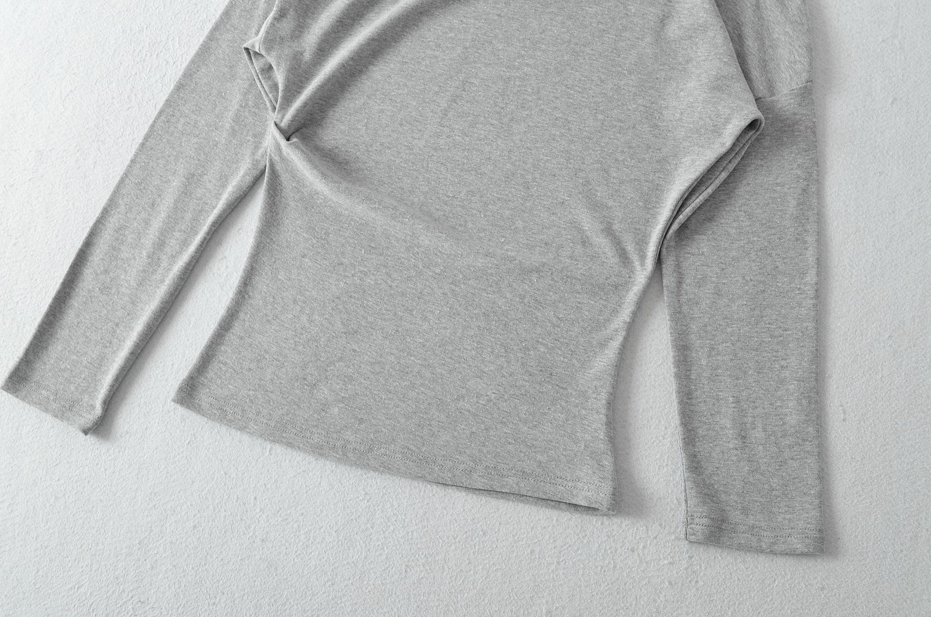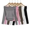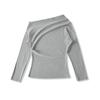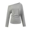 2025 Principios de Otoño Nuevo INS Chica Hot Sexy Color Sólido Elástico Básico Camiseta Asimétrica Hombro Descubierto Un Hombro Cuello Barco Manga Larga T