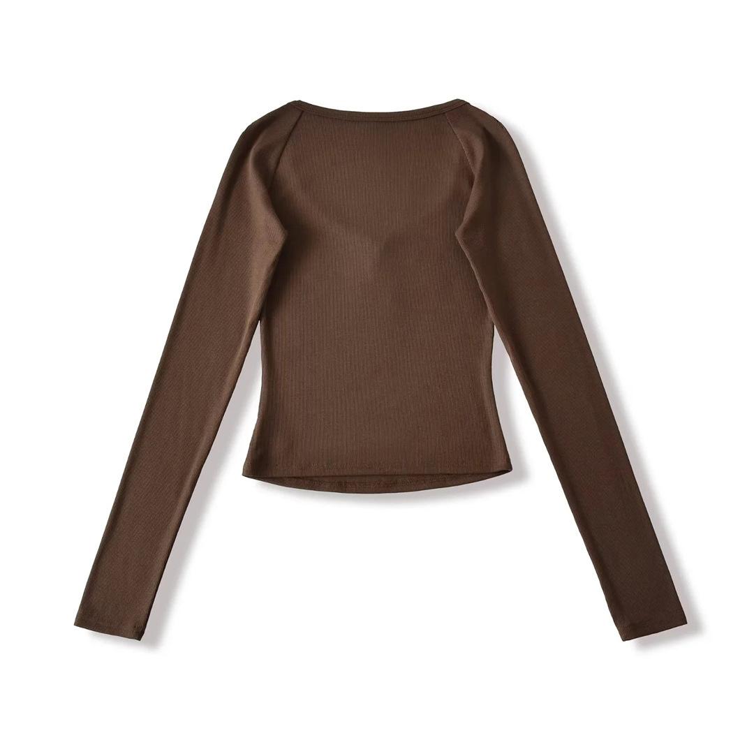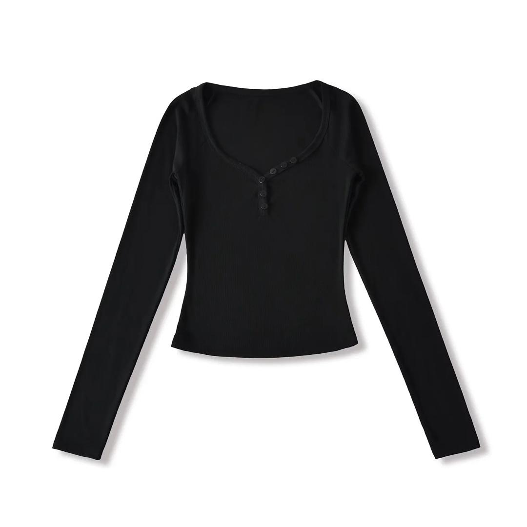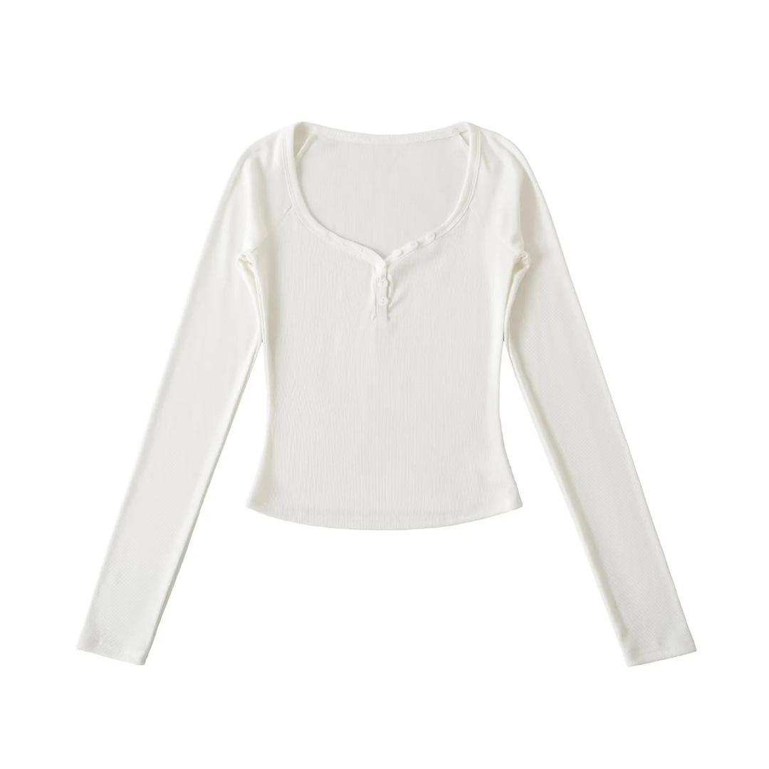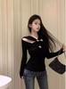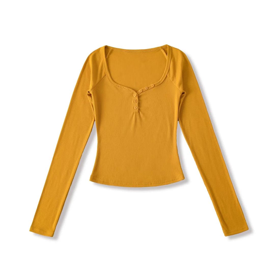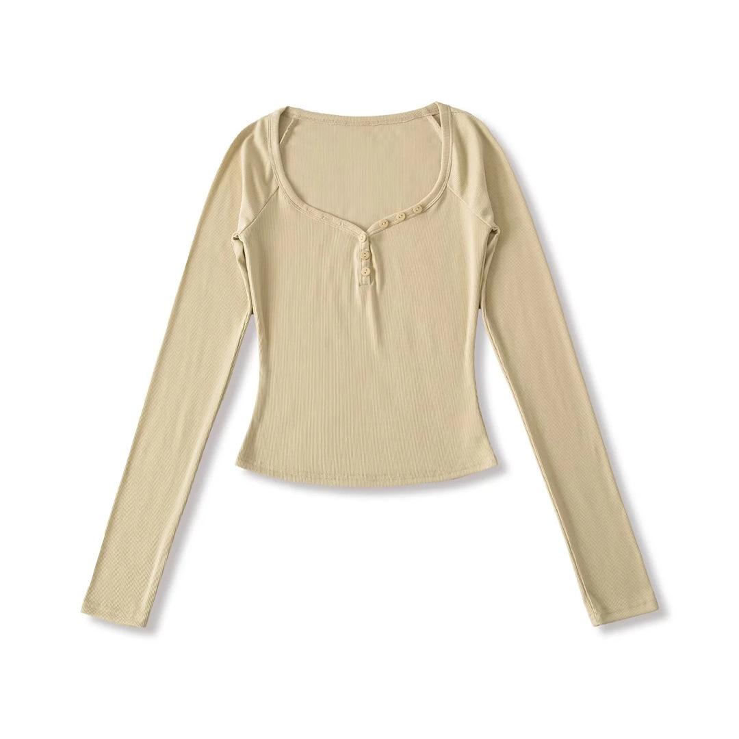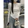 2025 Principios de Otoño Nuevo Estilo Puro y Sexy Corte Bajo Manga Larga Camiseta Base Mujer Nicho Chica Hot Elástico Adelgazante Cintura Alta T