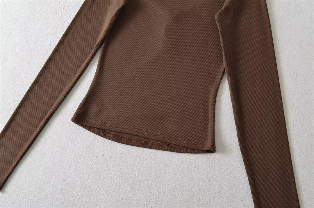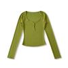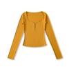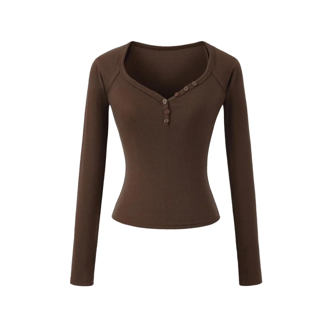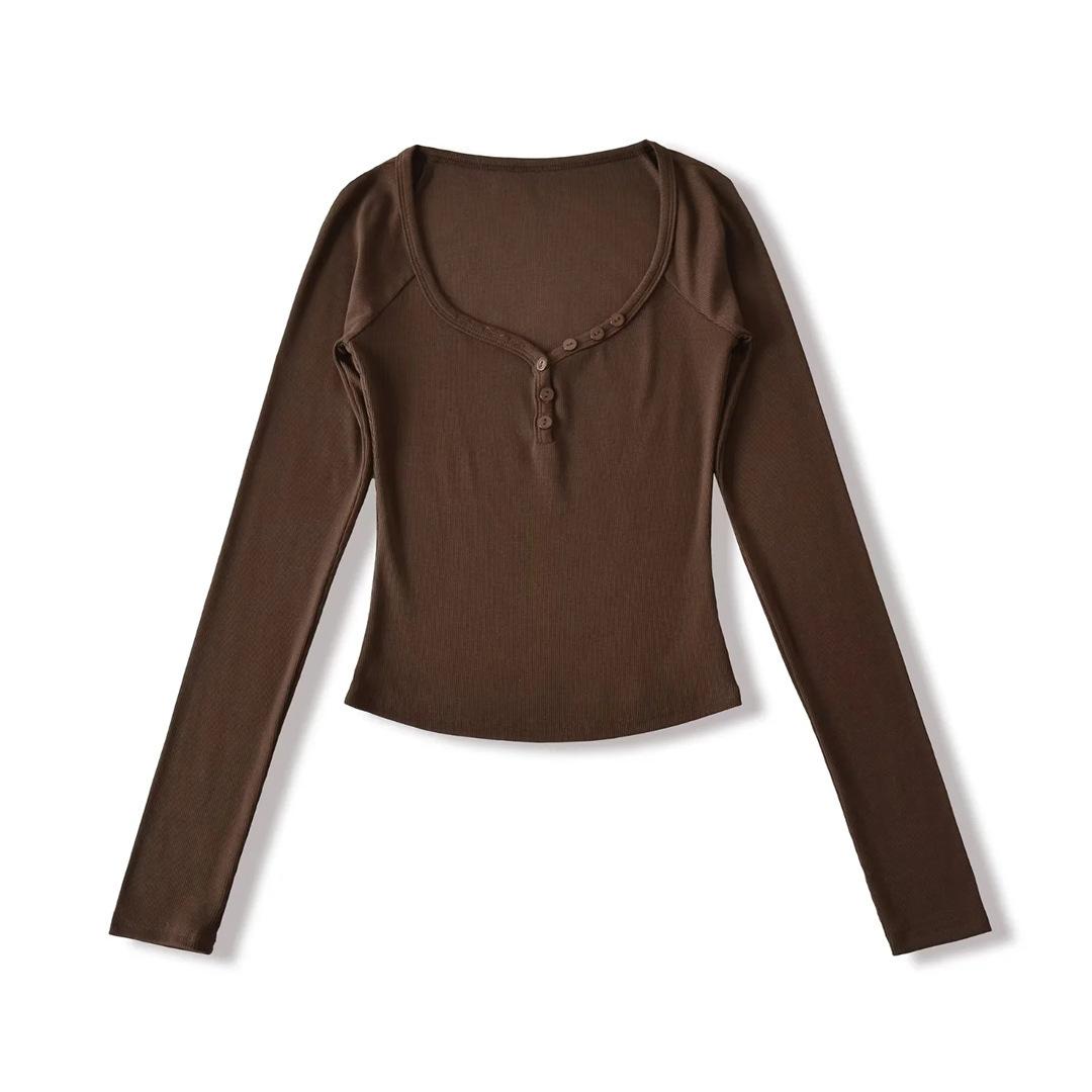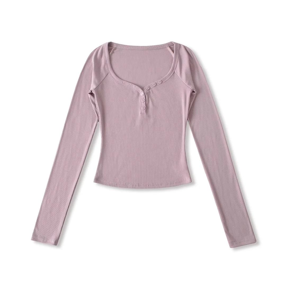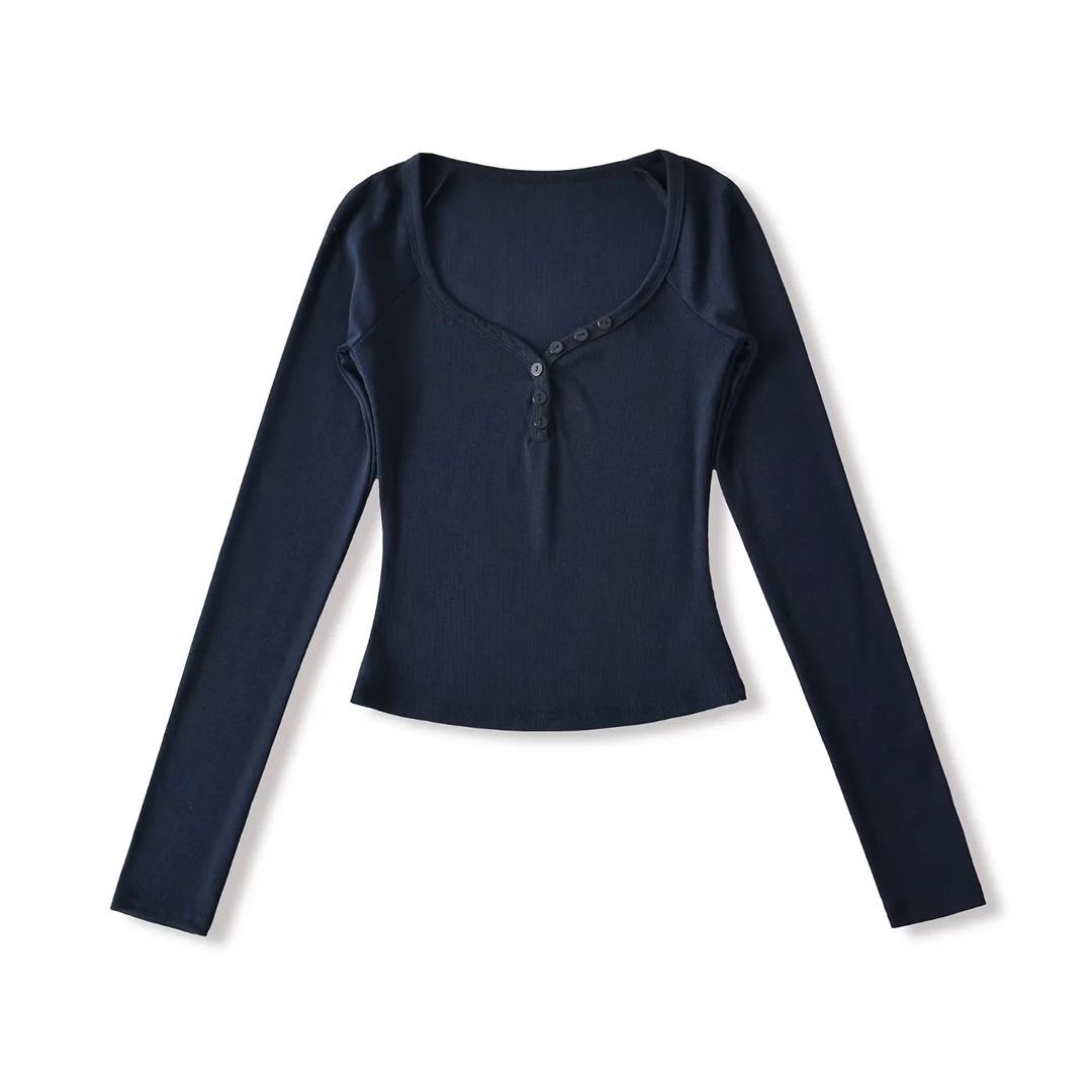 2025 Principios de Otoño Nuevo Estilo Puro y Sexy Corte Bajo Manga Larga Camiseta Base Mujer Nicho Chica Hot Elástico Adelgazante Cintura Alta T