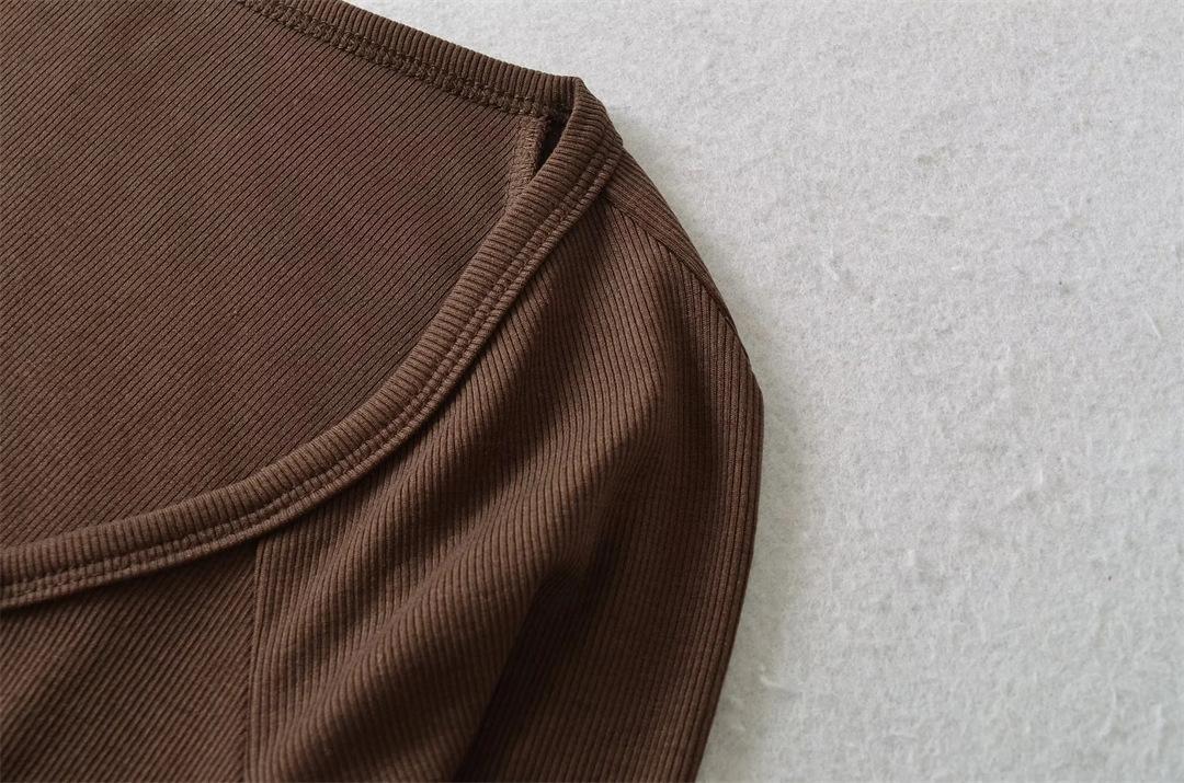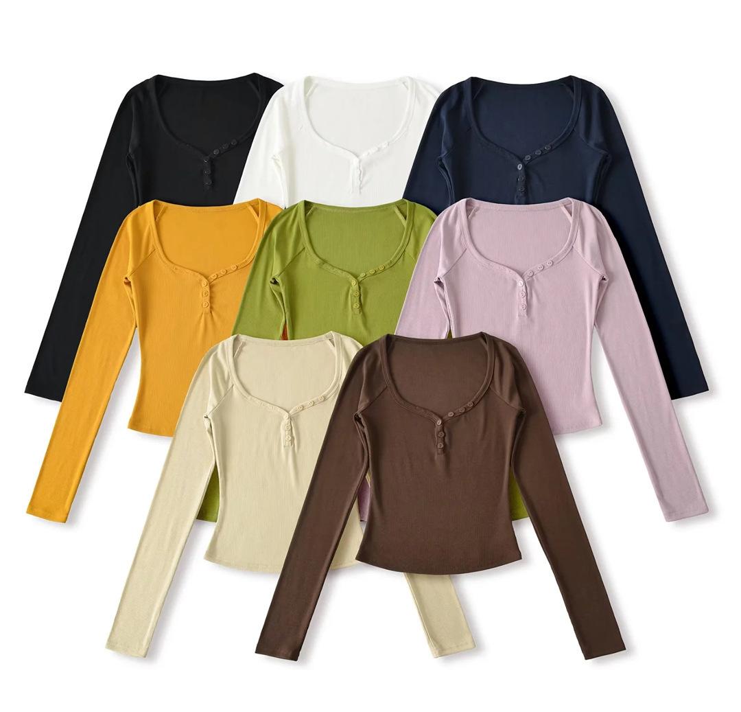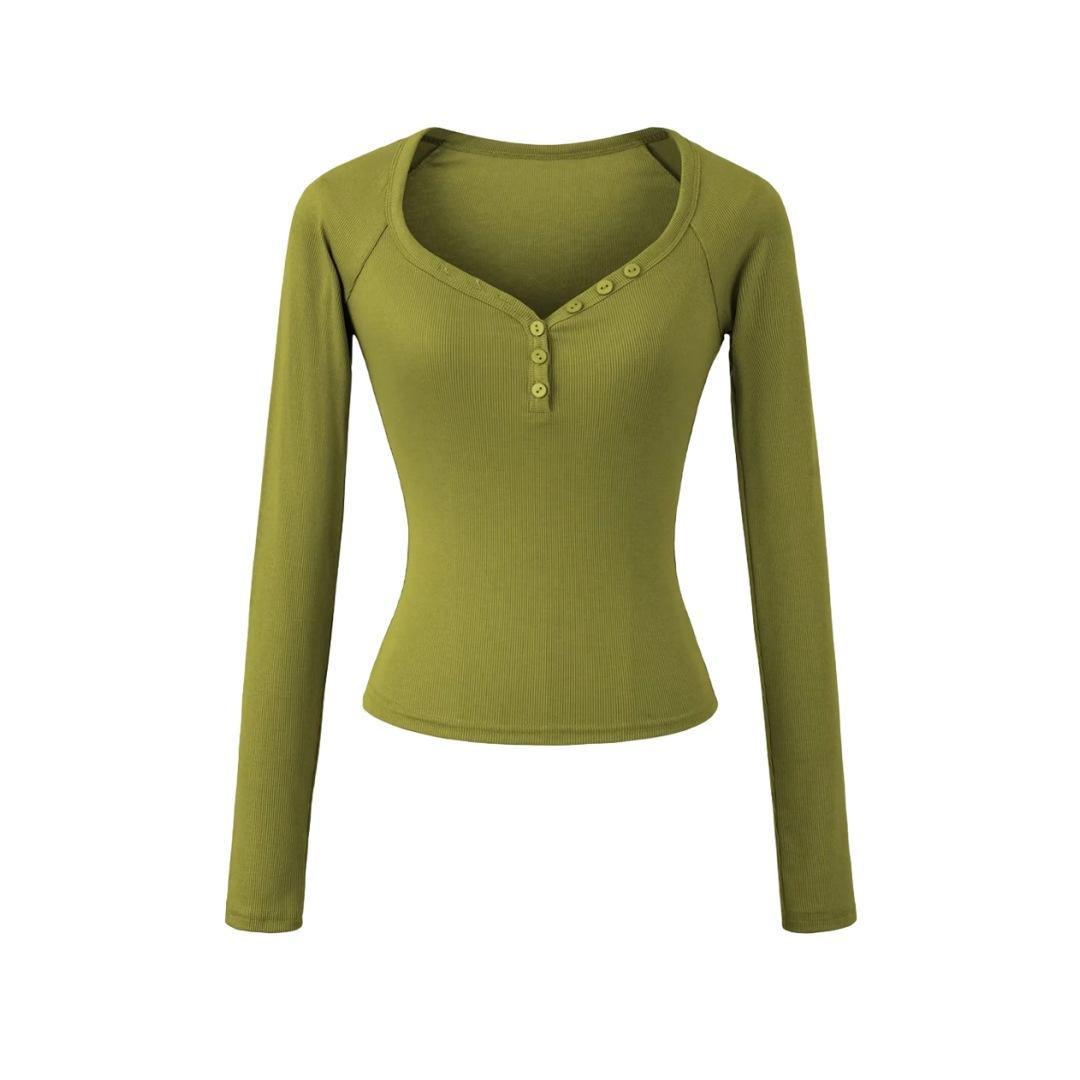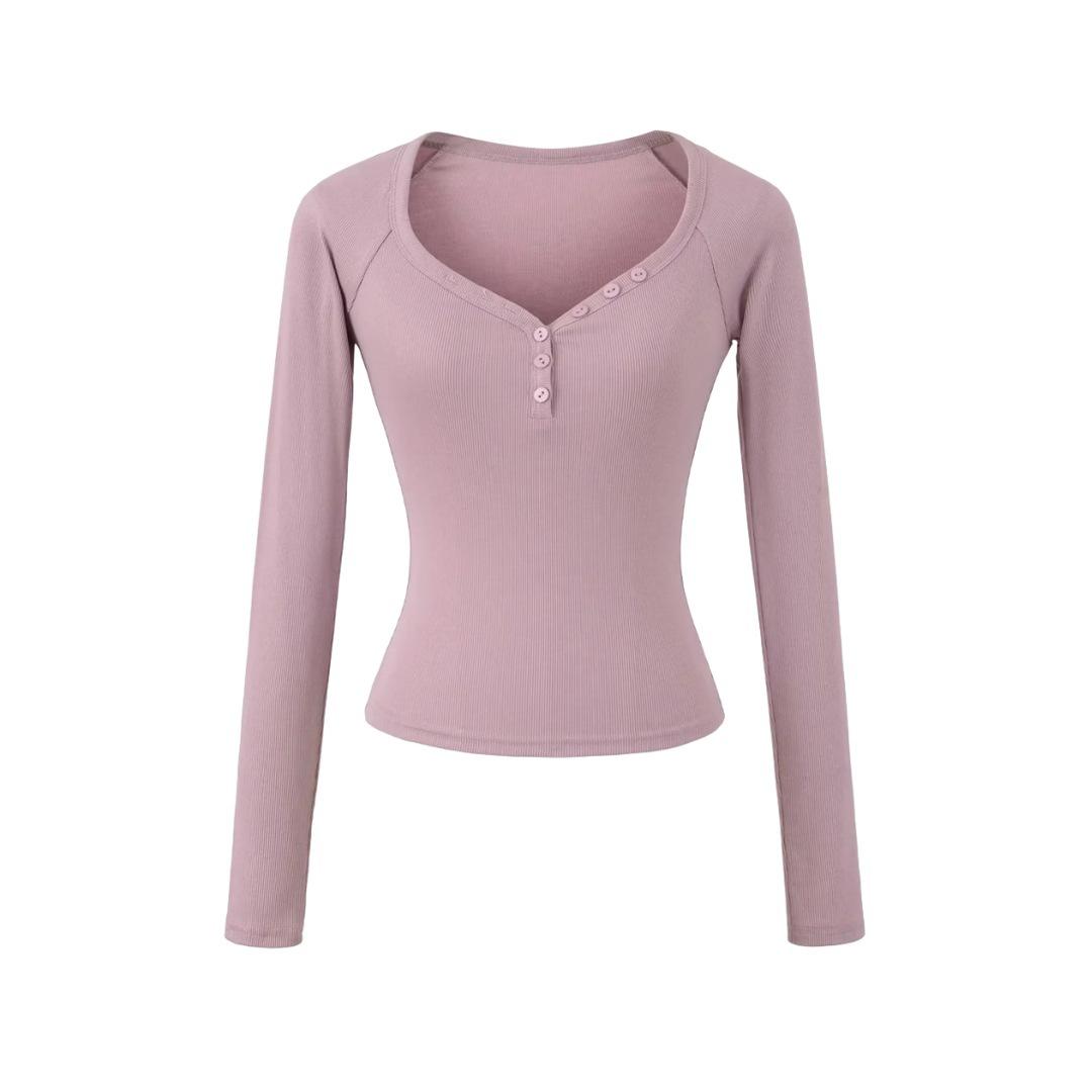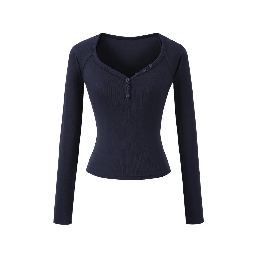 2025 Principios de Otoño Nuevo Estilo Puro y Sexy Corte Bajo Manga Larga Camiseta Base Mujer Nicho Chica Hot Elástico Adelgazante Cintura Alta T