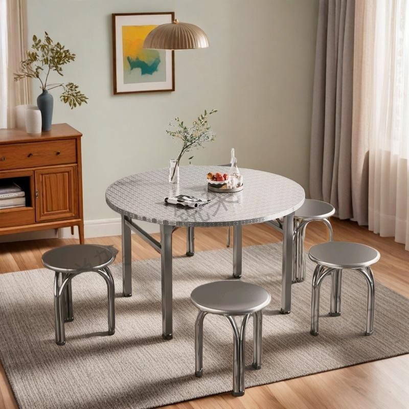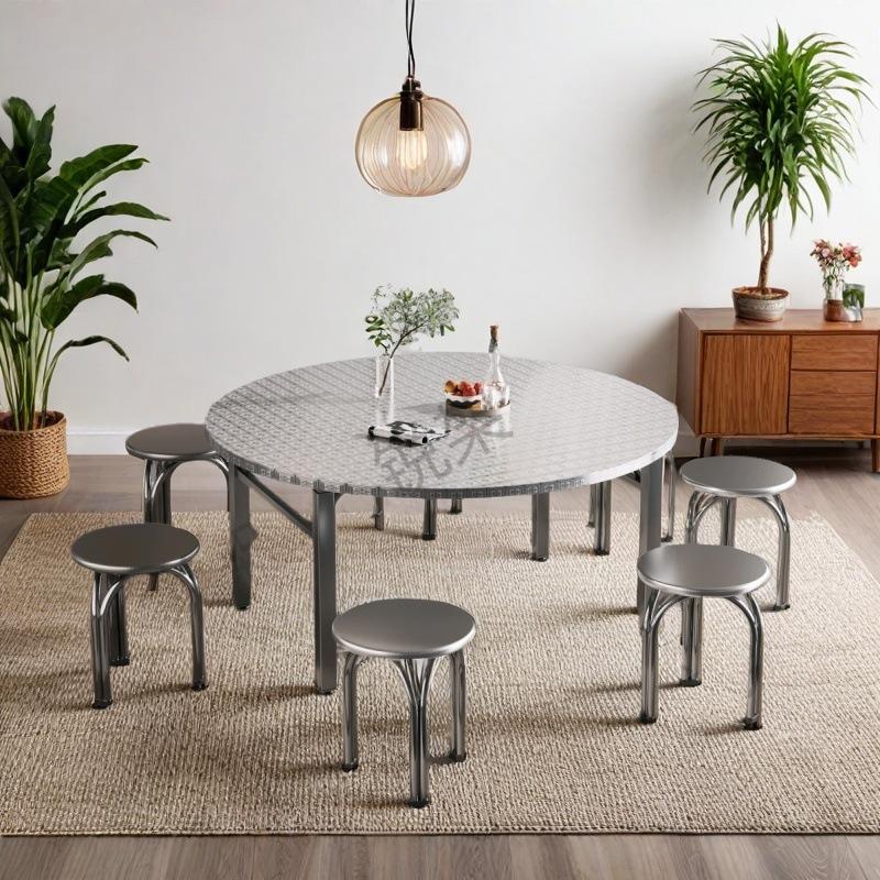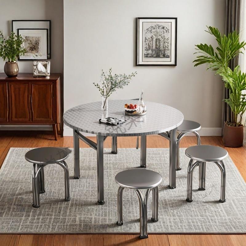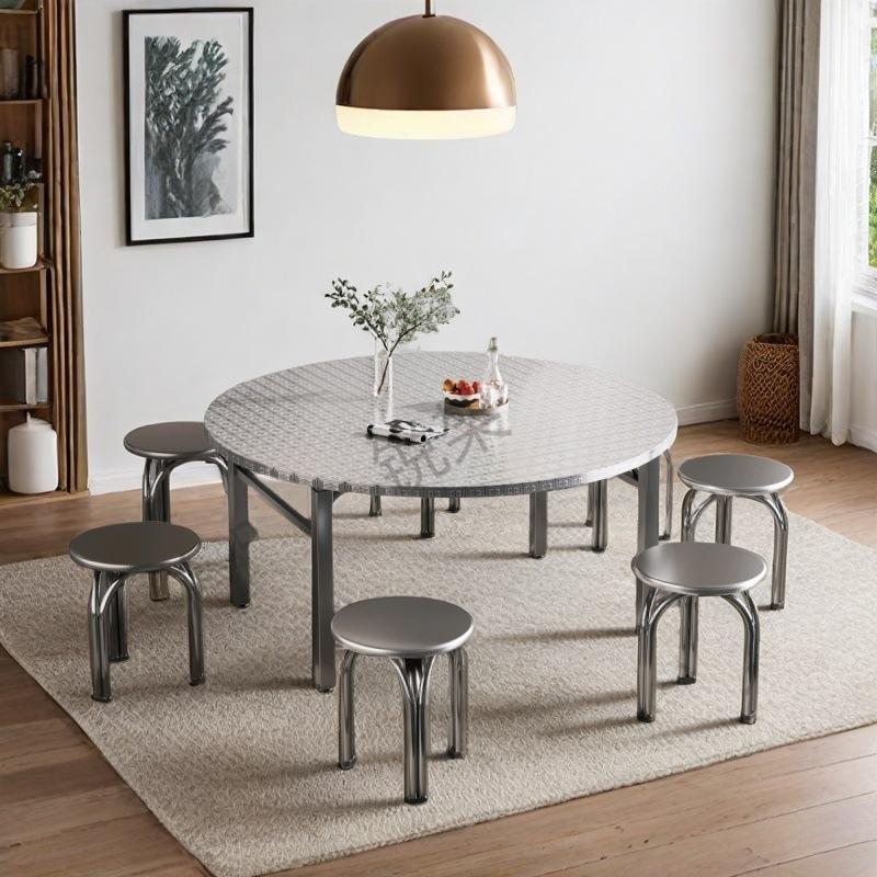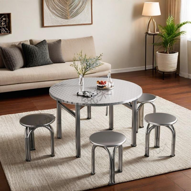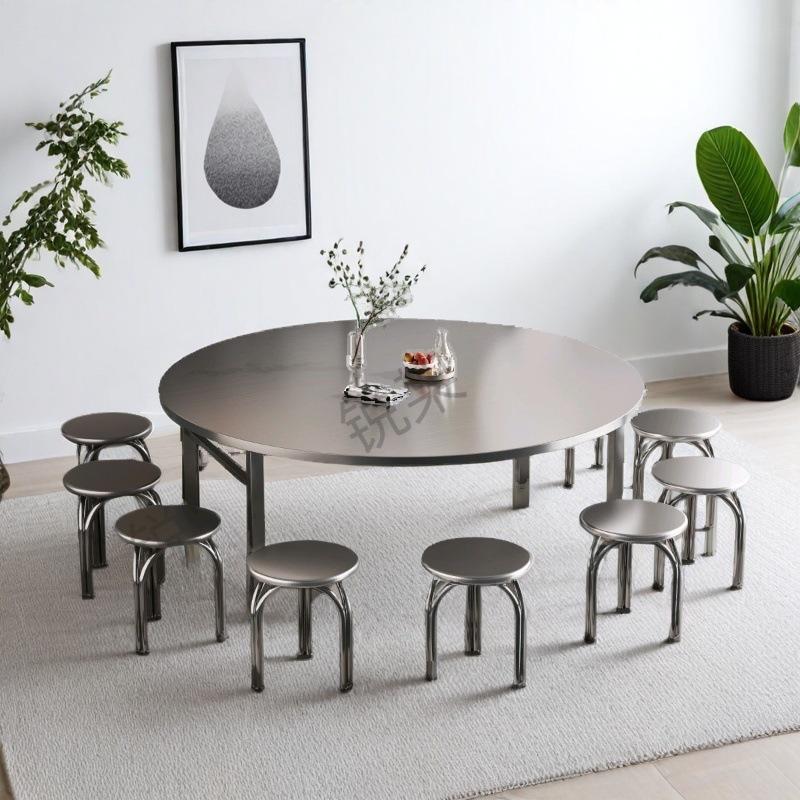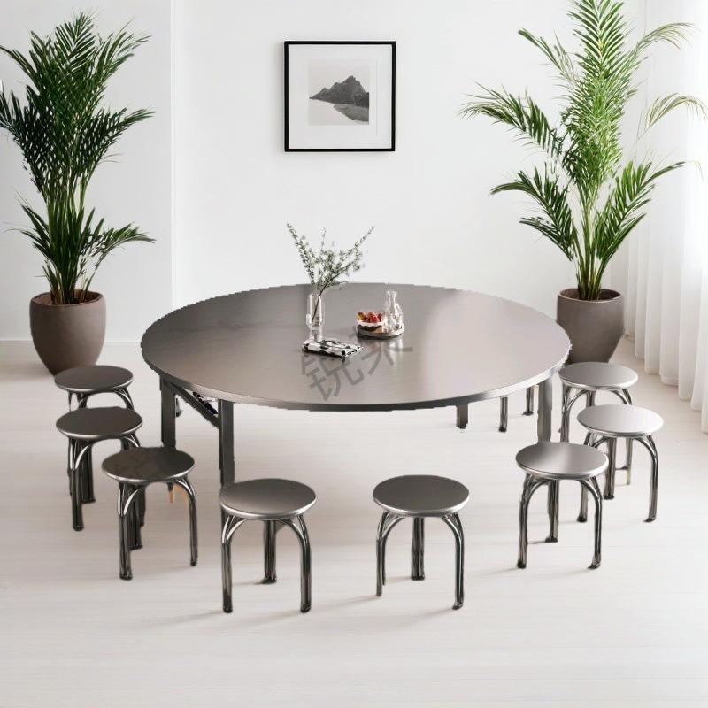 Mesa plegable redonda de acero inoxidable 304, mesa para el hogar, mesa para puesto de barbacoa, mesa de comedor ligera, mesa para banquetes, mesa de restaurante