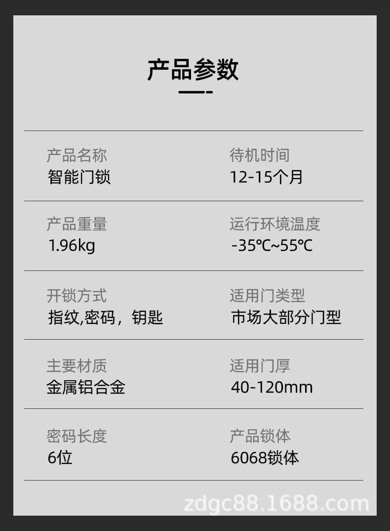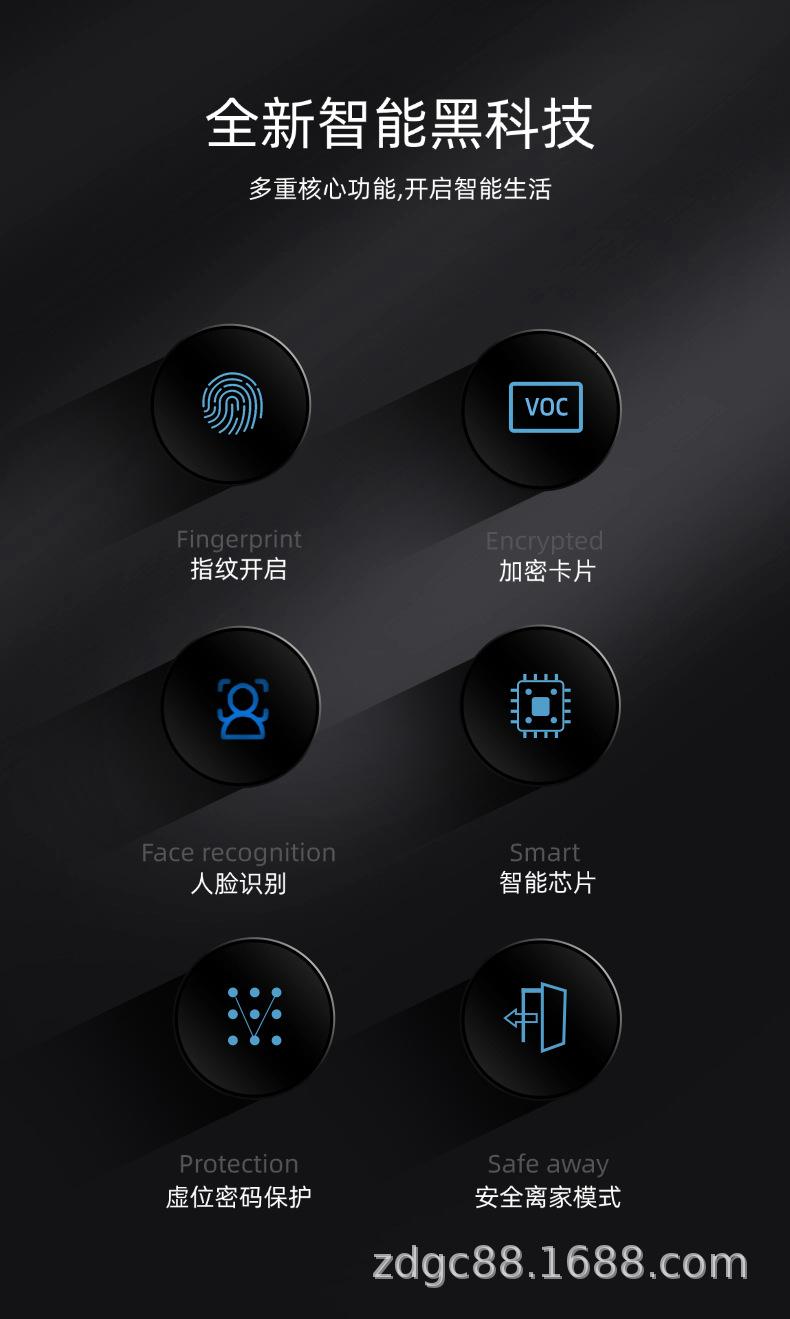 Fingerprint, Password, Bring key, Palmprint, Visible cat eye, Face recognition, Remote unlock