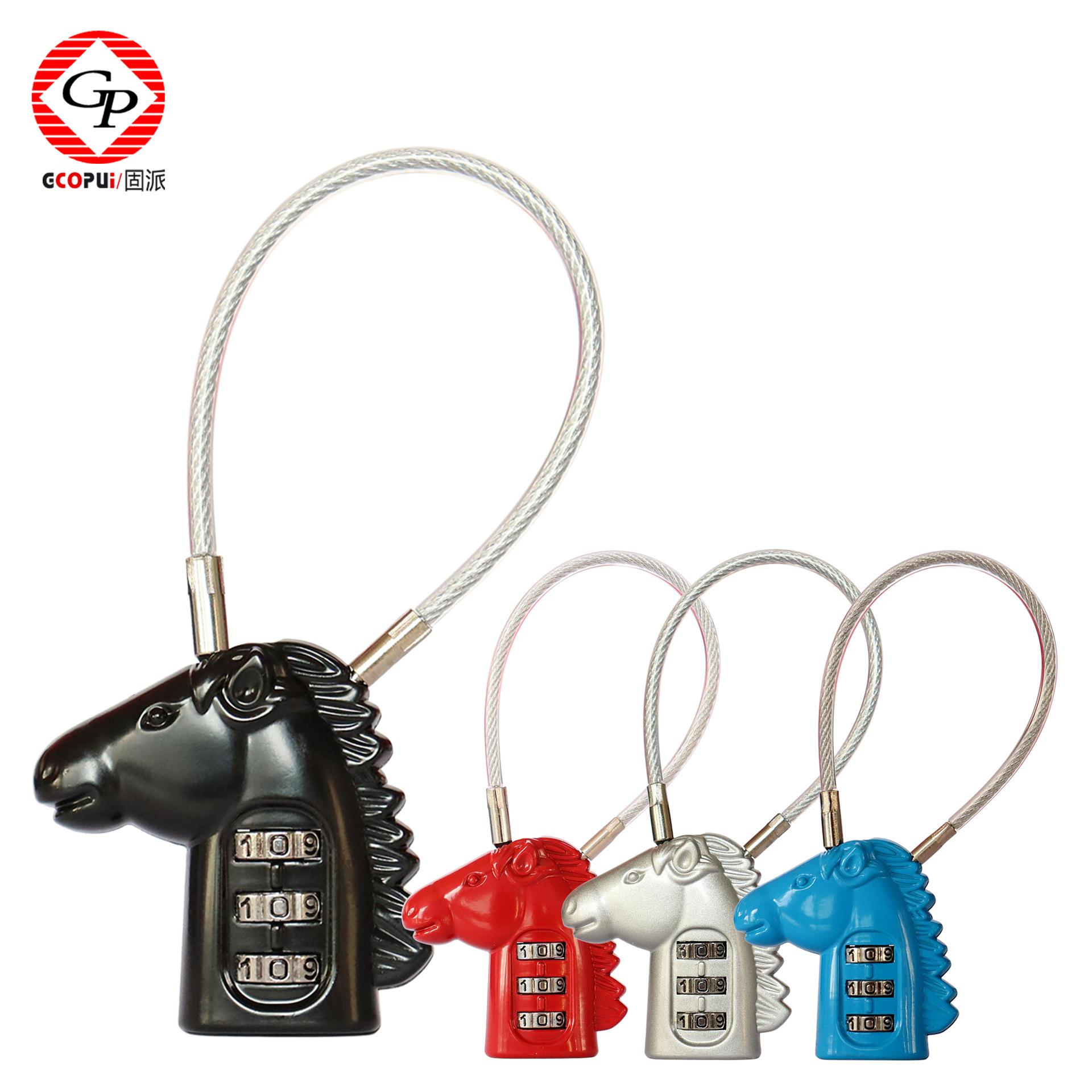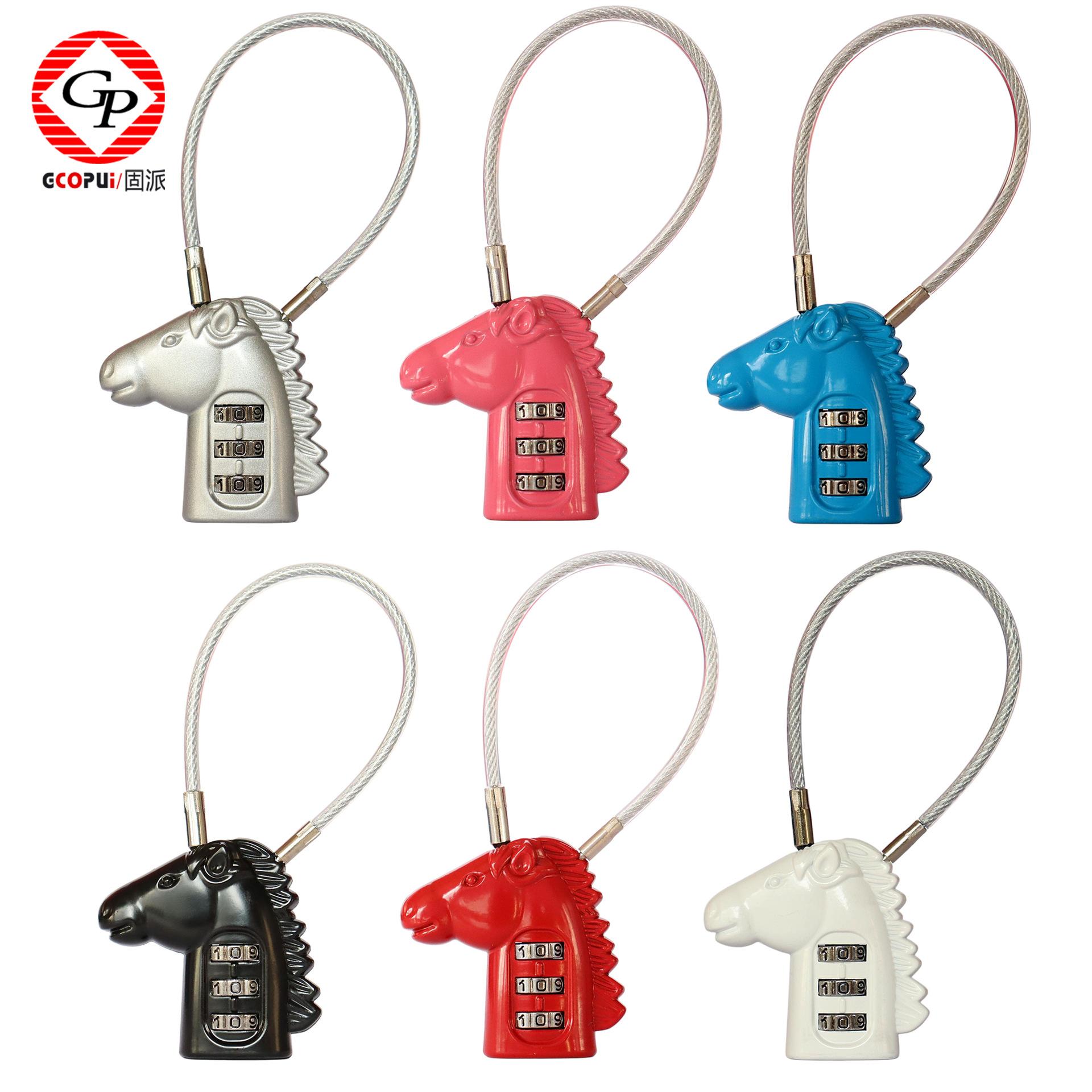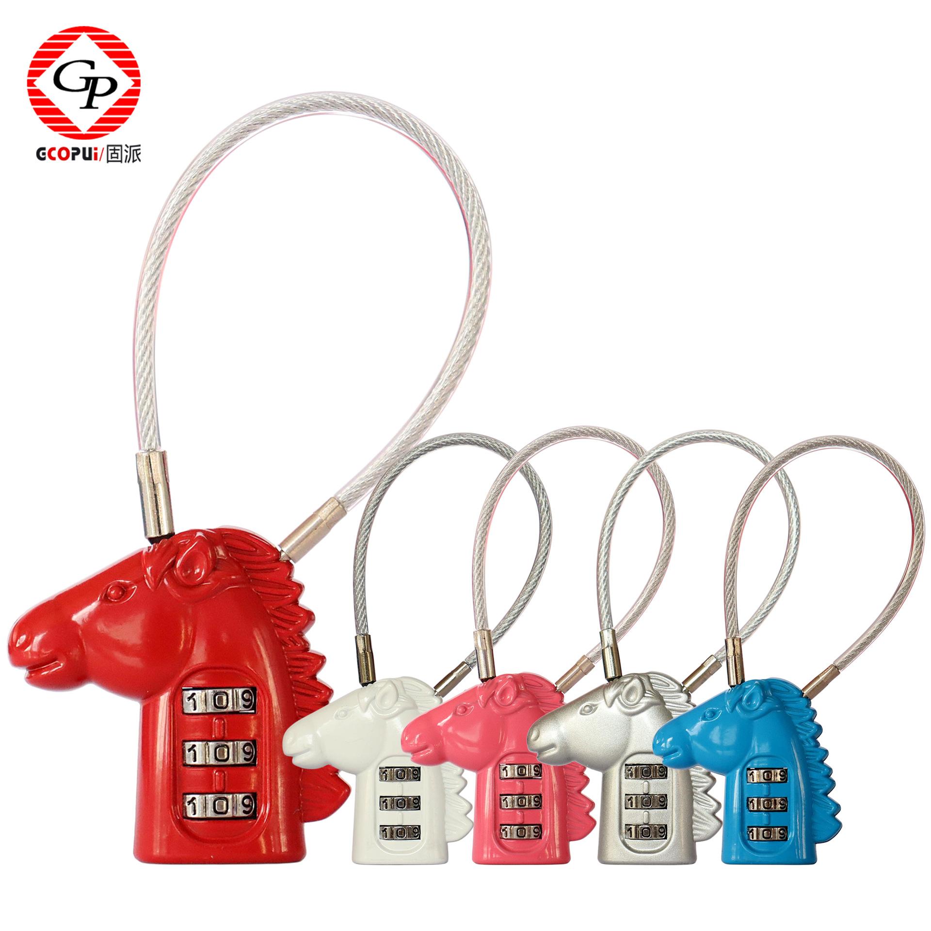 Candado Cabeza de Caballo Taquilla de Viaje para Equipaje Gimnasio Collage de Colores Cable de Acero Exterior Dibujos Animados Candado de Contraseña Candado de Contraseña