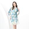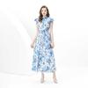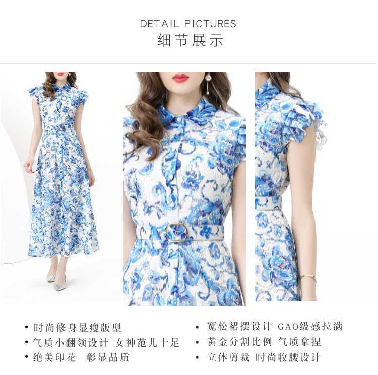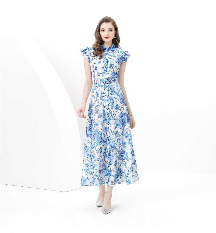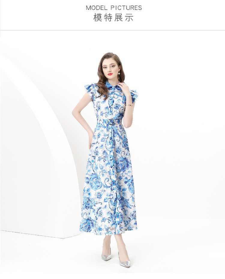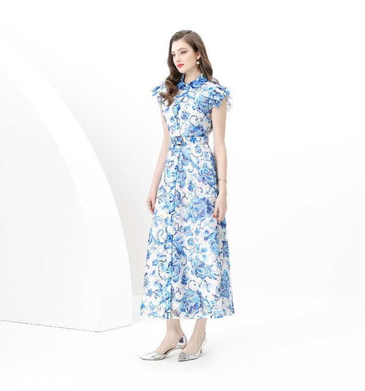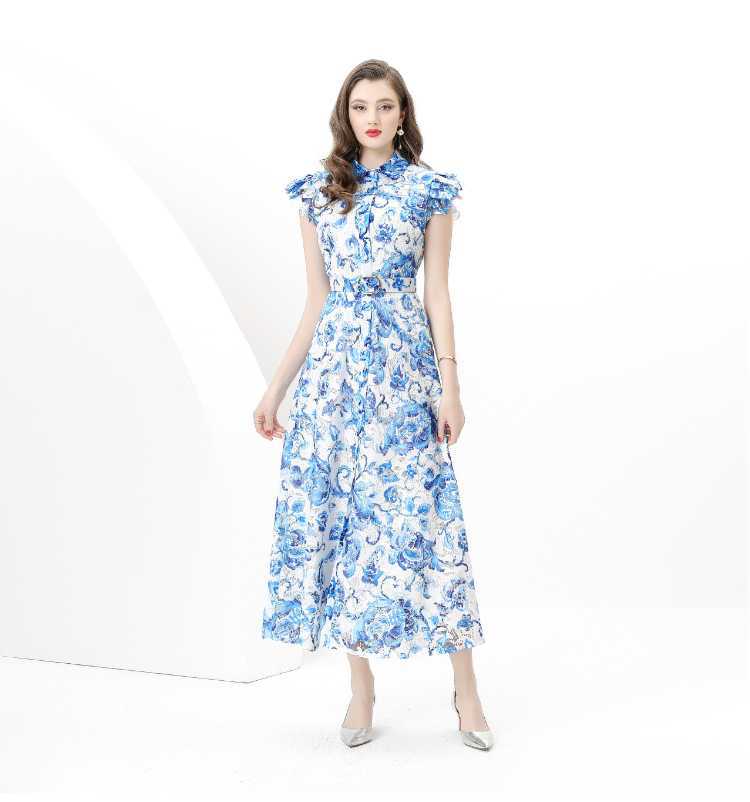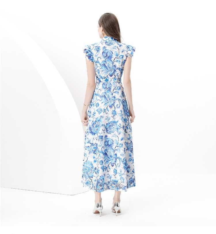 Principios de la Primavera 2025 - Vestido Largo sin Mangas con Solapa Estilo Palacio, Cinturilla y Falda Amplia con Estampado de Encaje