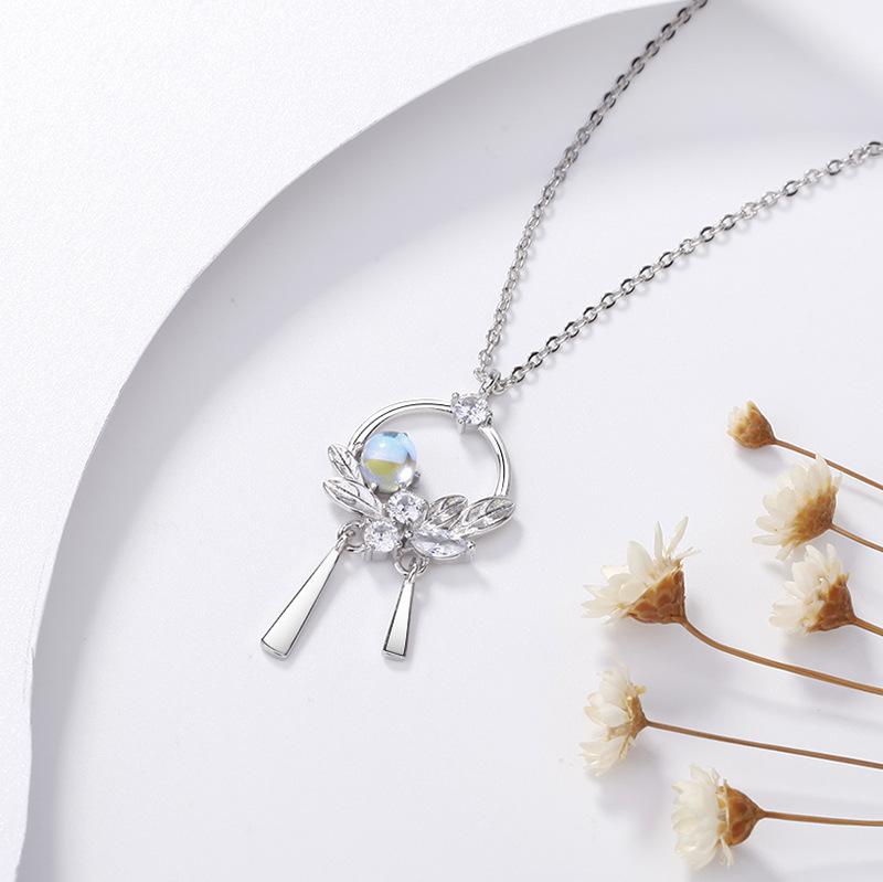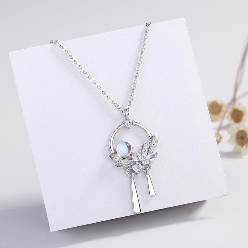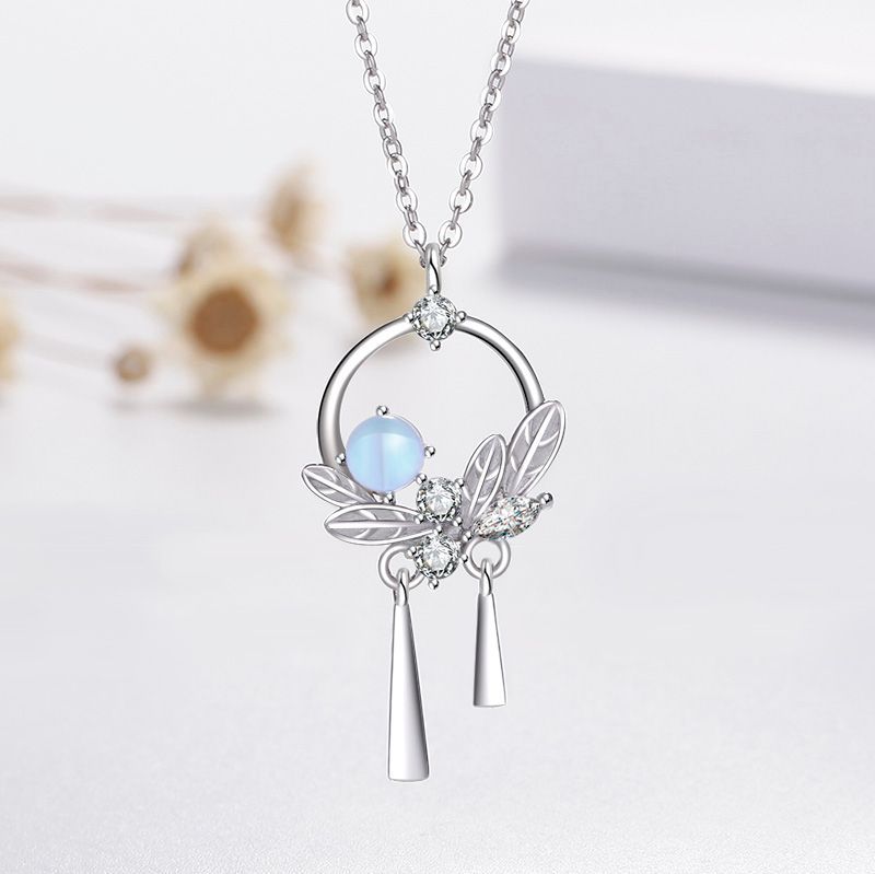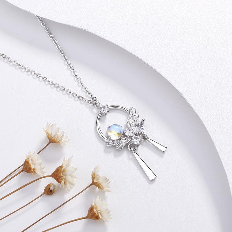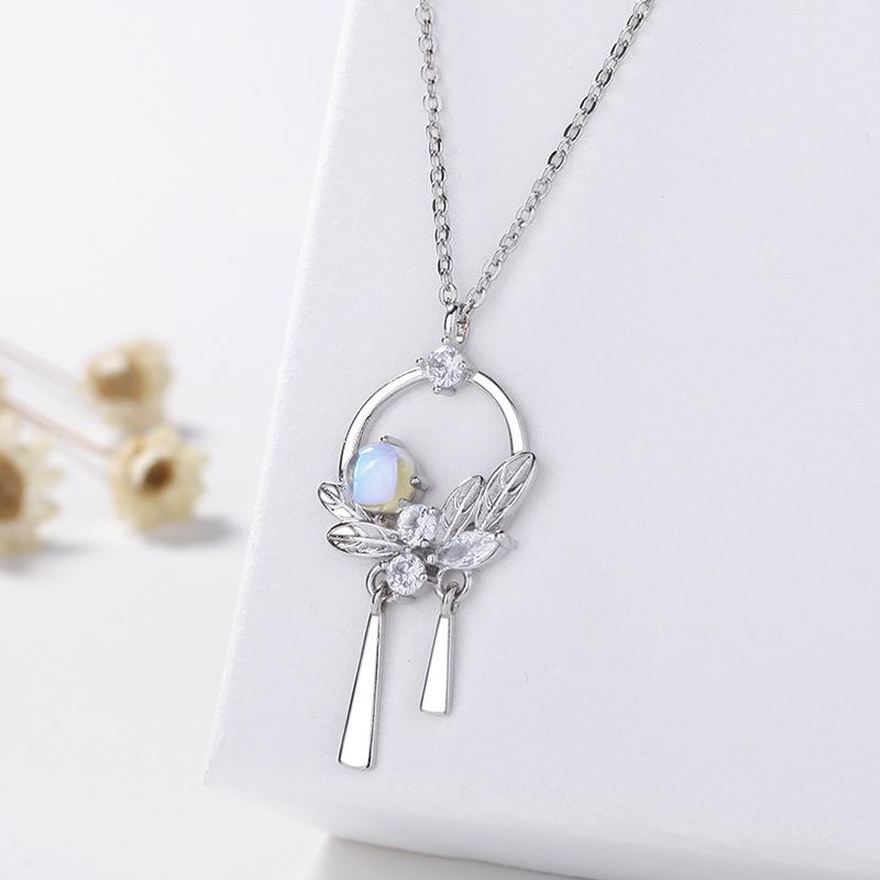 Collar de Piedra Lunar para Mujer, Colgante Simple de Clavícula, Diseño de Nicho de Lujo Ligero, Nuevo Verano, Regalo de Cumpleaños, Alas de Ángel