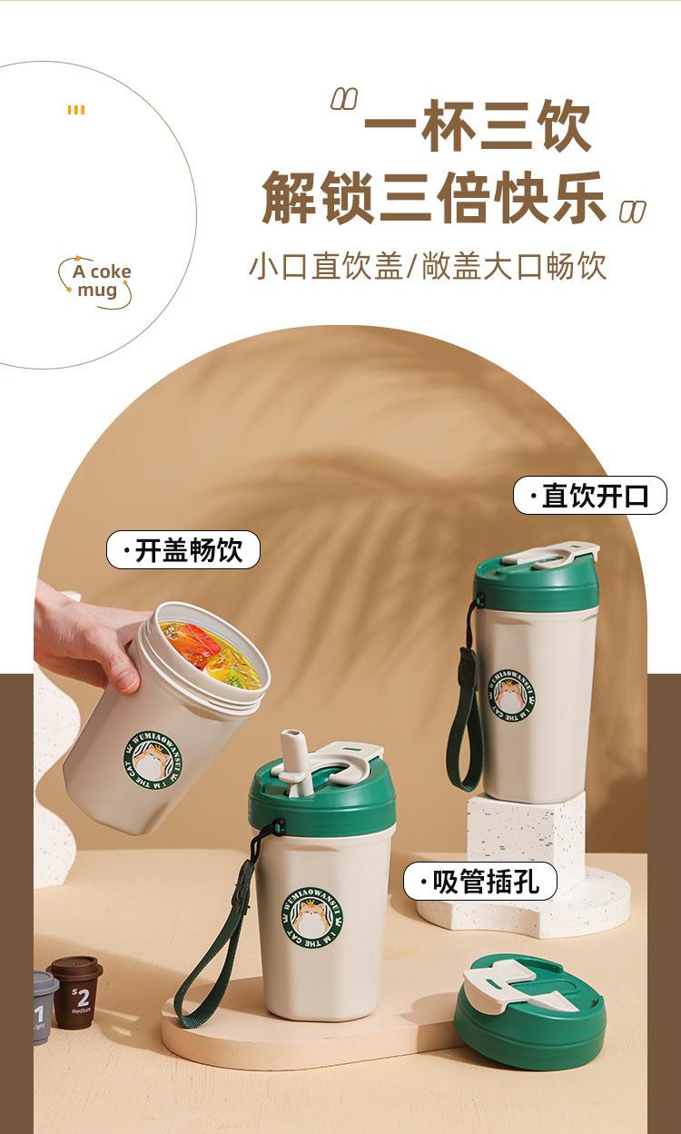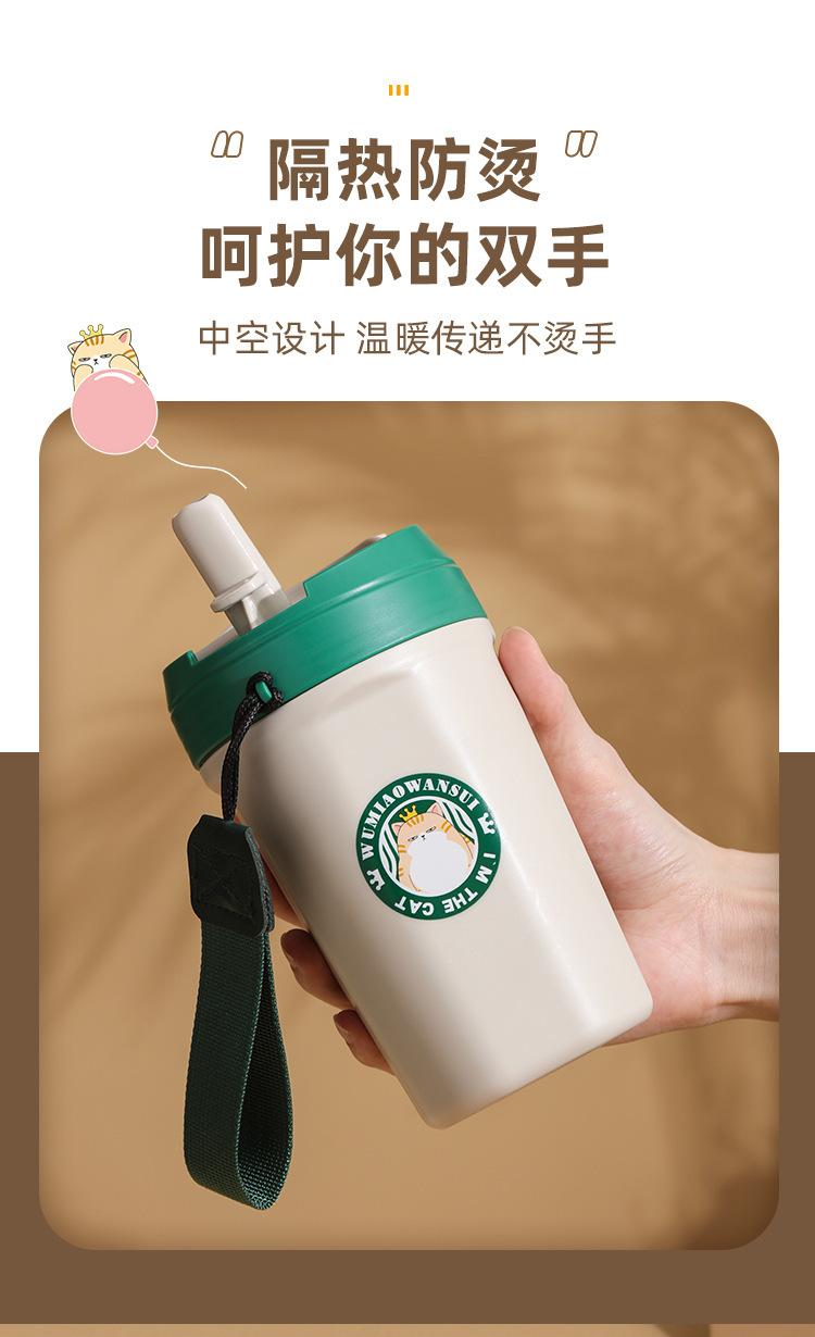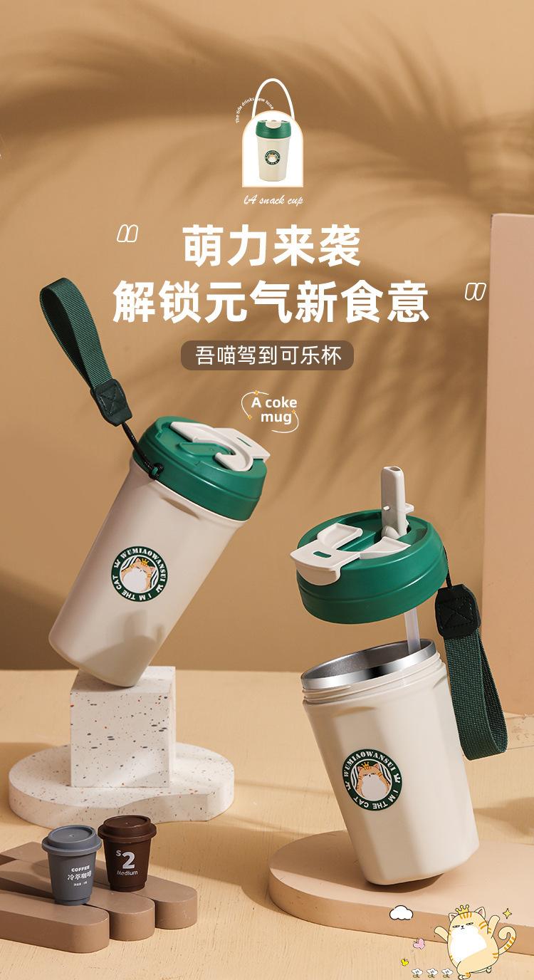 520ml Long live my meow 304 liner [straight drinking mouth straw mouth]]