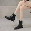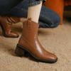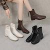 Botas de mujer de talla grande estilo coreano con suela de goma y cremallera trasera, cómodas, de tacón bajo, color sólido, punta cuadrada, botas Martin de otoño e invierno hasta media pantorrilla