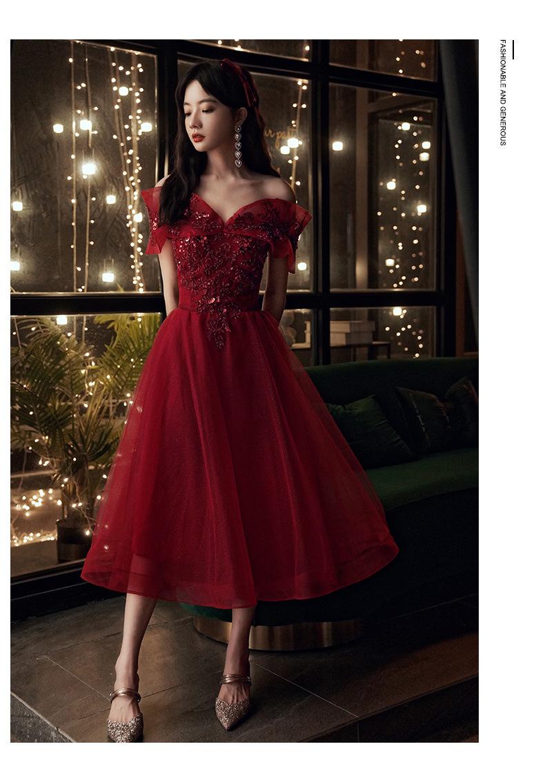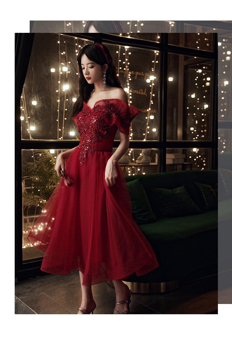 Vestido Tostado Borgoña para Mujeres Petite, Nuevo Vestido de Novia de Otoño 2025, Vestido de Compromiso para Regreso a Casa, Efecto Adelgazante