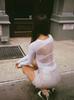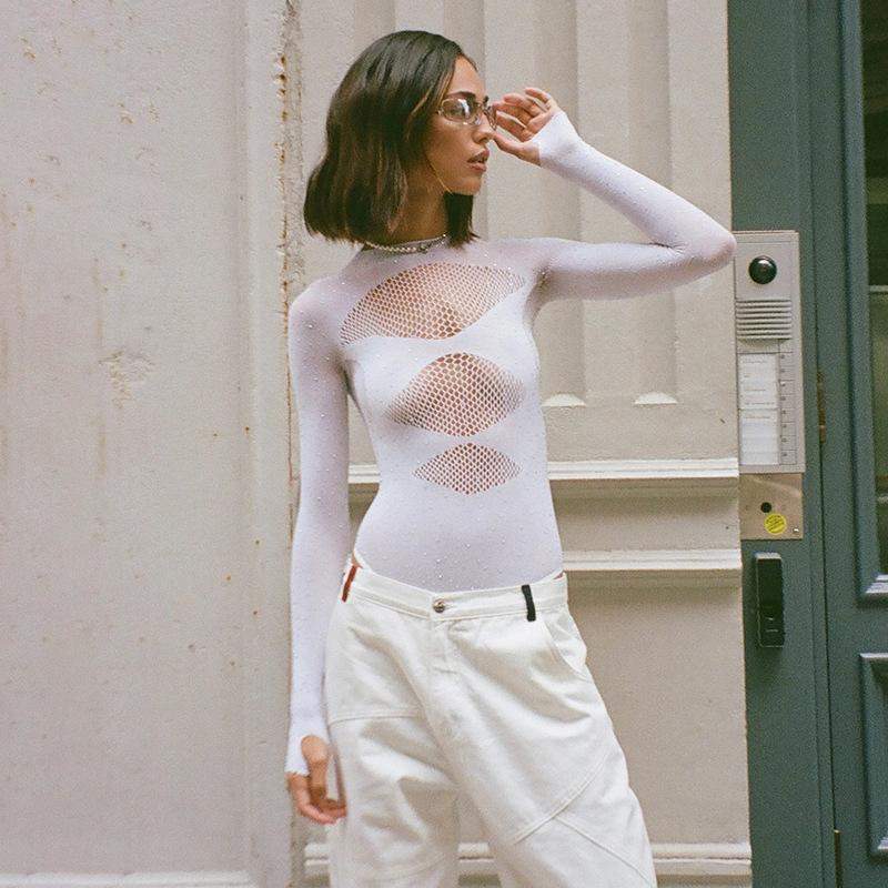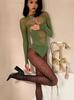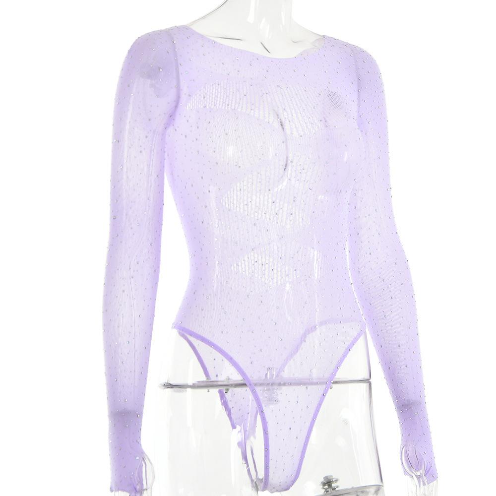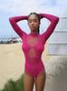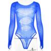 Europa y Estados Unidos comercio exterior transfronterizo primavera y verano nuevo sexy chica caliente alta elasticidad tejido perspectiva manga larga calado mono mujer