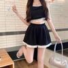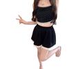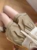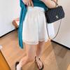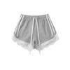 Pantalones cortos de verano para mujer con encaje de patchwork, cintura alta elástica, pierna ancha suelta, temperamento casual versátil, línea A, hot pants