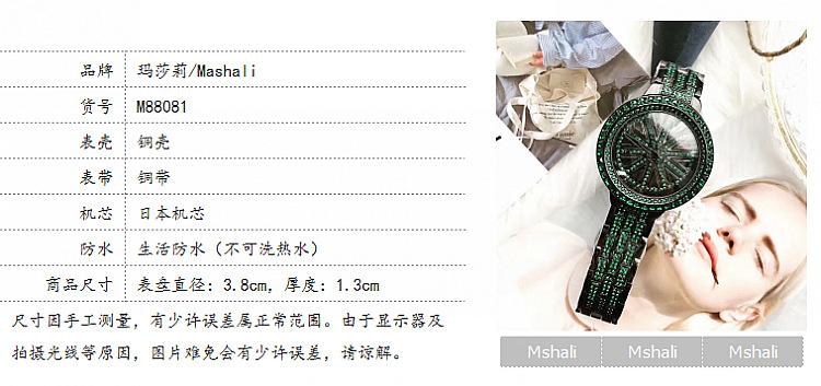 Marca: Mashali 玛莎莉 Introducción: Popular Marsali_giratorio, esfera giratoria única, diamante verde especial, combinación súper hermosa sin duda [ Reloj de Moda ] Los diamantes giratorios siempre han sido un estilo superventas, correa de cobre macizo, chapado IPG al vacío, movimiento japonés importado, diamantes reales AAA brillantes añaden un ambiente noble al reloj. Modelo: 88081 Material: Caja de cobre, brazalete de cobre Diámetro: 3.8CM, Grosor: 1.3CM{{{{{{{{{{