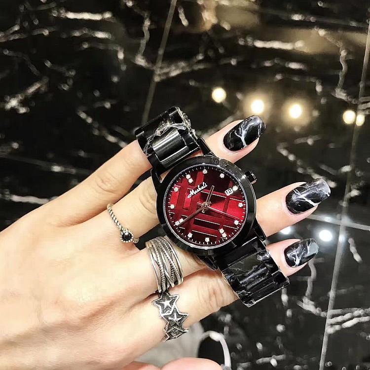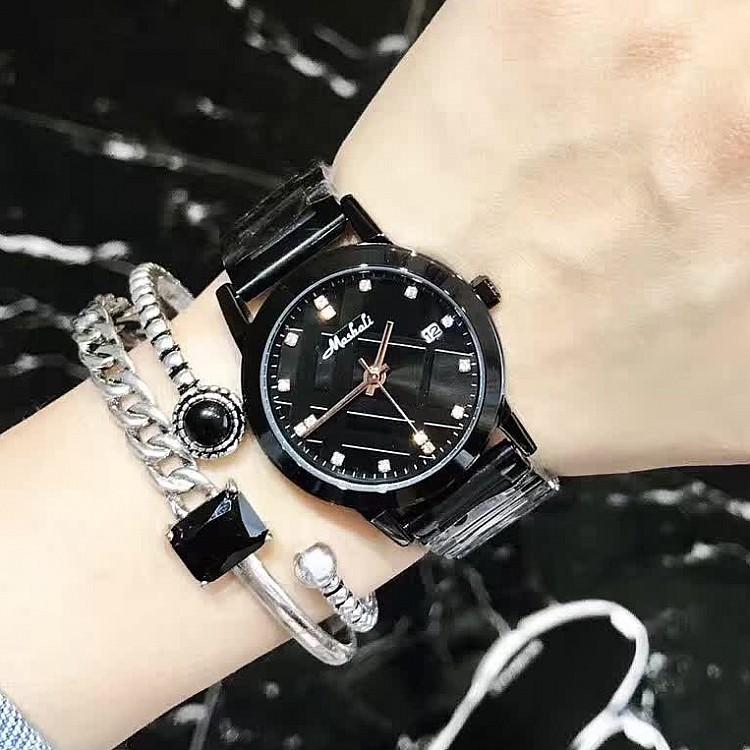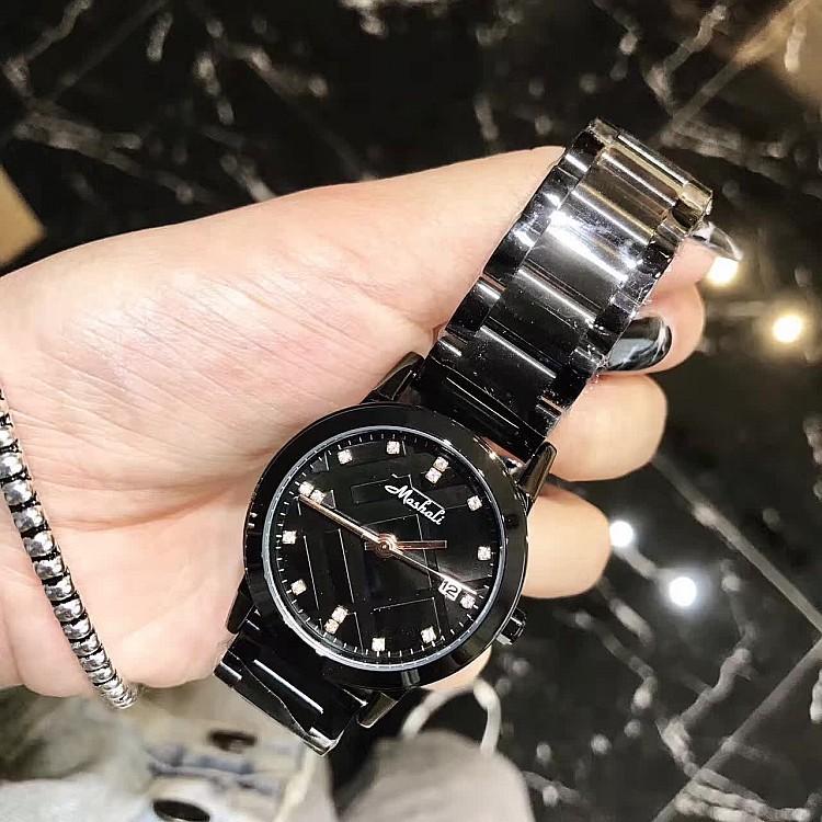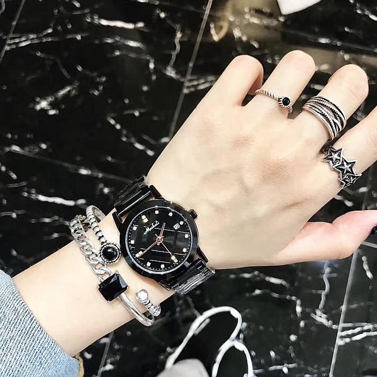 Masalee Nuevo Reloj de Cuarzo para Mujer de Moda Distintivo Moda Caja Negra Correa de Acero Inoxidable