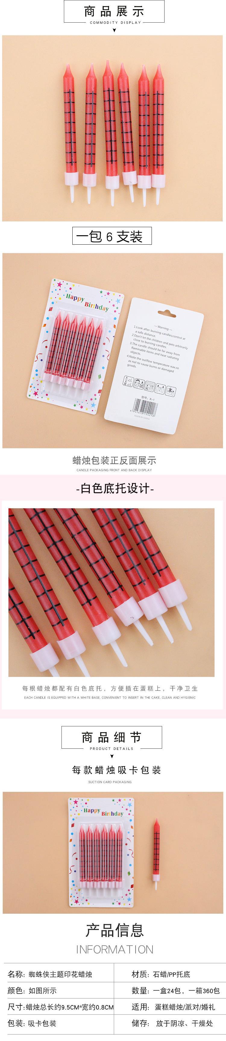 Venta al por mayor estilo ins Velas para pastel con estampado temático de Spiderman Fiesta de cumpleaños 6 velas rojas individuales