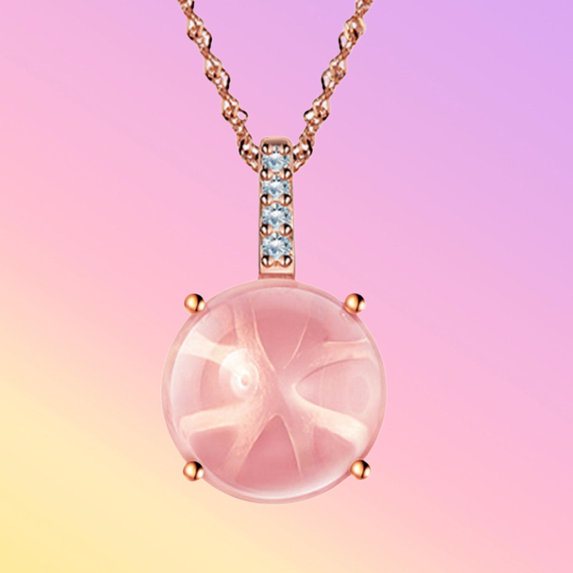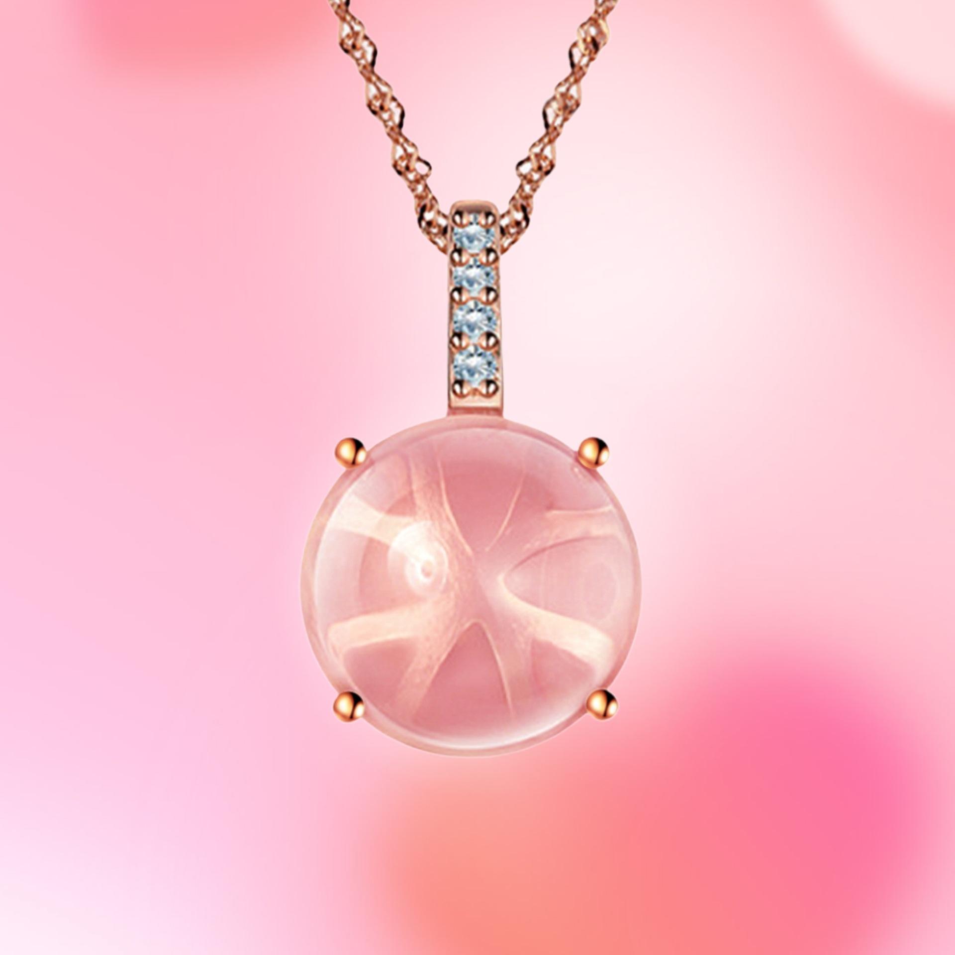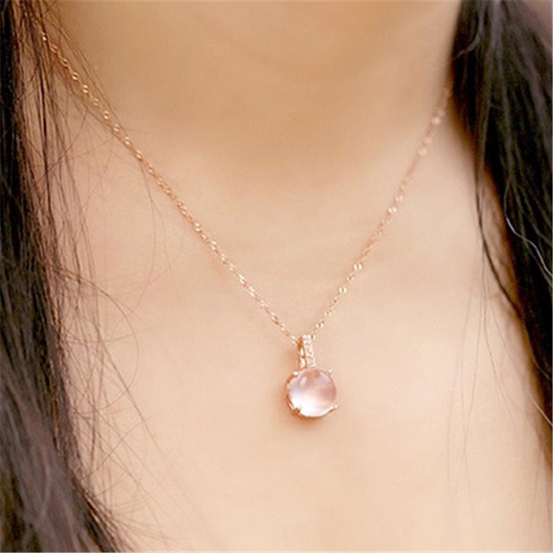 Collar con Colgante de Gota de Agua de Diosa Yihua con Temperamento de Hielo, Piedra de Hibisco, Incrustado, Joyería, Chapado en Oro Rosa, Colgante de Cuarzo Rosa