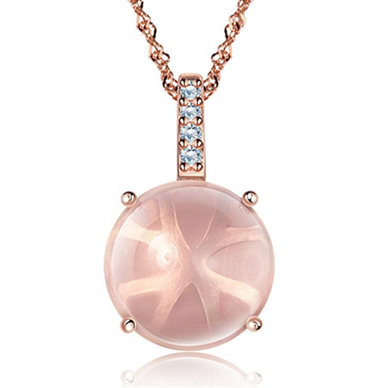 Rose gold pink diamond pendant + water wave chain [price for one set]