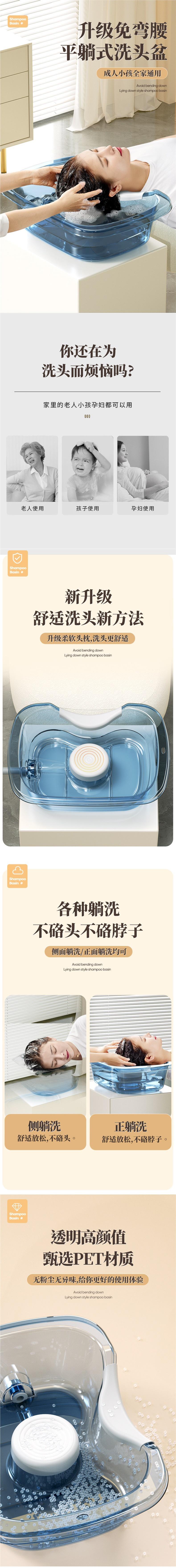 Upgraded lake blue + head pad + neck pad + shampoo brush + medium folding bucket (white) + hook