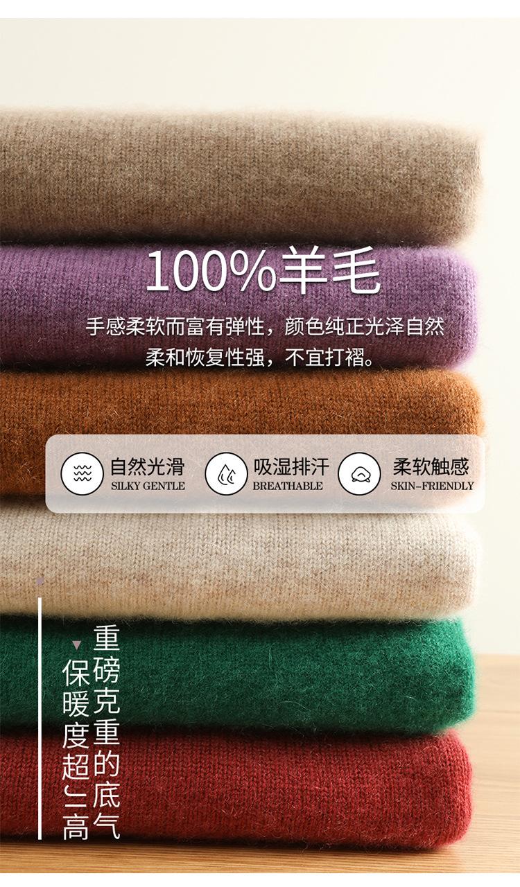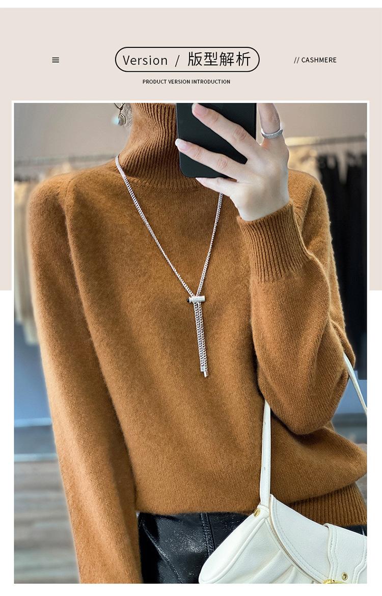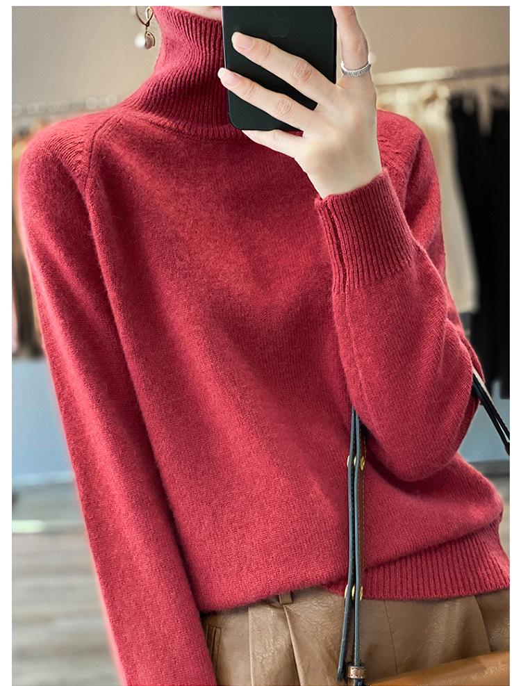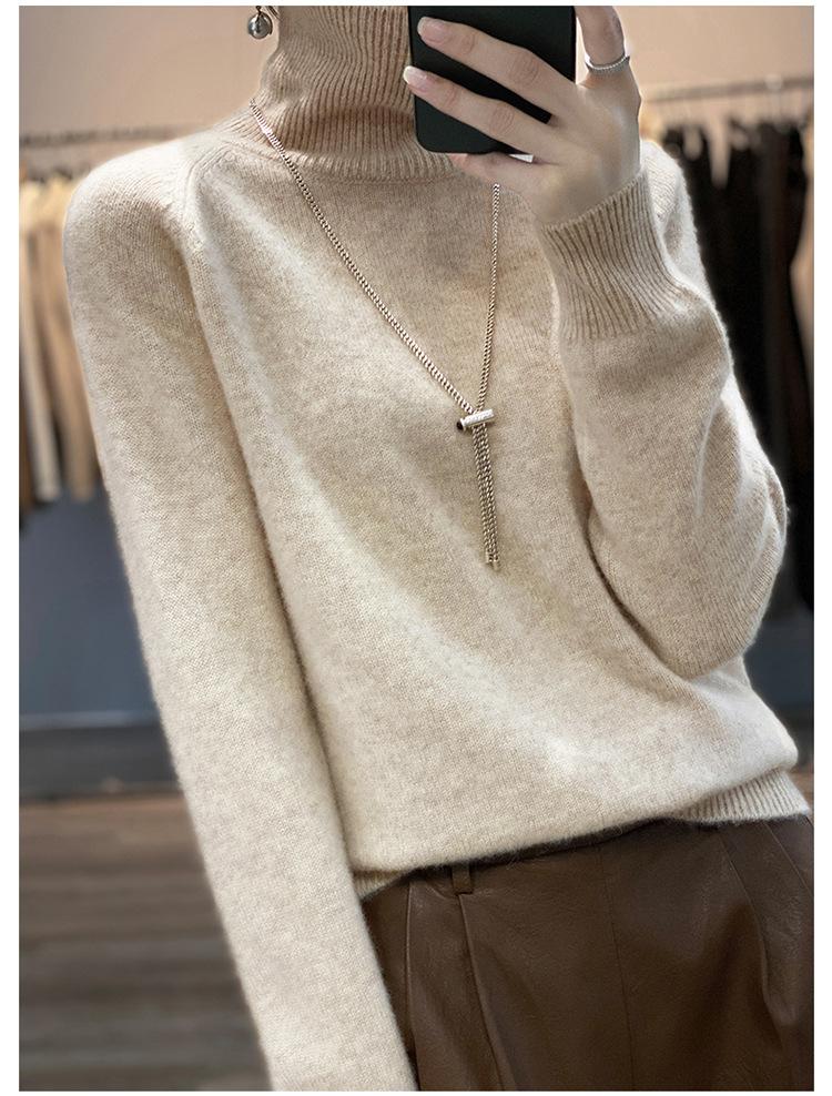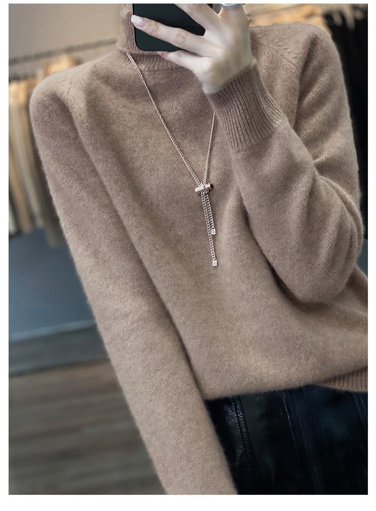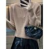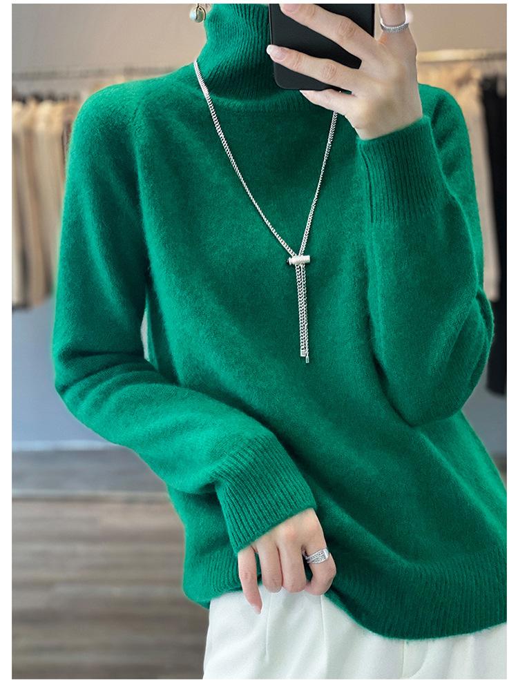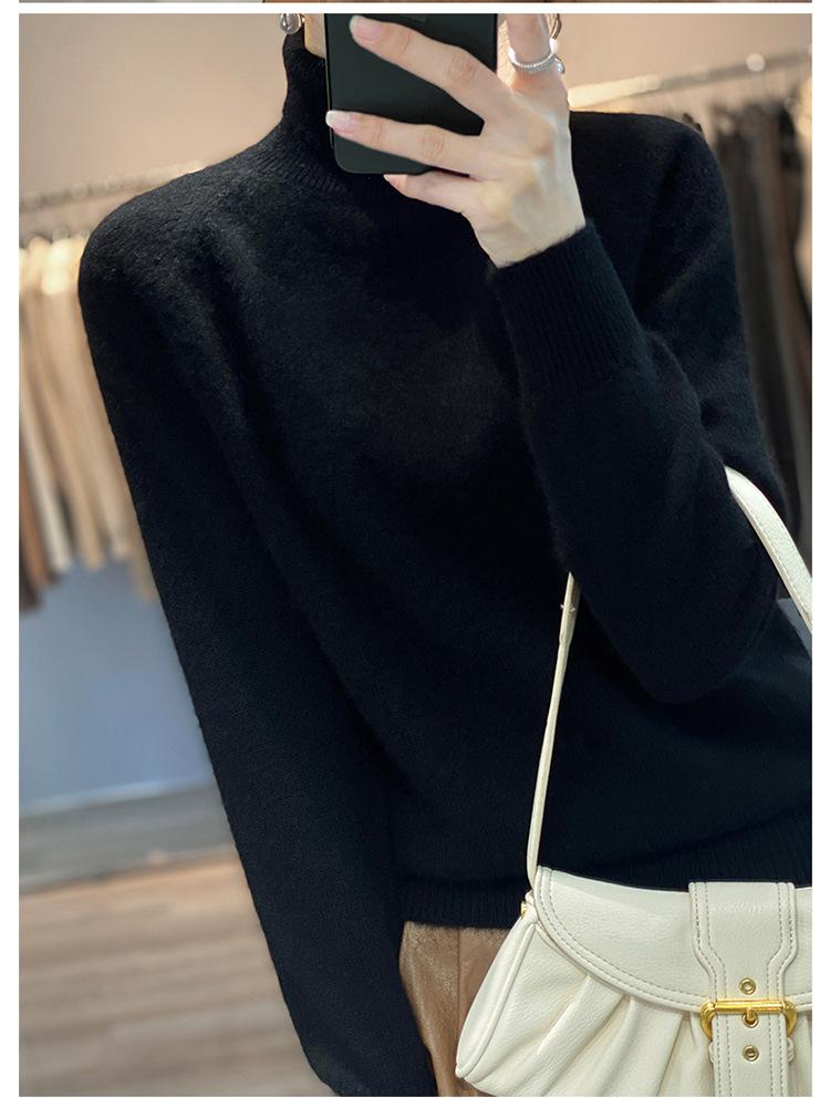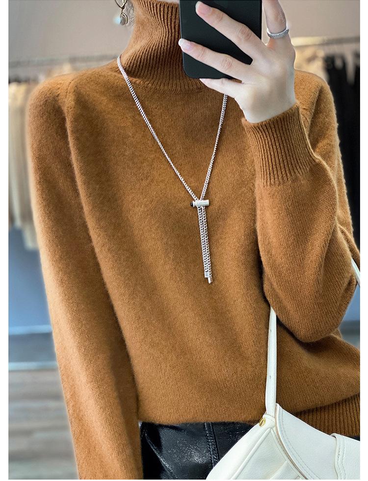 Suéter sencillo de cuello alto de color sólido para mujer de otoño e invierno, holgado, casual para ir al trabajo, de lana completa de siete agujas engrosado