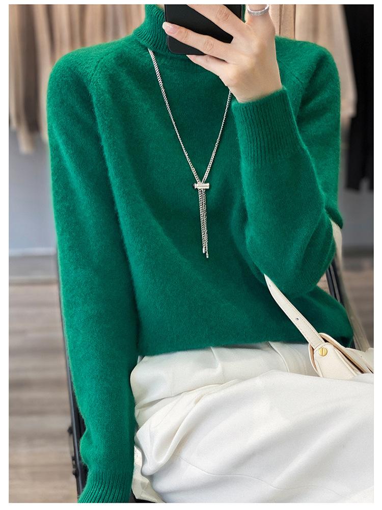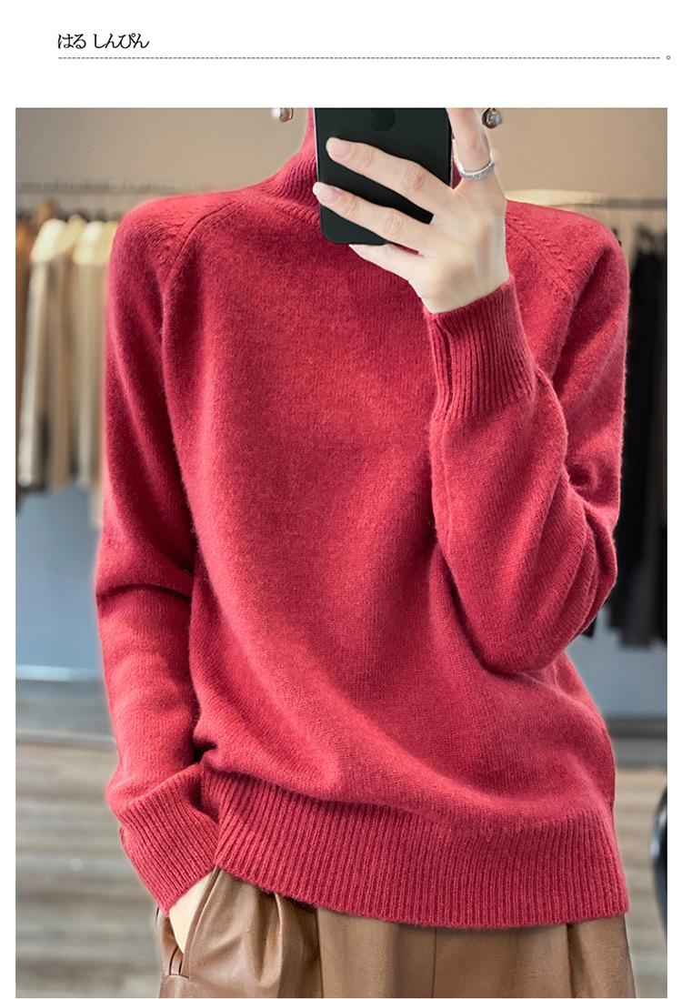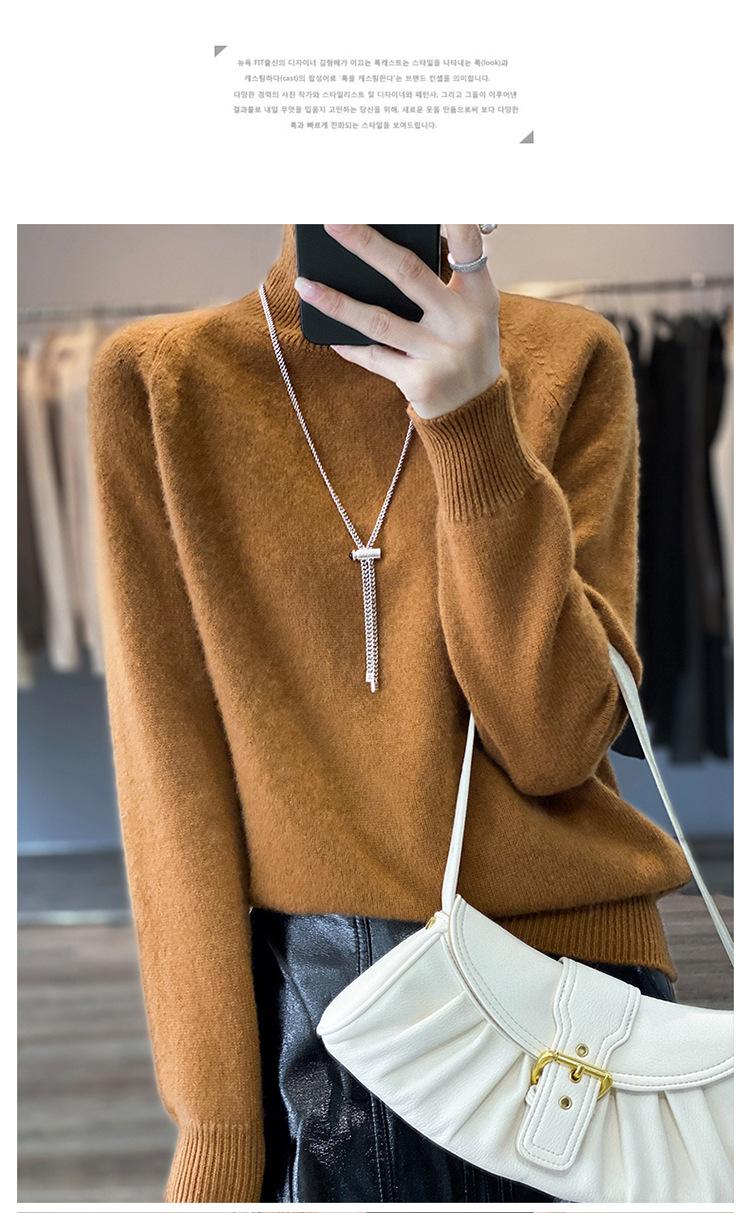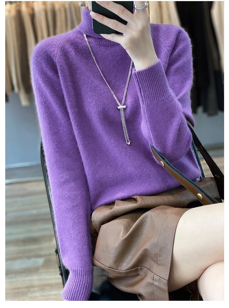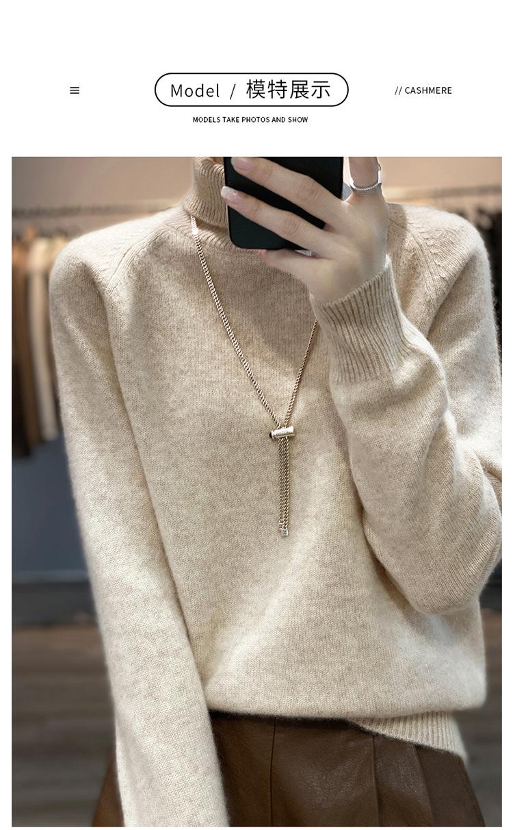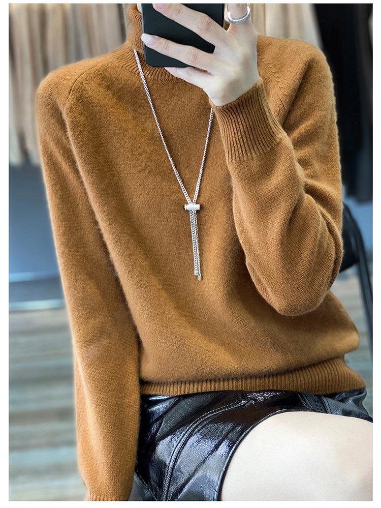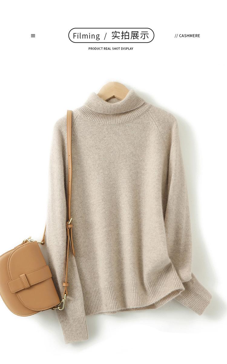 Suéter sencillo de cuello alto de color sólido para mujer de otoño e invierno, holgado, casual para ir al trabajo, de lana completa de siete agujas engrosado
