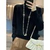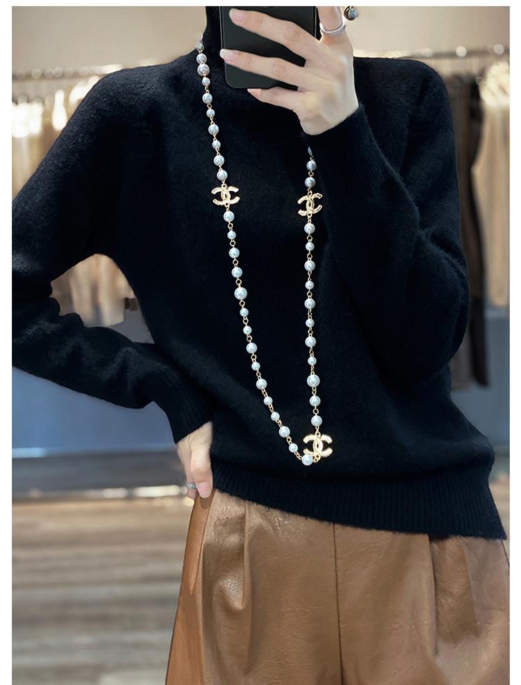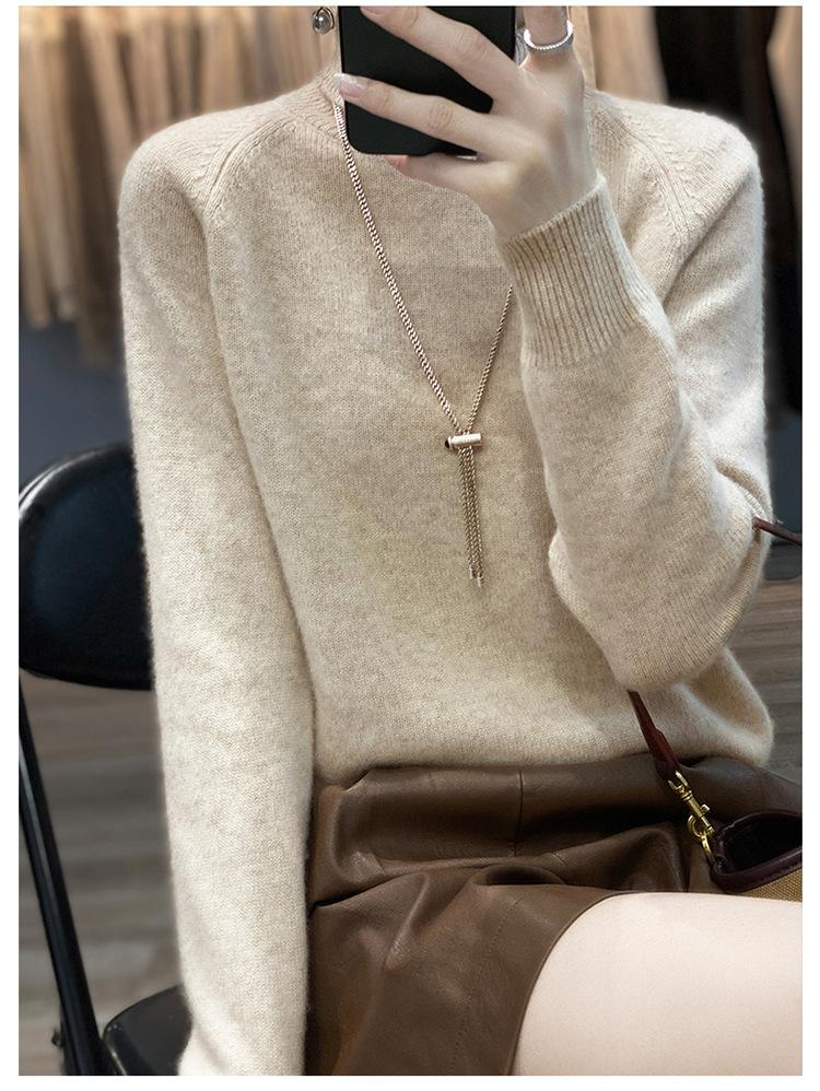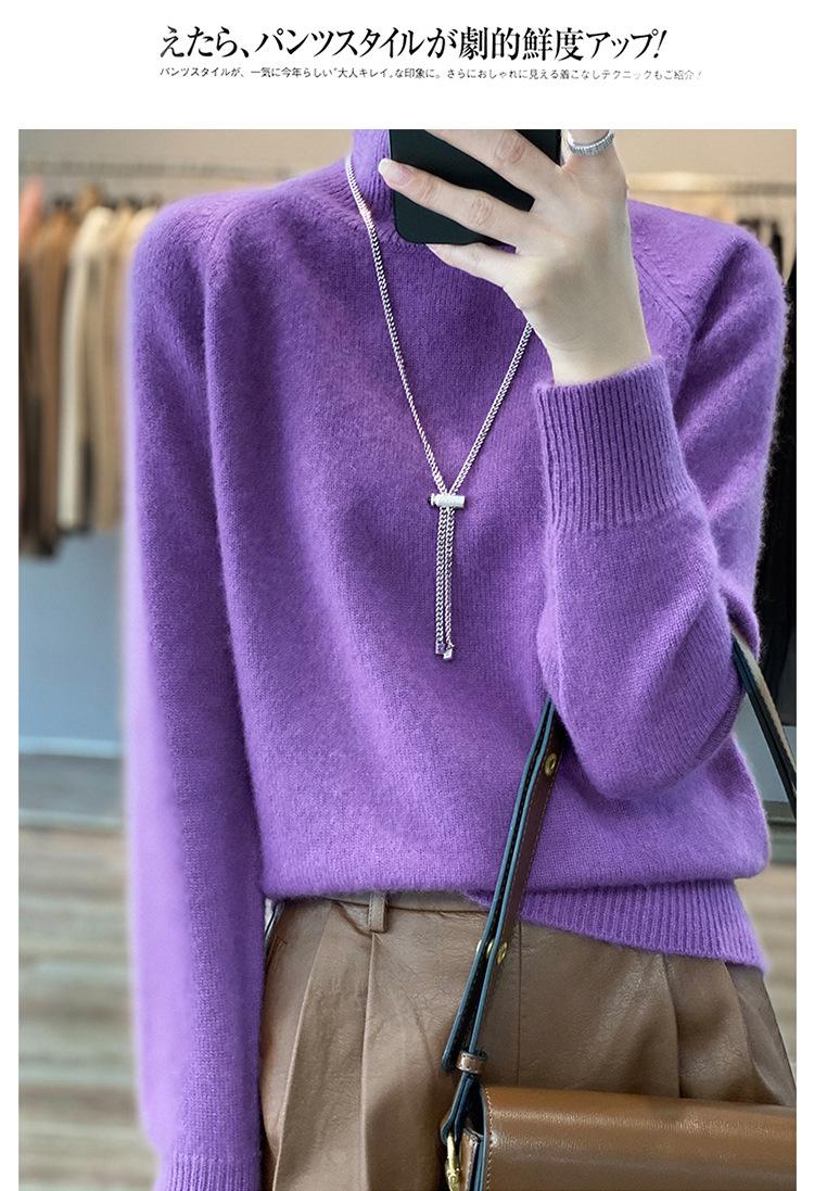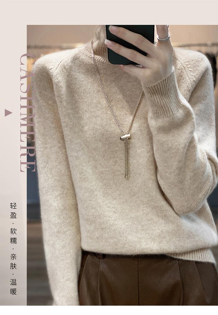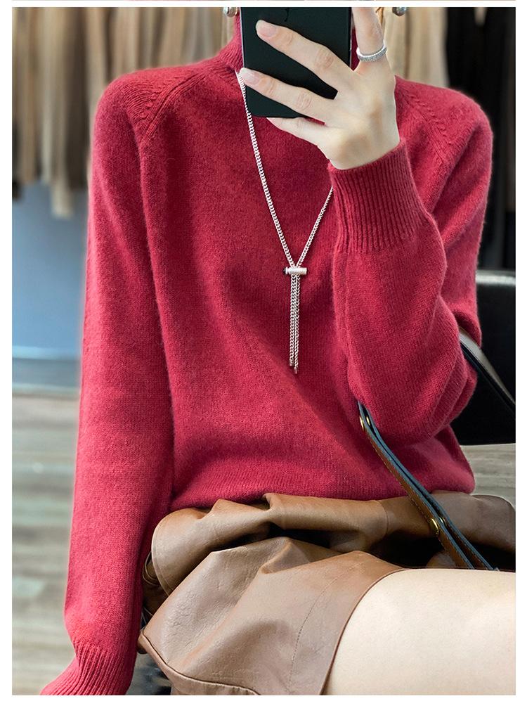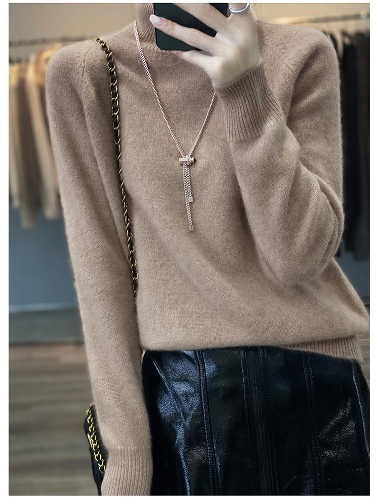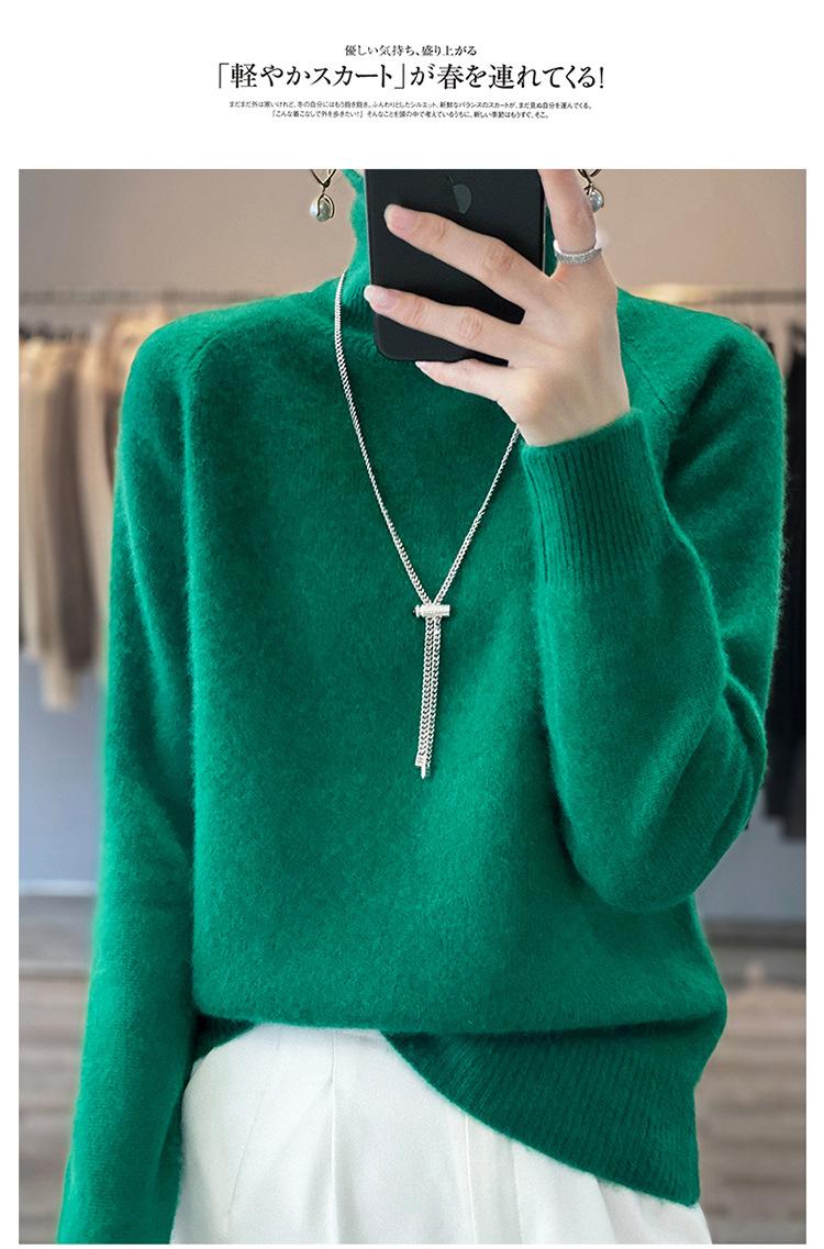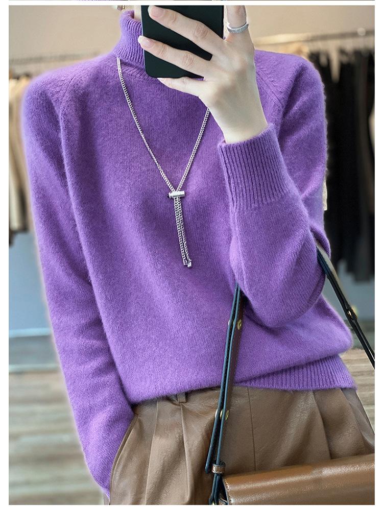 Suéter sencillo de cuello alto de color sólido para mujer de otoño e invierno, holgado, casual para ir al trabajo, de lana completa de siete agujas engrosado
