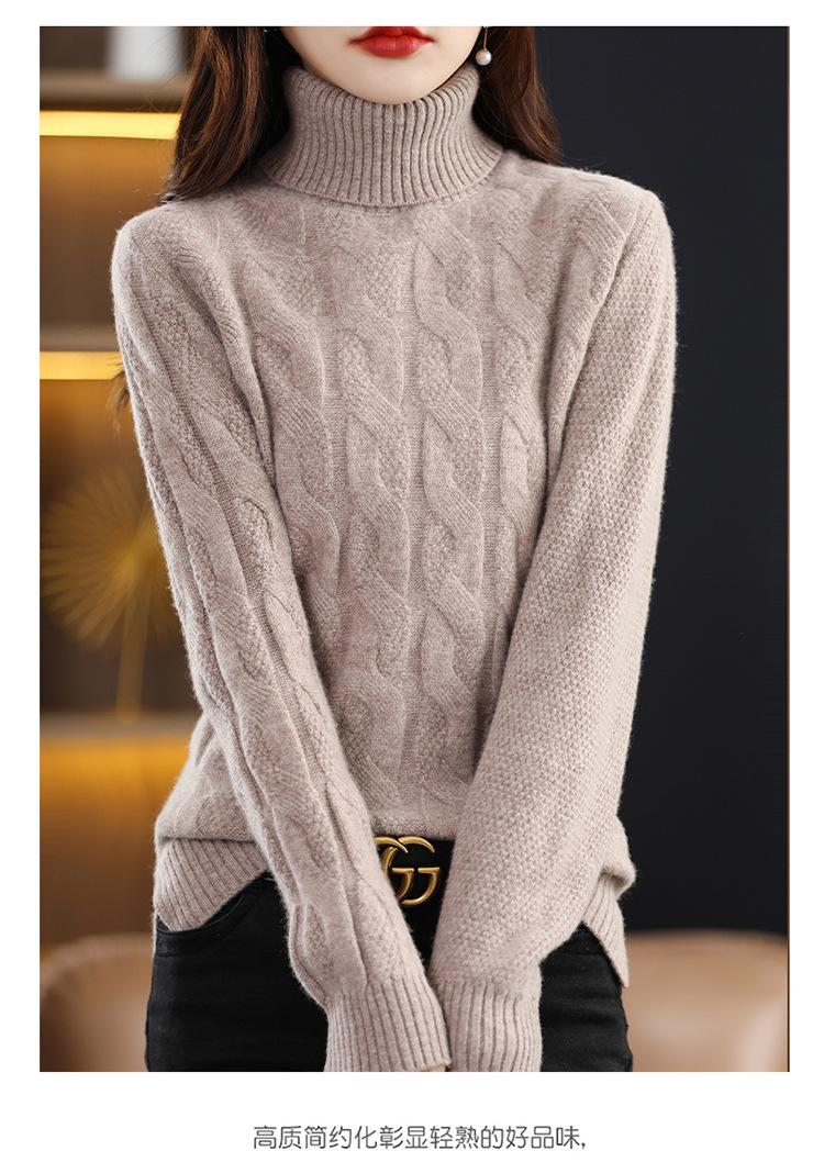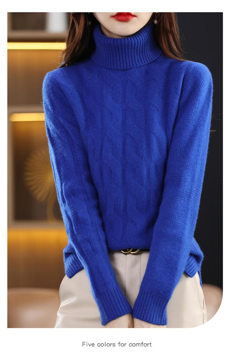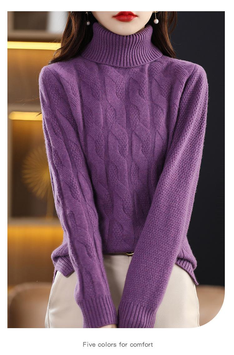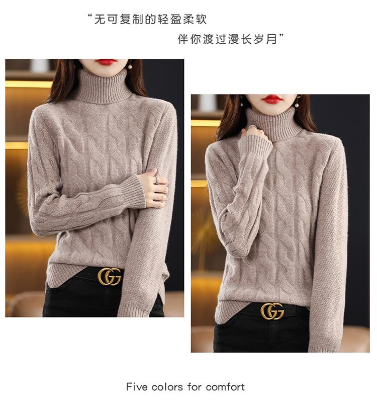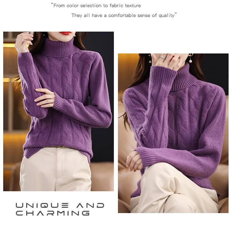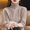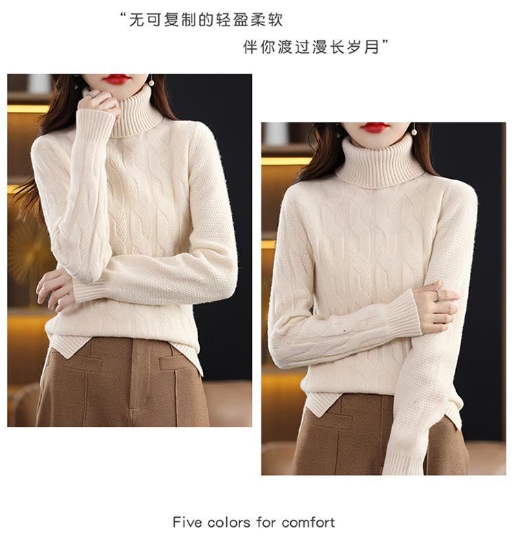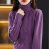 Otoño e invierno 2022 jersey de punto nuevo de lana entera para mujer de cuello alto simple color sólido trenzado holgado adelgazante