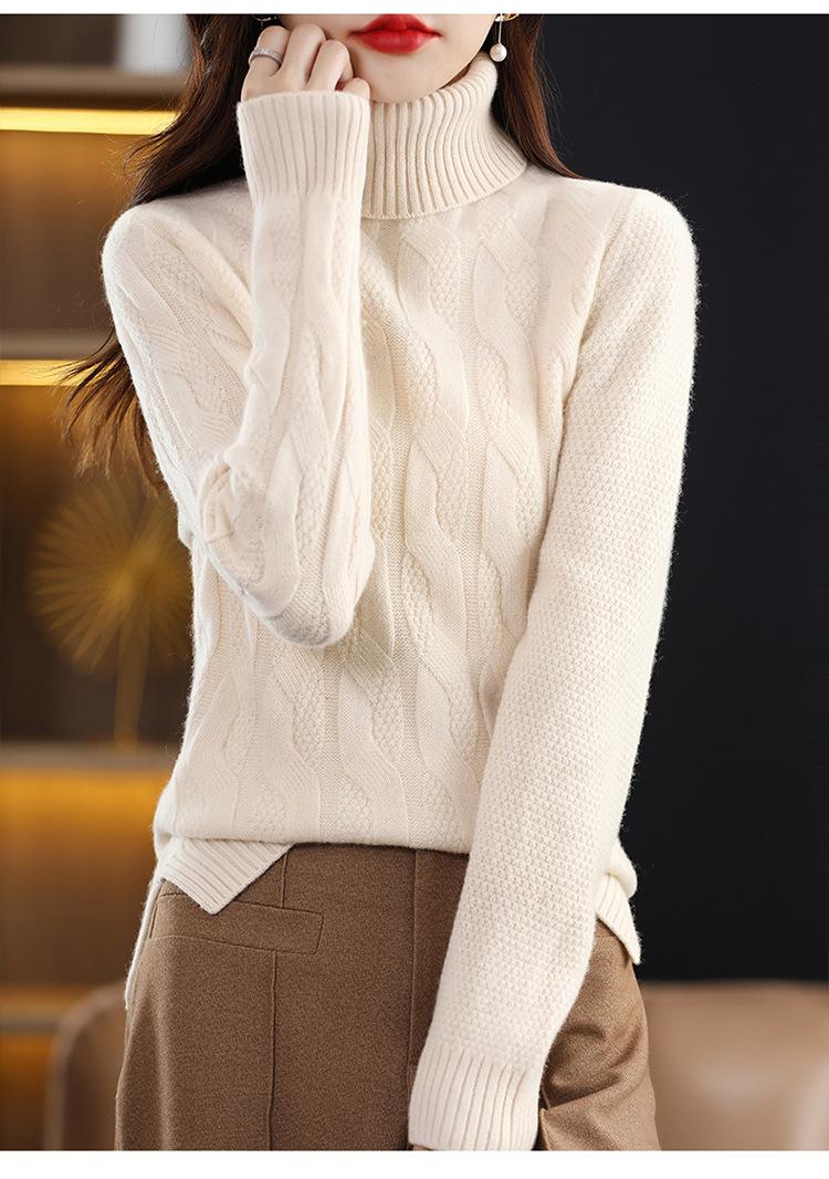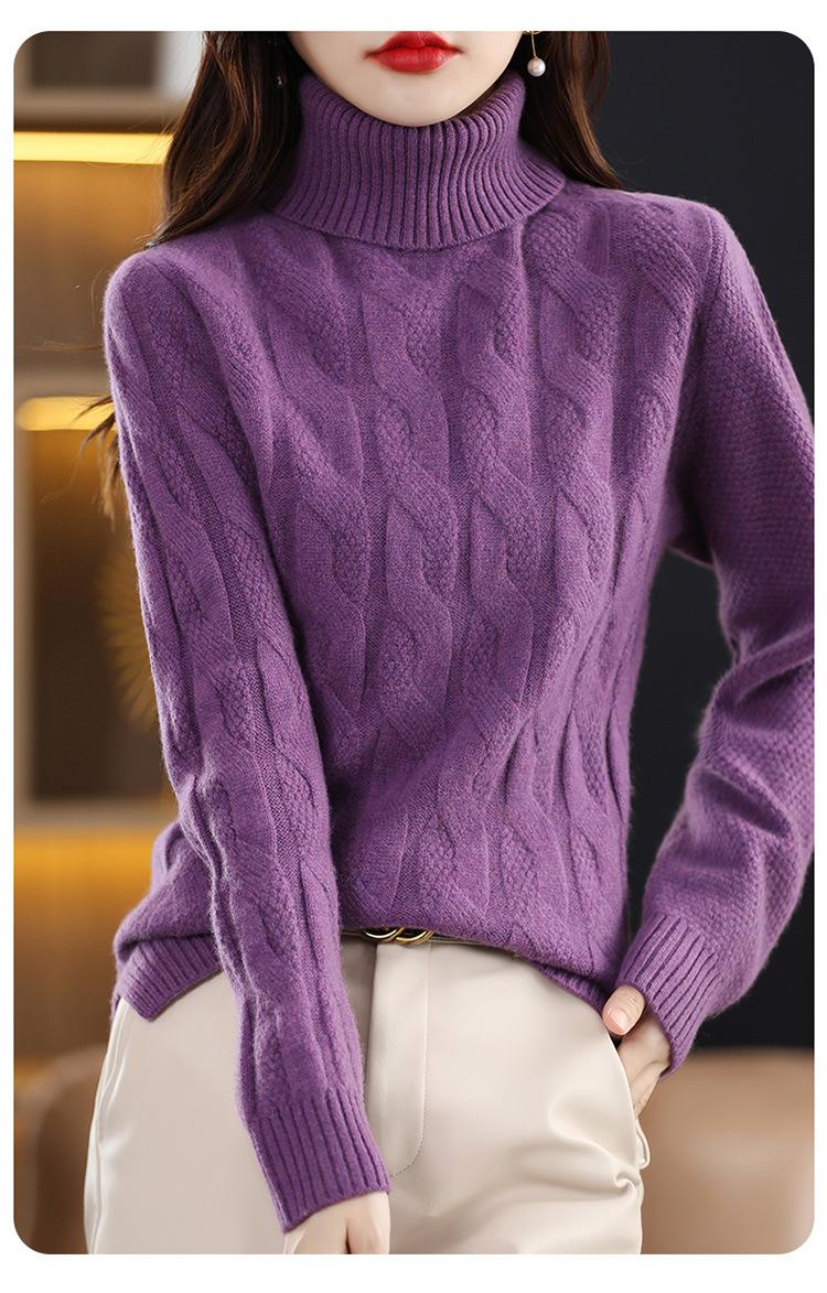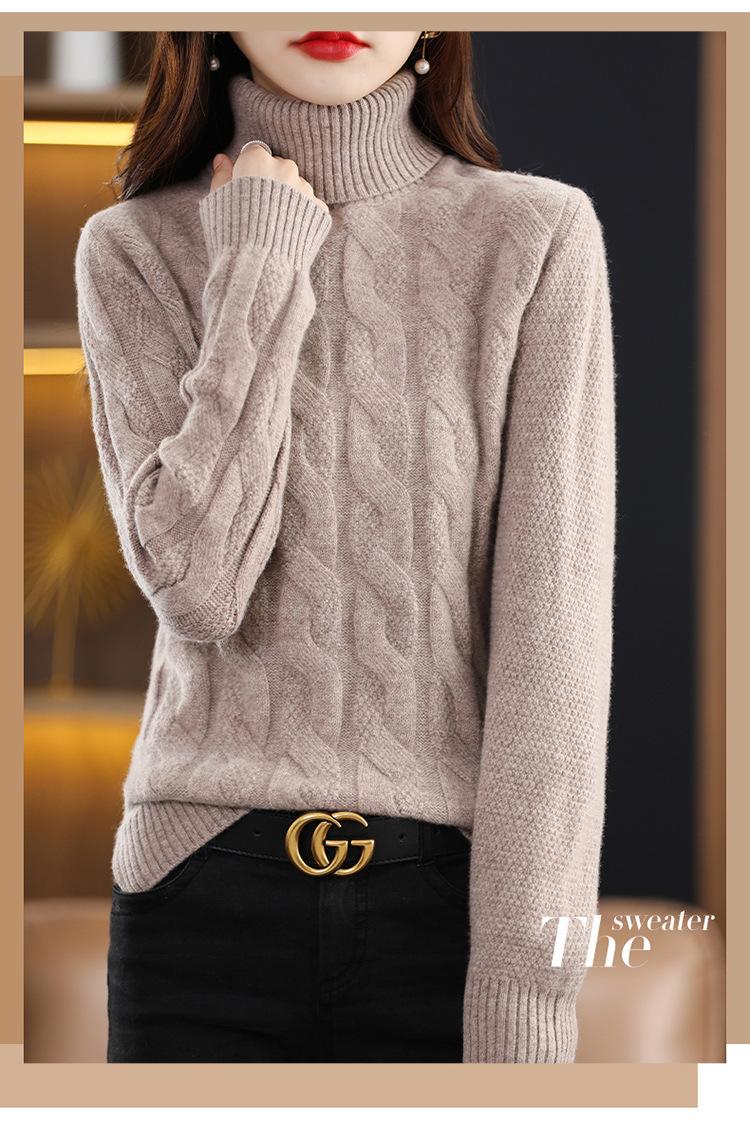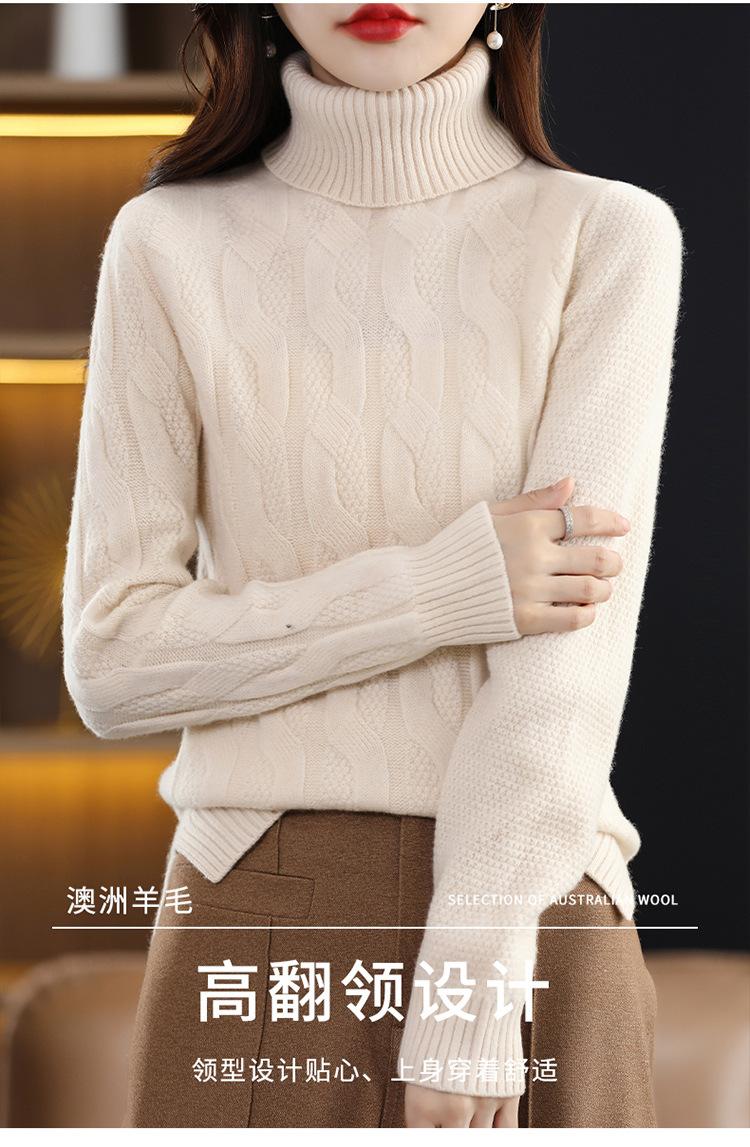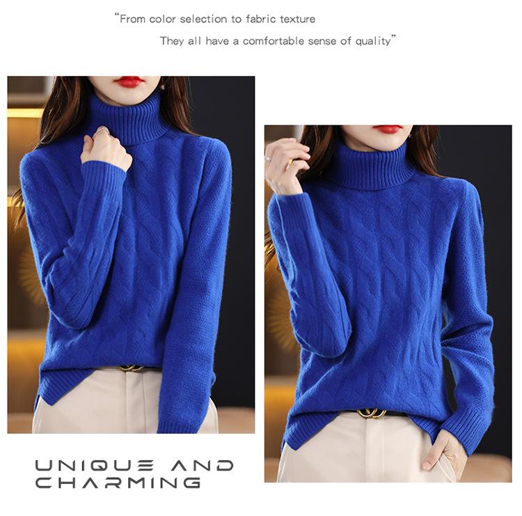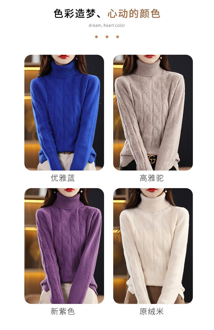 Otoño e invierno 2022 jersey de punto nuevo de lana entera para mujer de cuello alto simple color sólido trenzado holgado adelgazante