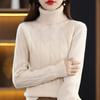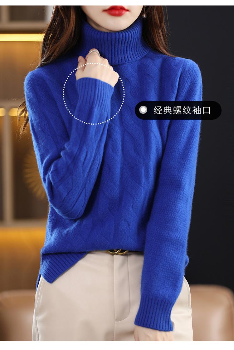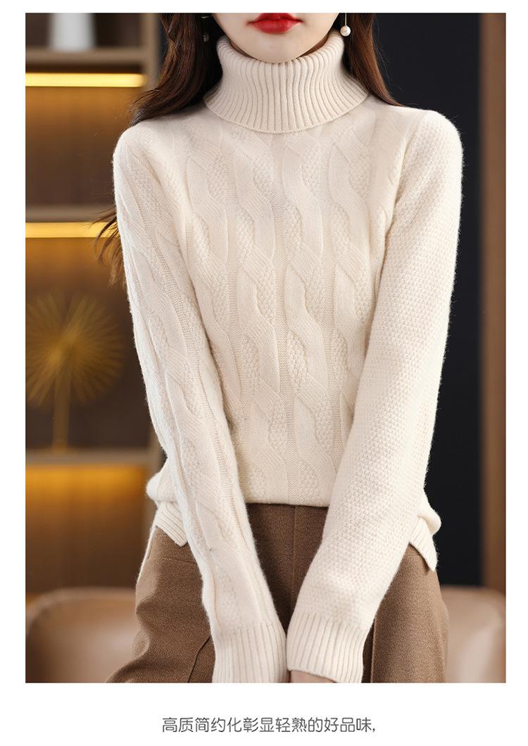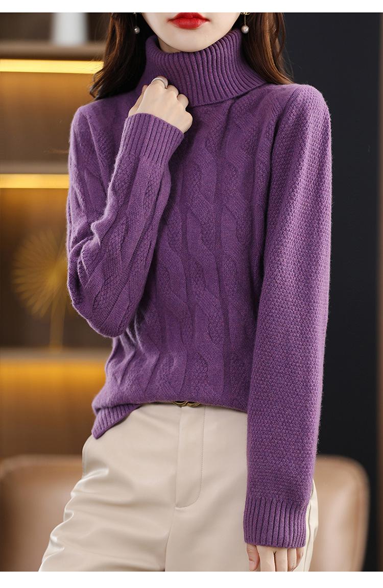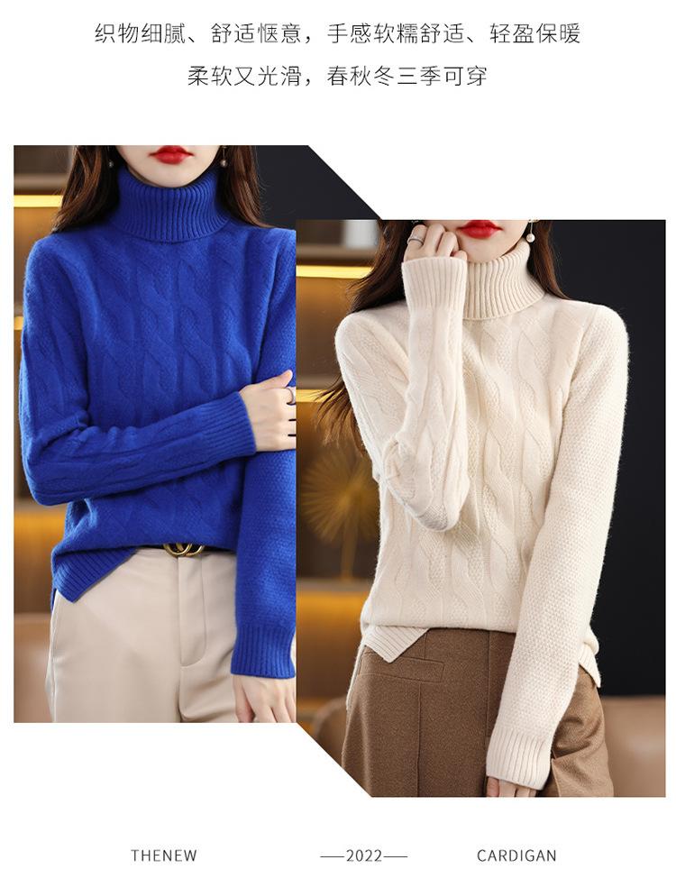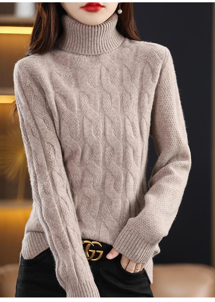 Otoño e invierno 2022 jersey de punto nuevo de lana entera para mujer de cuello alto simple color sólido trenzado holgado adelgazante
