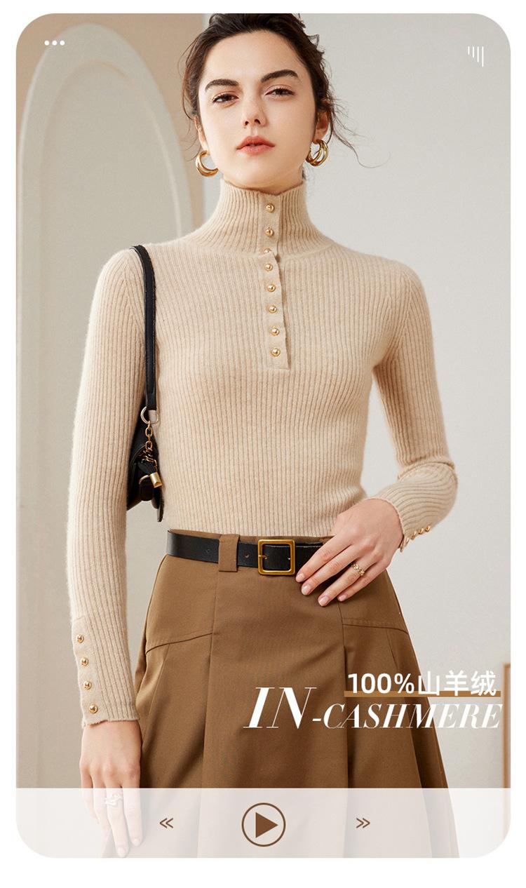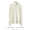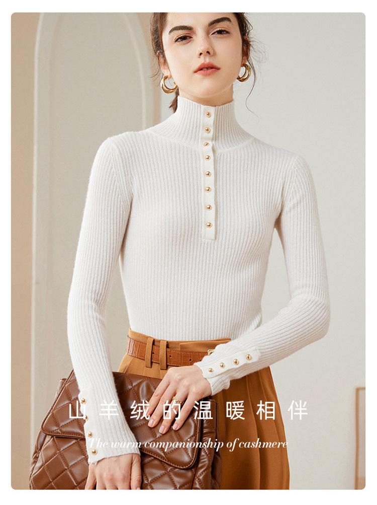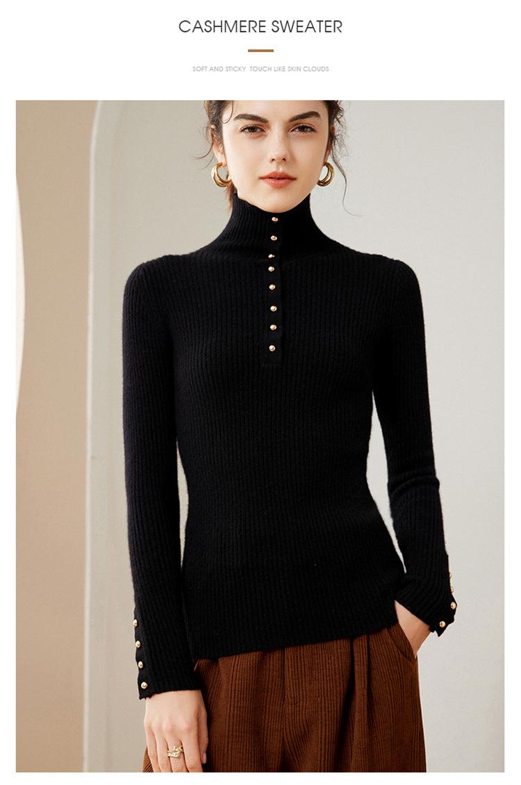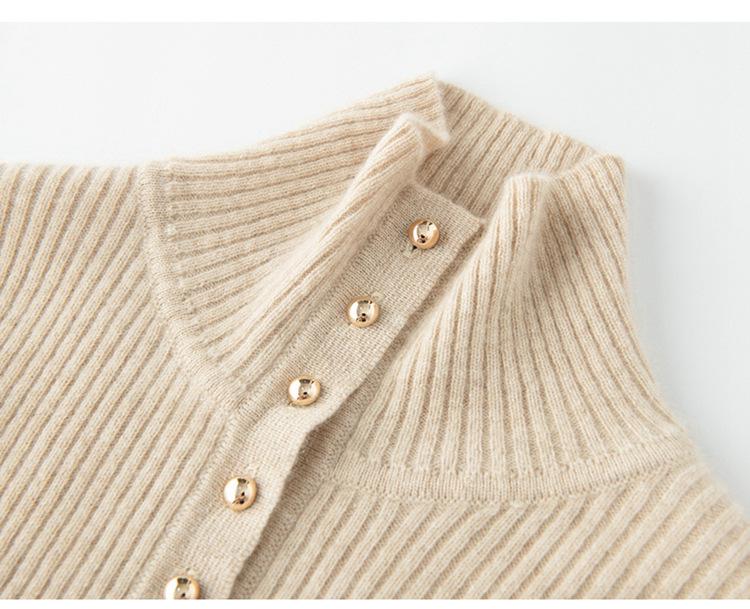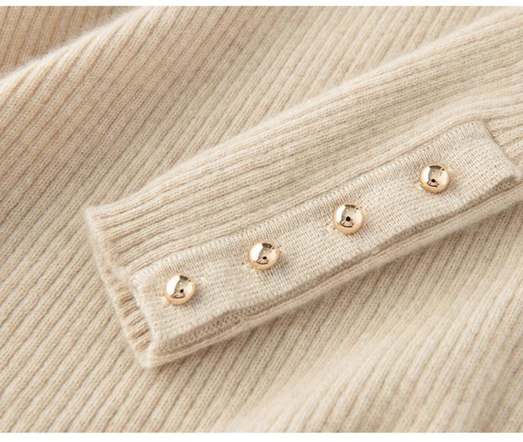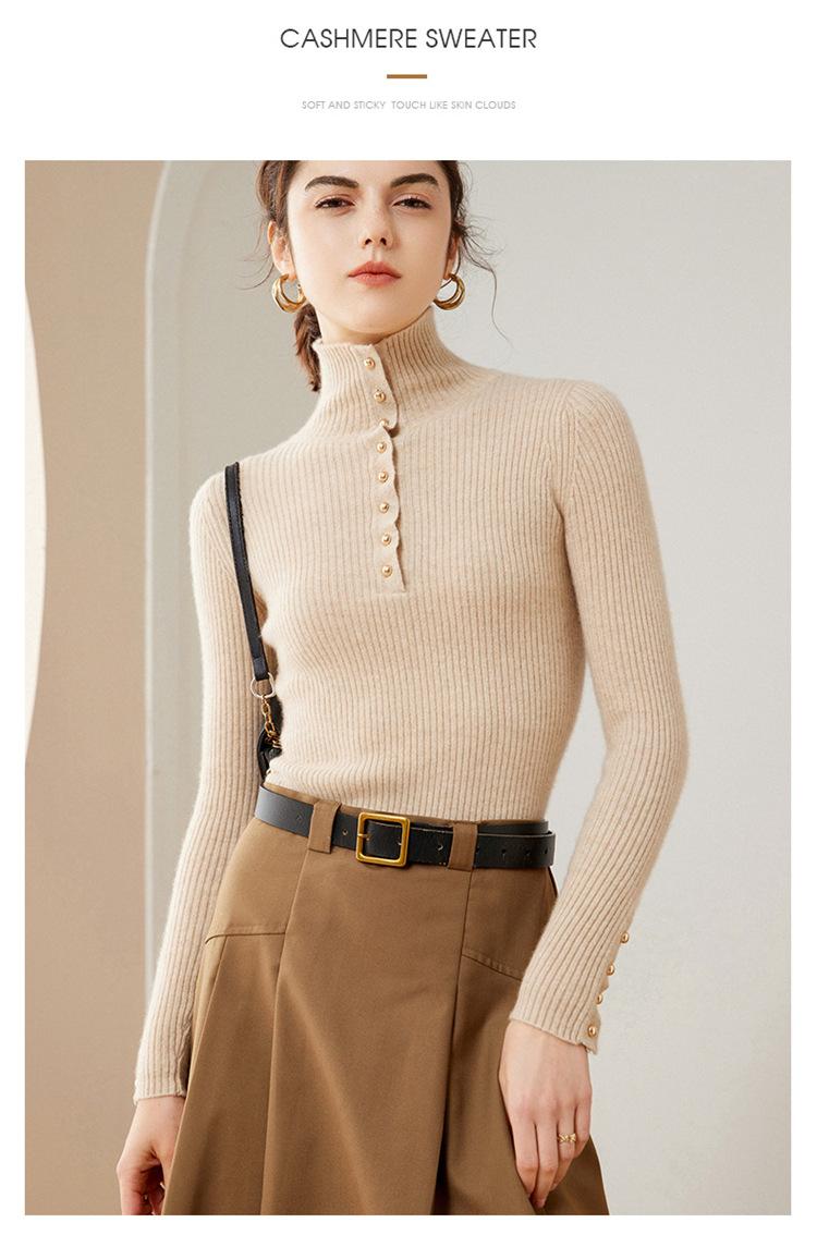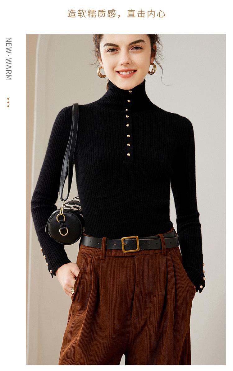 Suéter de cuello alto medio a rayas para mujer a la moda, con hebilla dorada, de punto fino, entallado, adelgazante, para ir al trabajo, todo de cachemira, nuevo básico de punto