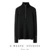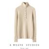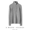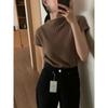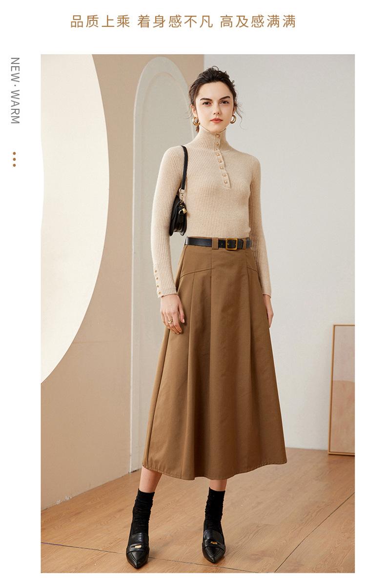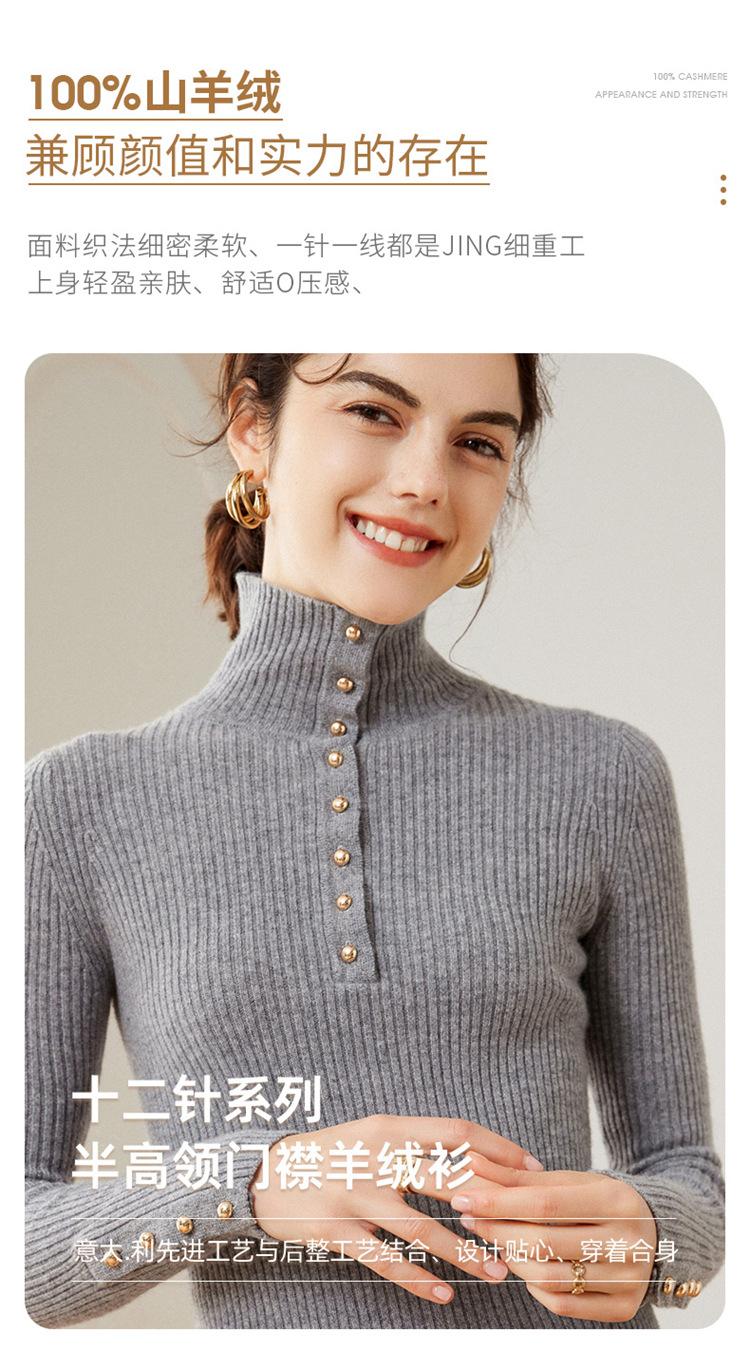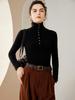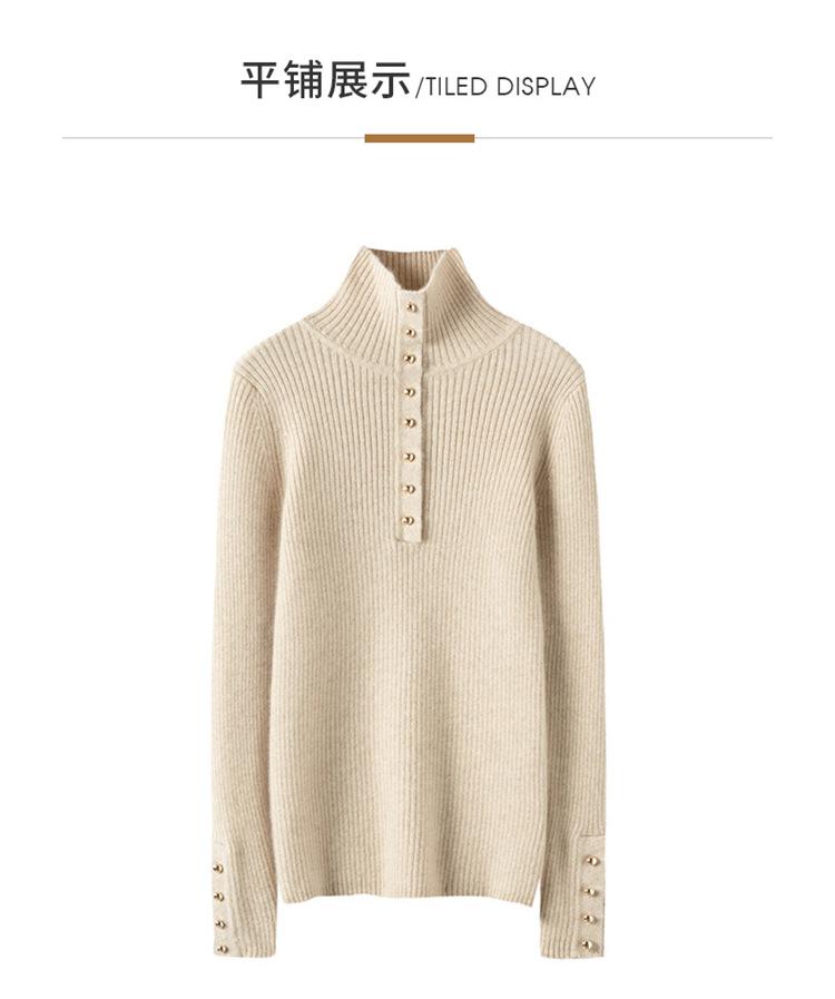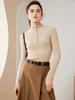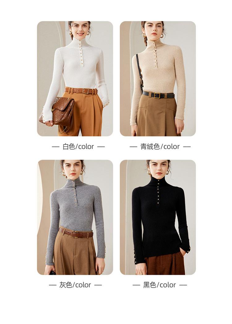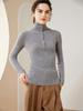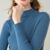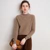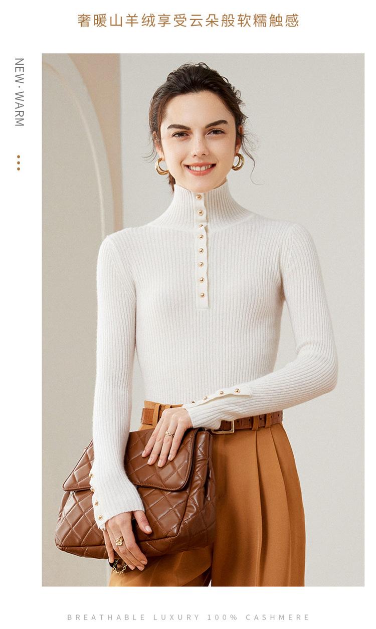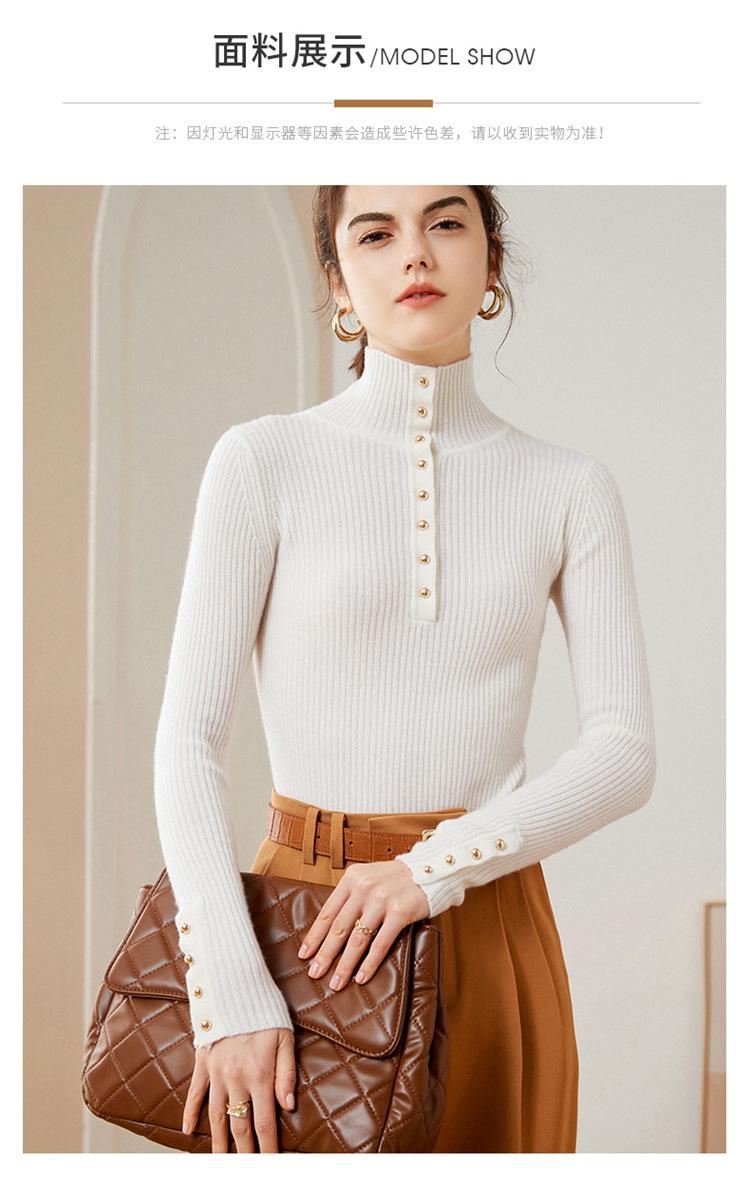 Suéter de cuello alto medio a rayas para mujer a la moda, con hebilla dorada, de punto fino, entallado, adelgazante, para ir al trabajo, todo de cachemira, nuevo básico de punto
