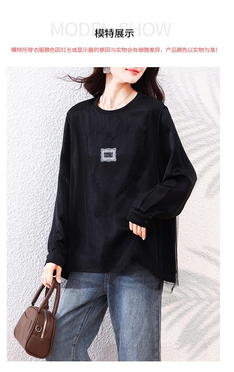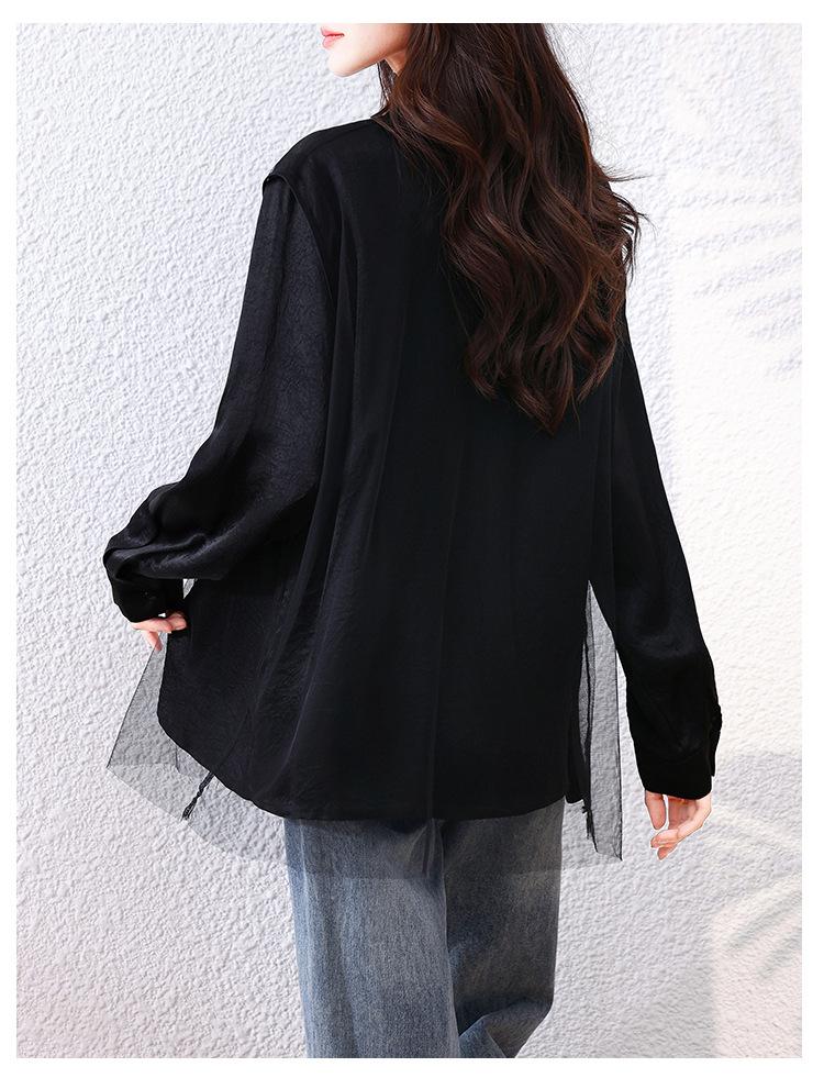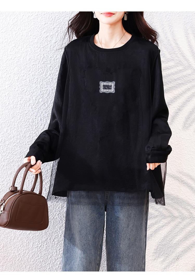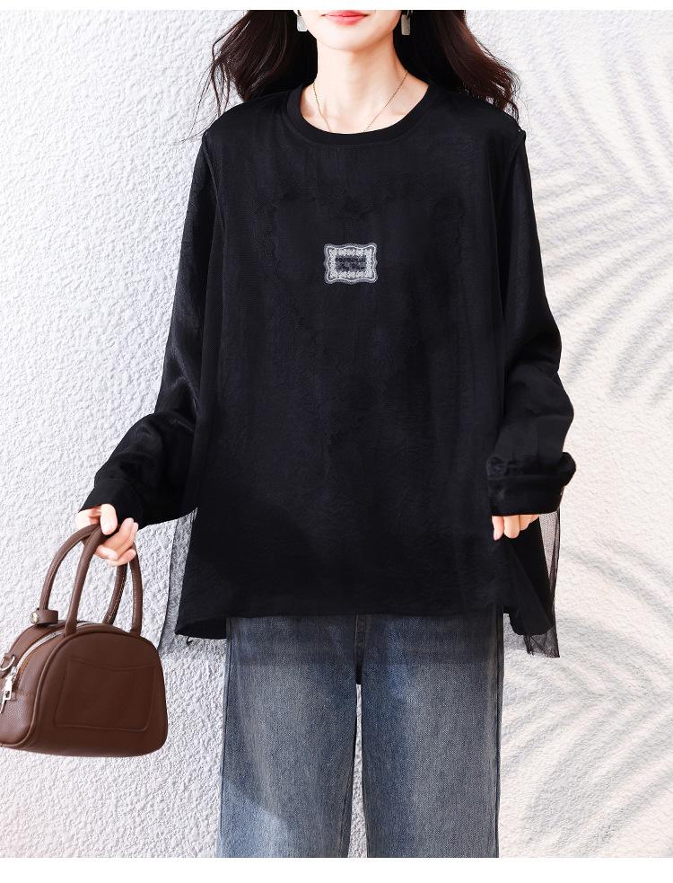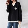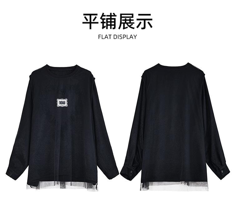 Foto real en stock temperamento falso dos piezas camiseta negra mujer año nuevo manga larga mujer otoño estilo europeo talla grande top