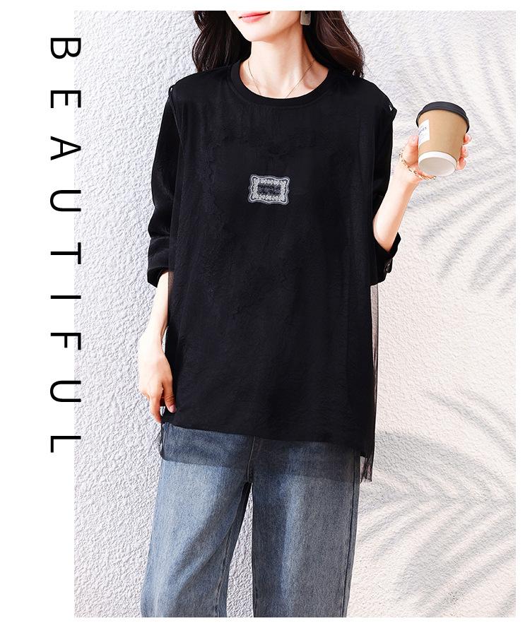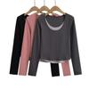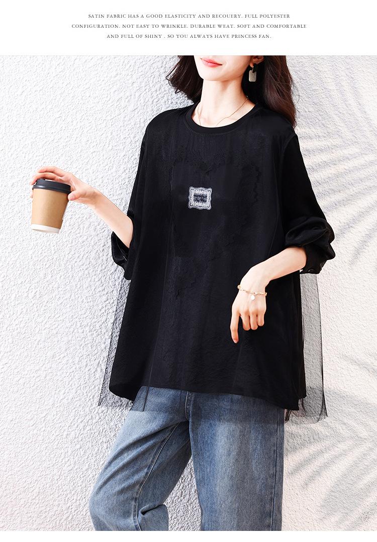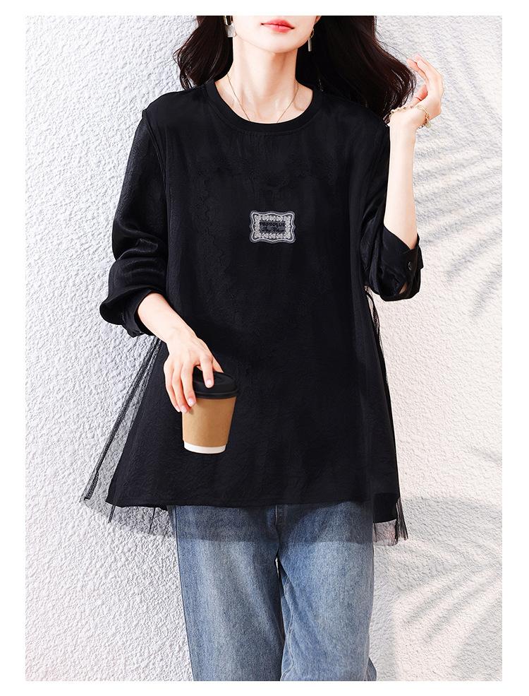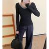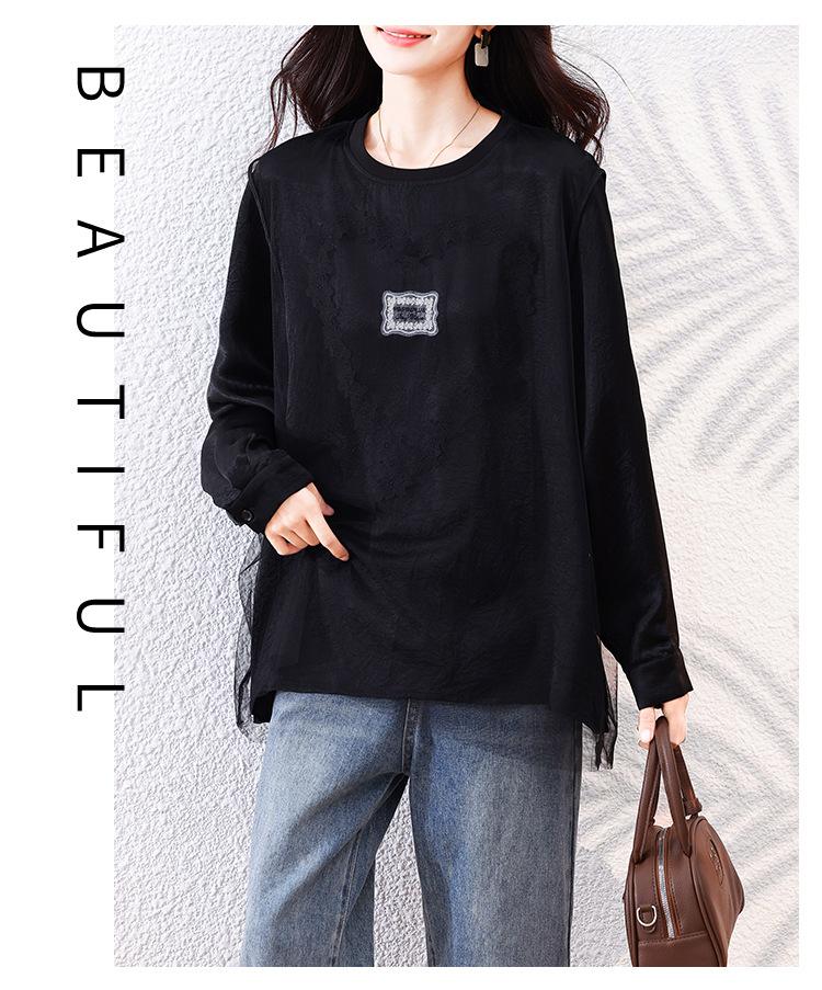 Foto real en stock temperamento falso dos piezas camiseta negra mujer año nuevo manga larga mujer otoño estilo europeo talla grande top