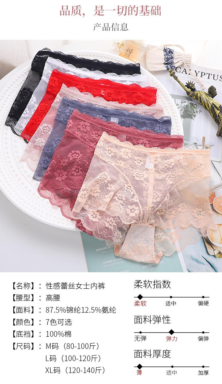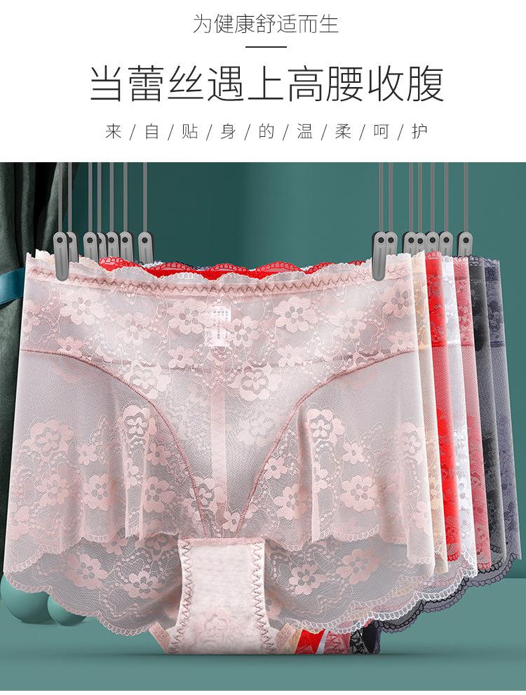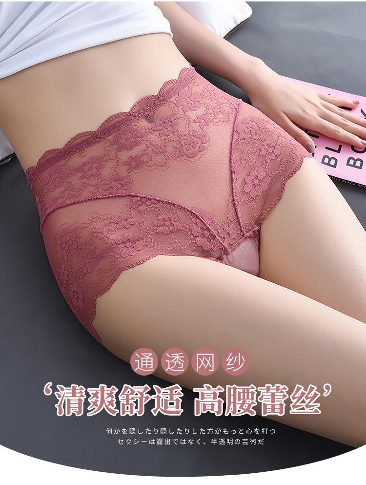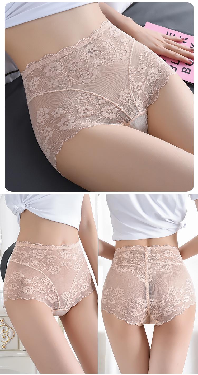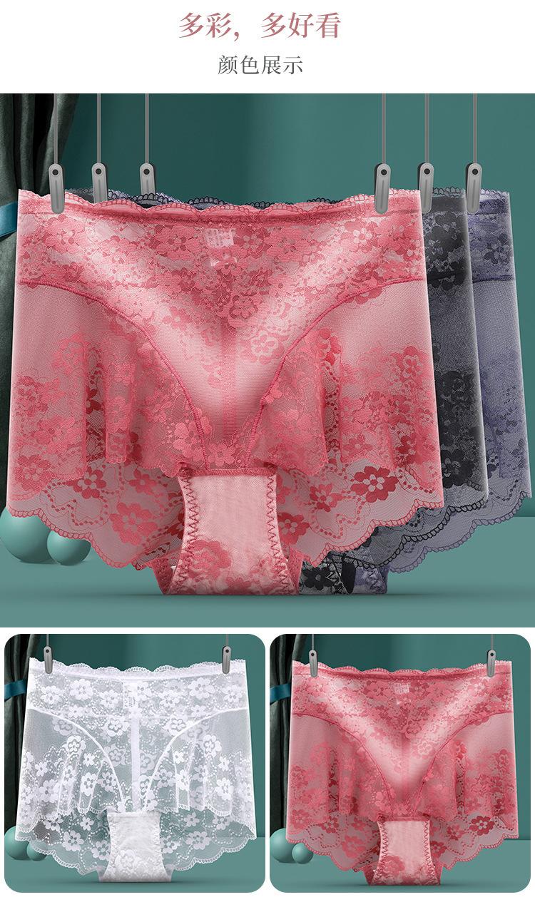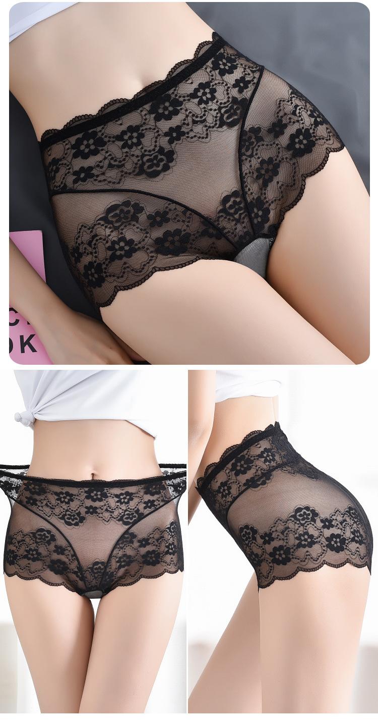 Ropa Interior de Encaje de Cintura Alta Talla Grande para Mujer Sexy Hueca Transpirable Calzones para Mujer Entrepierna de Algodón Puro Ropa Interior de Malla