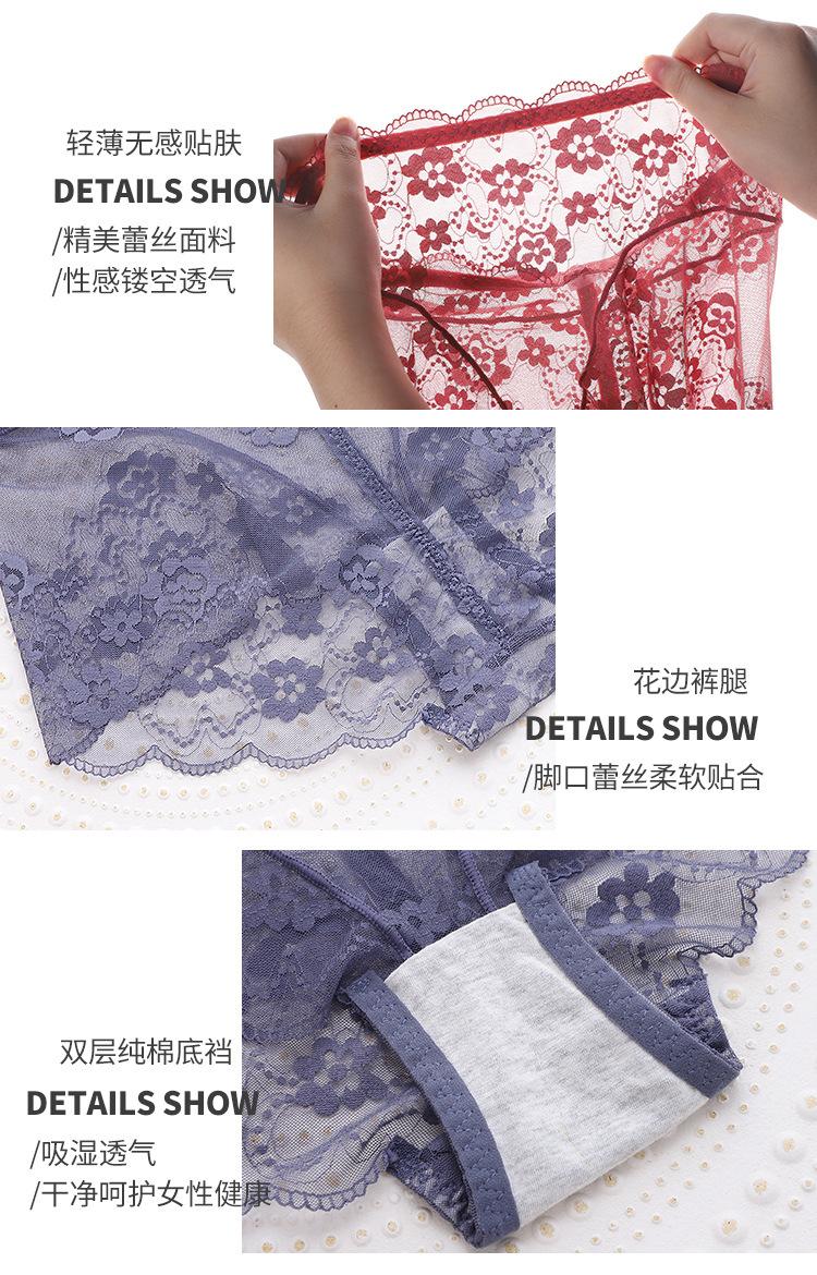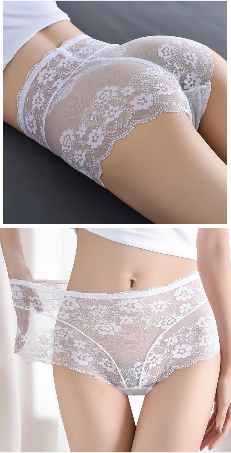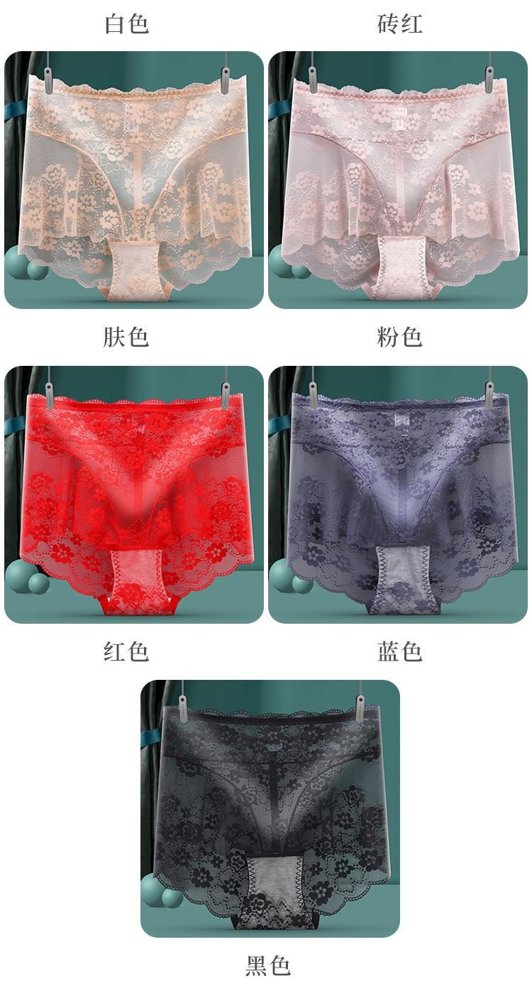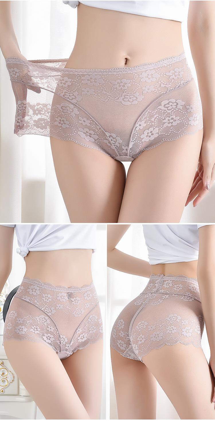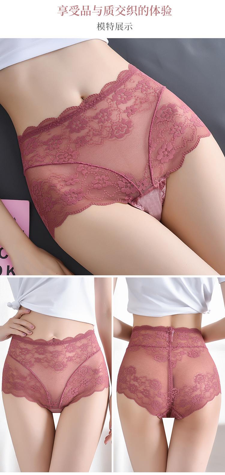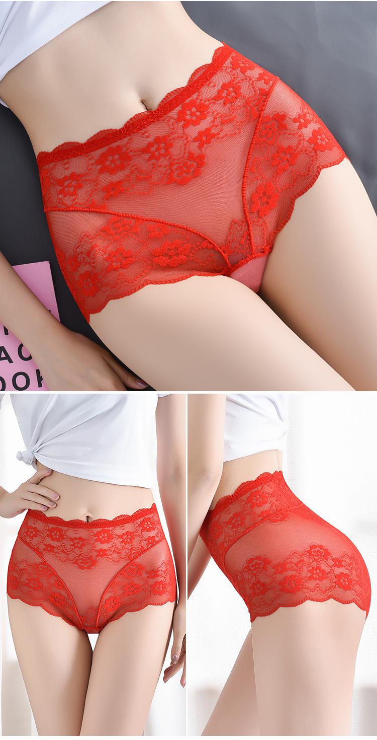 Ropa Interior de Encaje de Cintura Alta Talla Grande para Mujer Sexy Hueca Transpirable Calzones para Mujer Entrepierna de Algodón Puro Ropa Interior de Malla