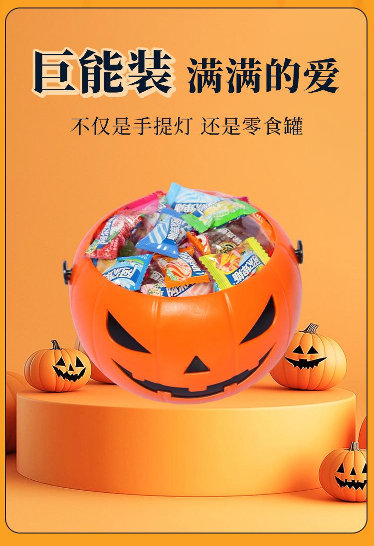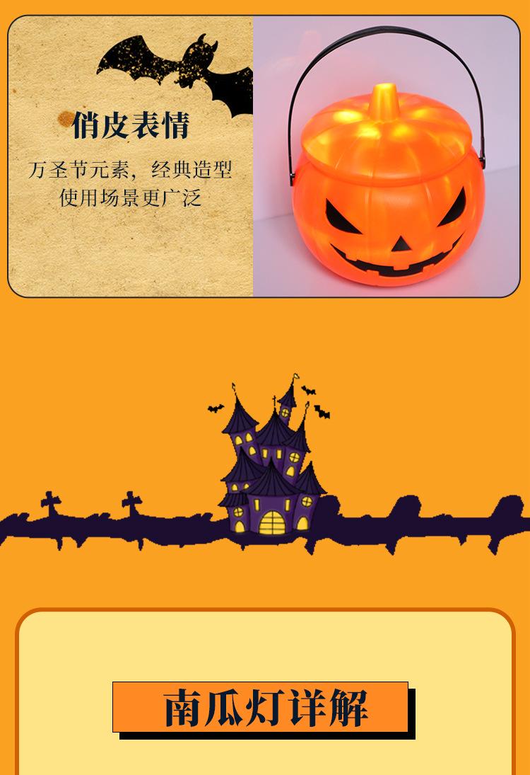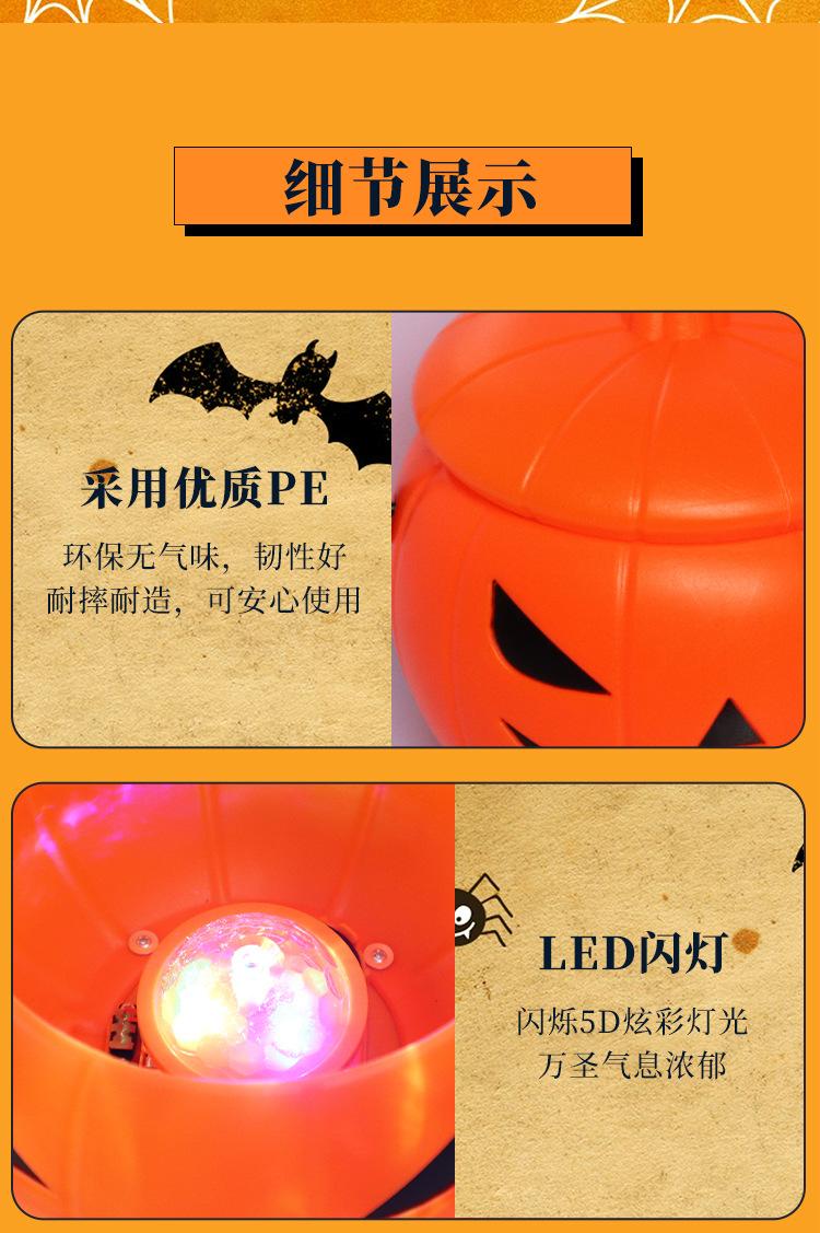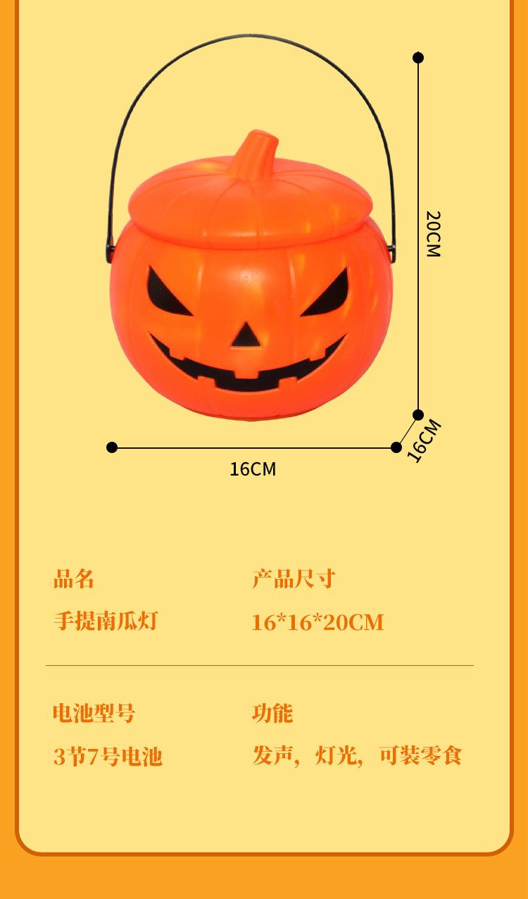 Linterna de calabaza transfronteriza cubo de calabaza de Halloween tarro de calabaza de mano para niños suministros para dulces accesorios de festival linterna brillante