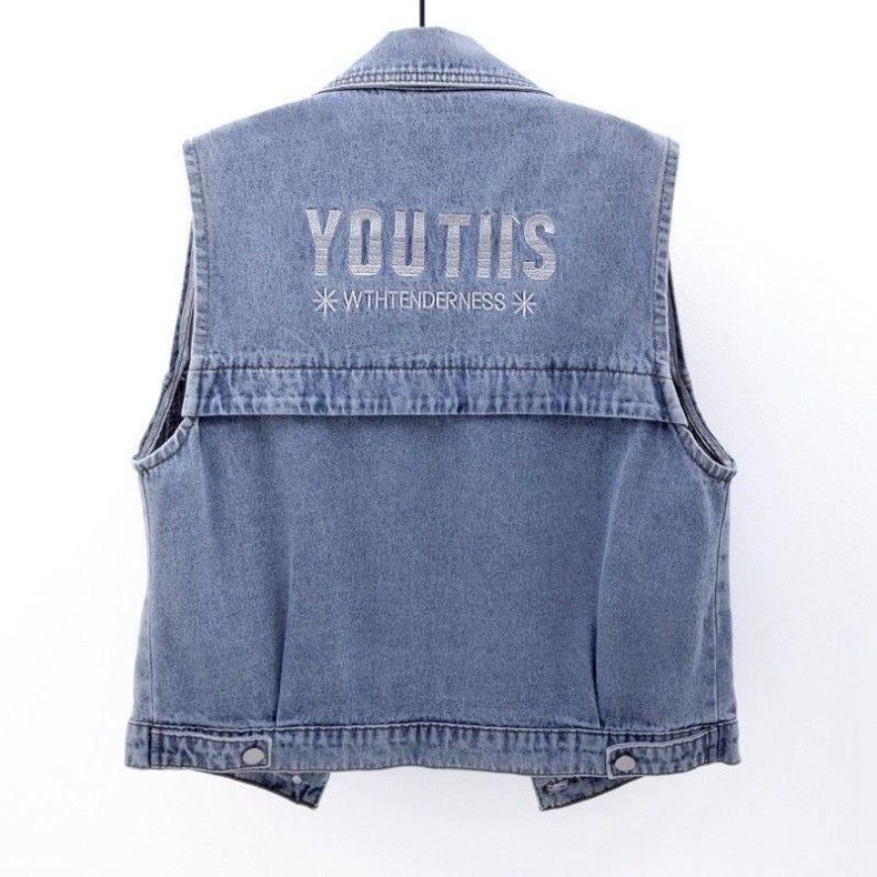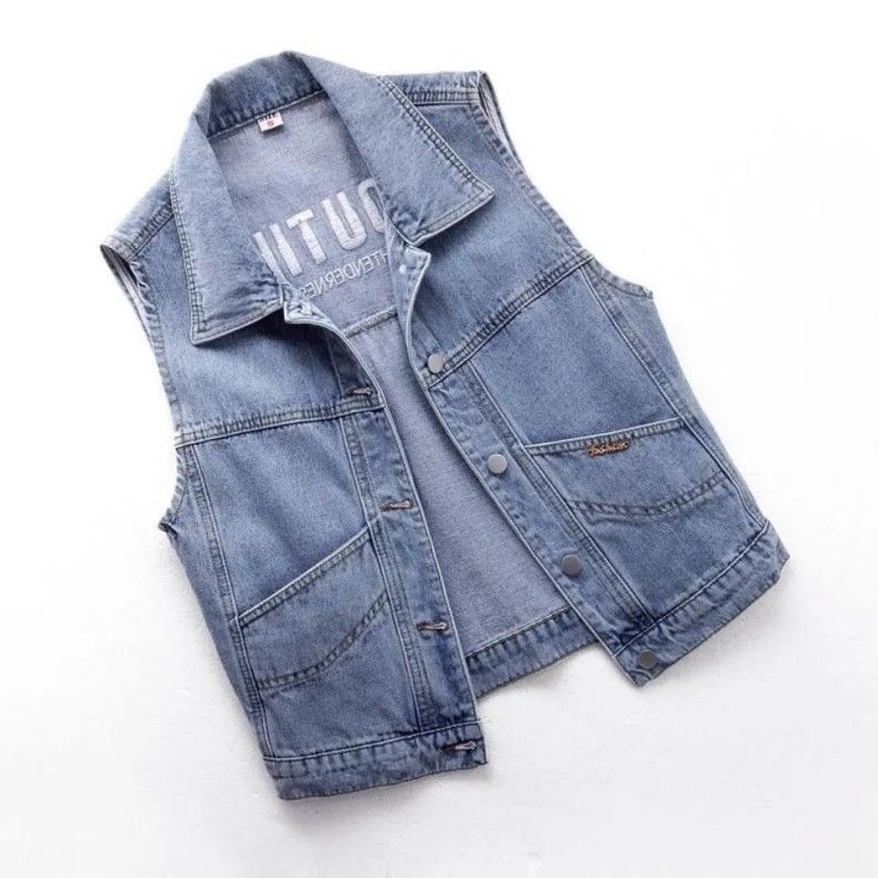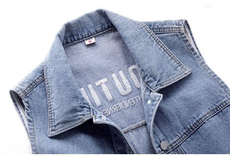 Nuevo Chaleco de Mezclilla de Primavera y Otoño para Mujer Suelto Versátil Casual Corto Bolsillo Grande Bordado Chaleco sin Mangas Marea