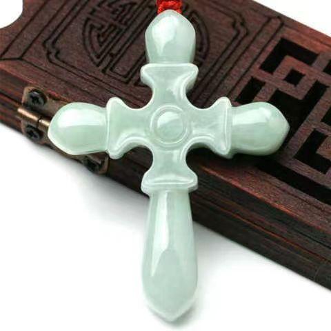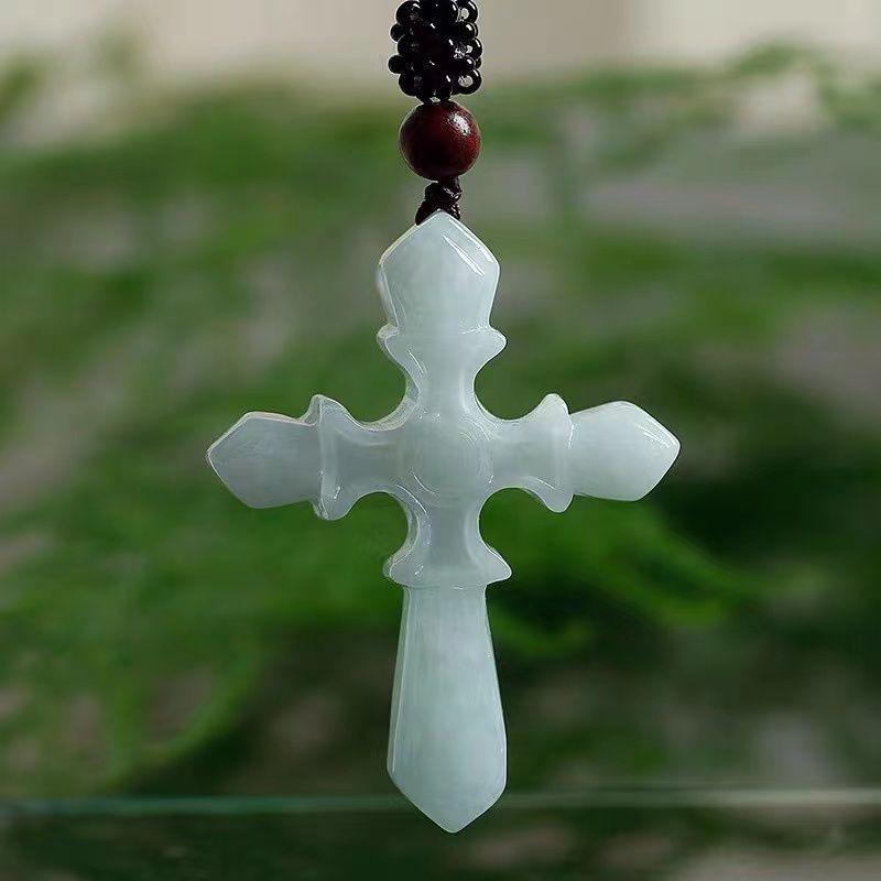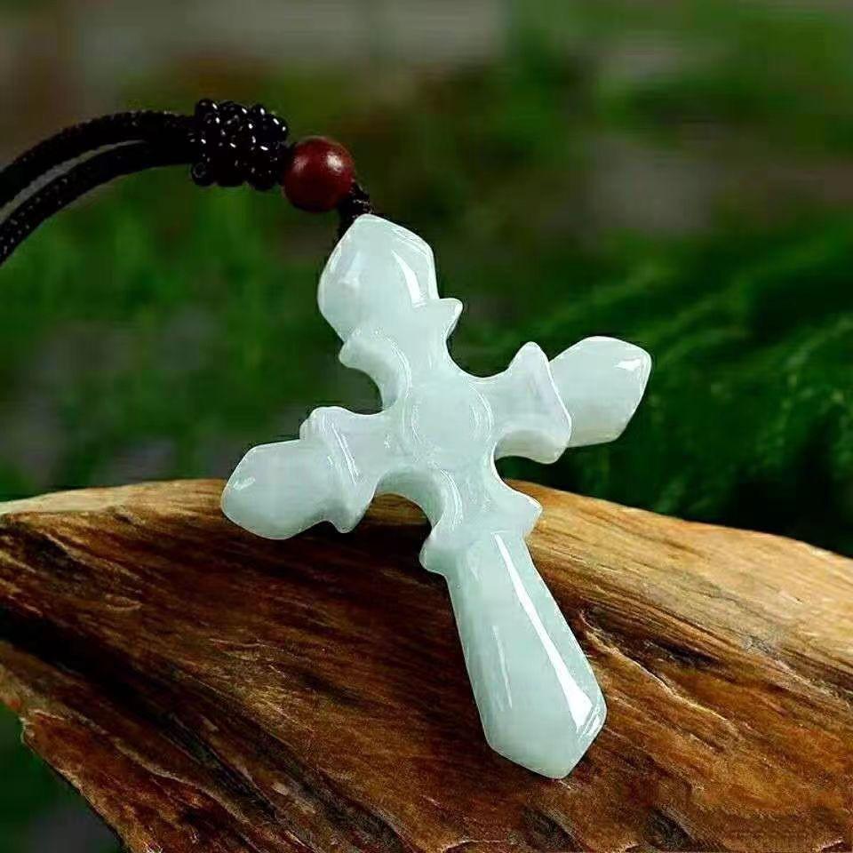 Jadeíta Jade Natural Birmano Cruz Tipo Ru Colgante de Jade Colgante de Jadeíta