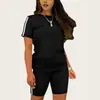 Amazon Transfronterizo Nuevo Traje Deportivo Casual para Mujer del Sudeste Asiático Conjunto de Dos Piezas de Top de Manga Corta y Shorts de Color Sólido