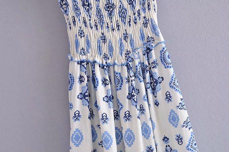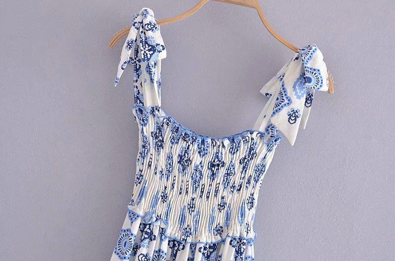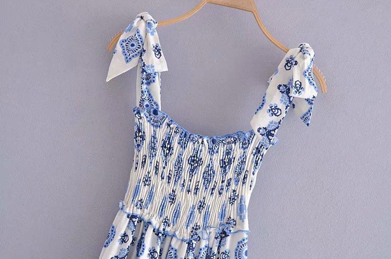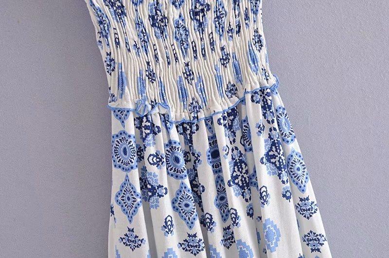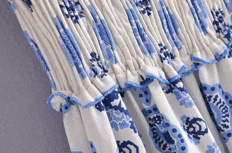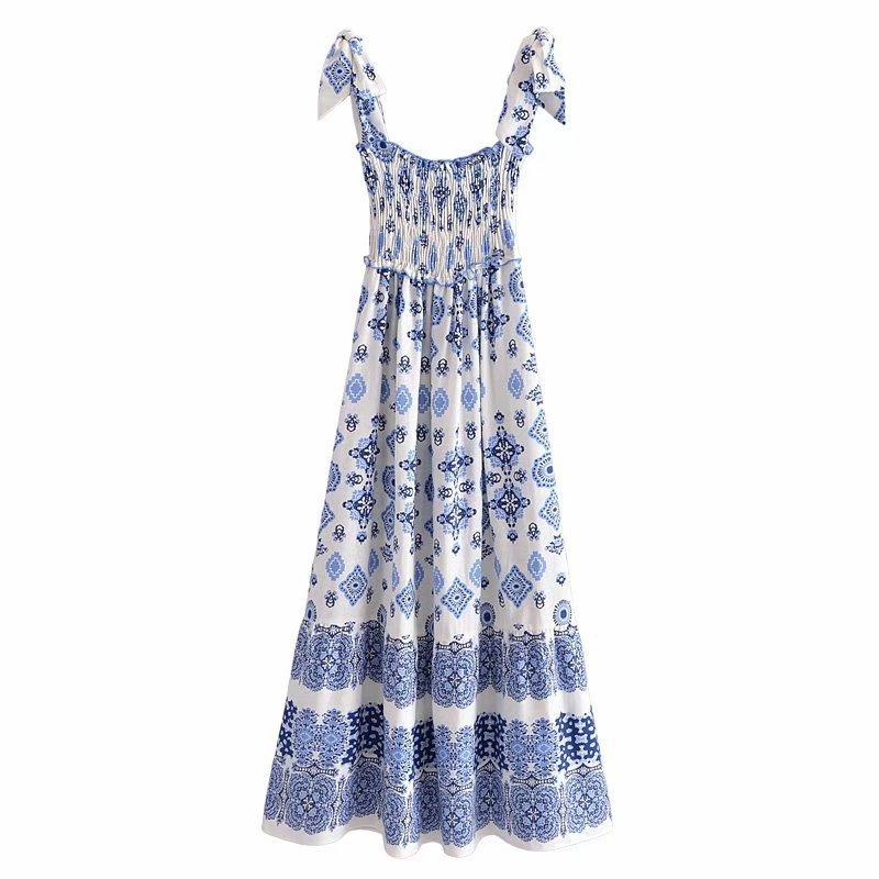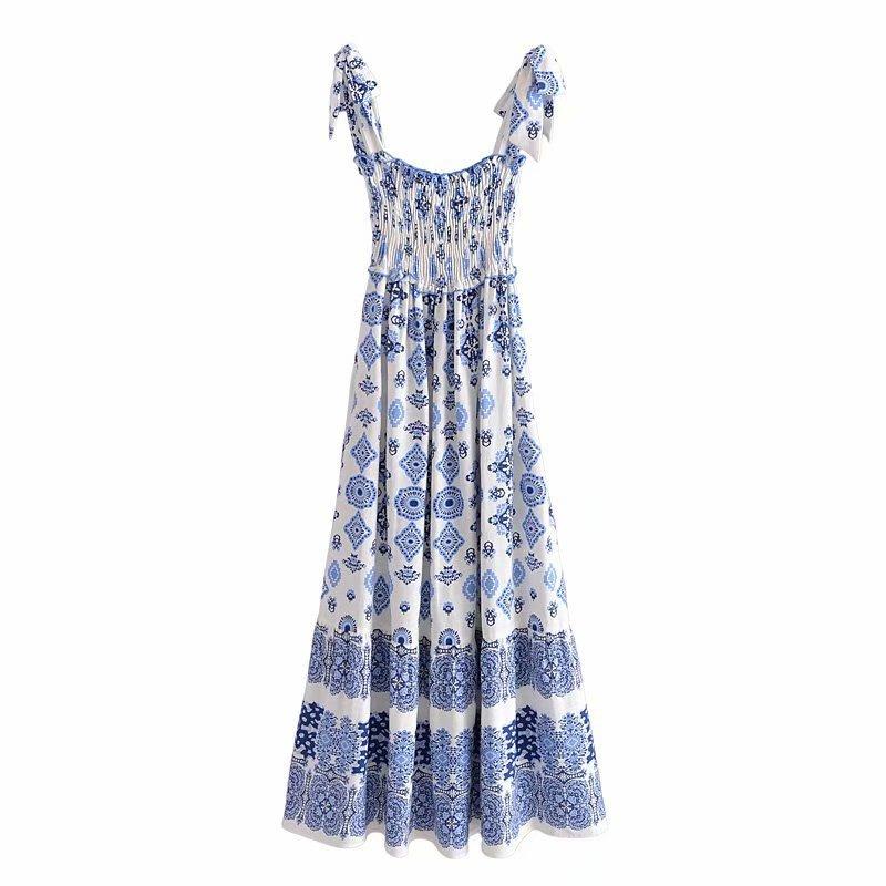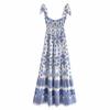 Venta al por mayor 2021 verano nuevo estilo europeo y americano ropa de mujer vestido largo estampado de porcelana azul y blanca