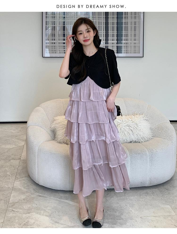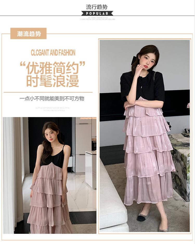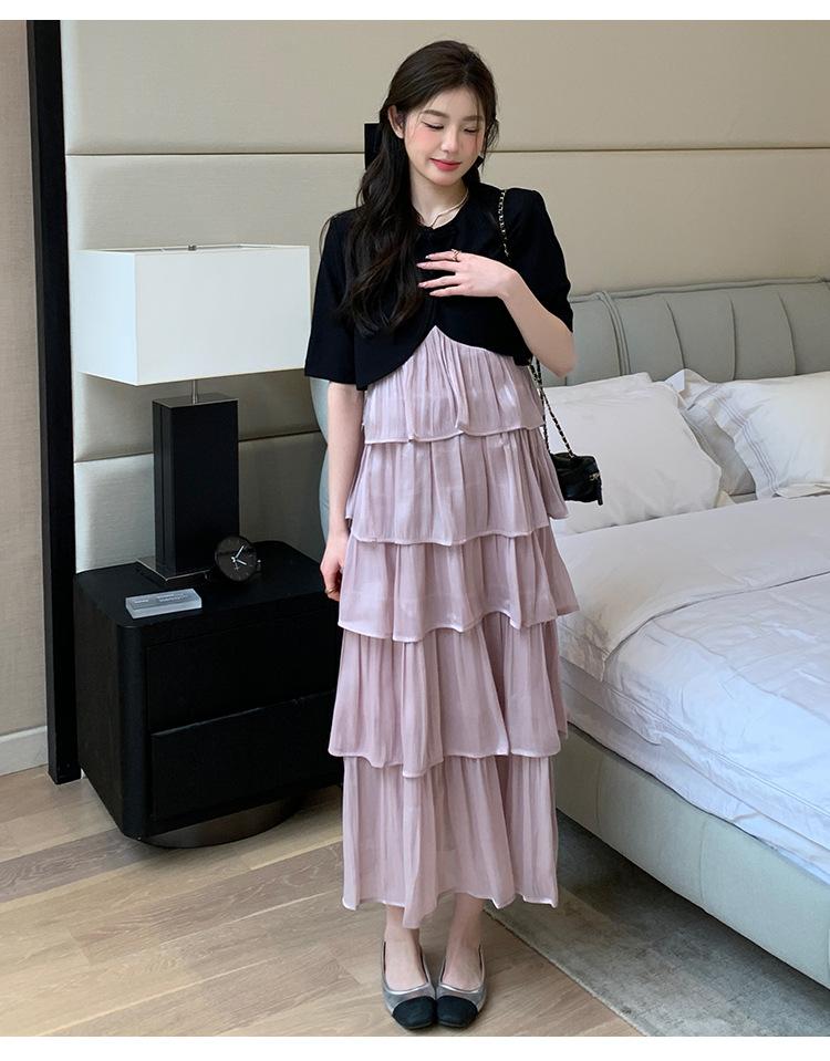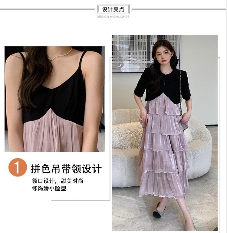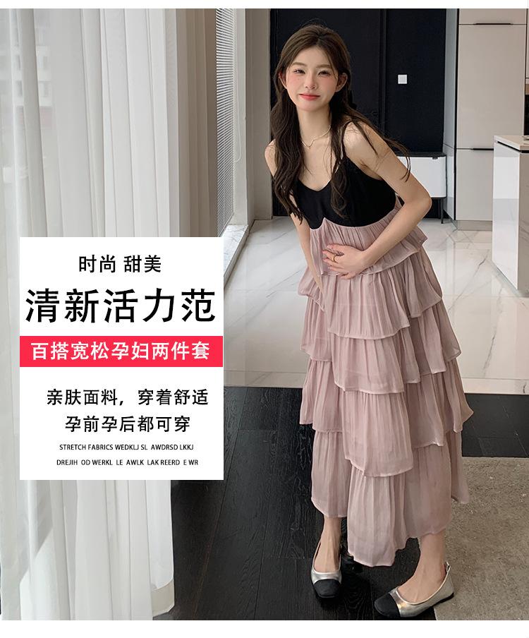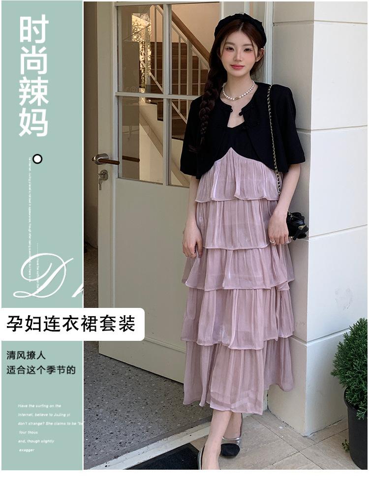 Vestido de Mujer Embarazada Verano Nuevo Moda Francesa de Alta Gama Mamá Caliente Suelto Slim Falda Pastel + Abrigo con Botones