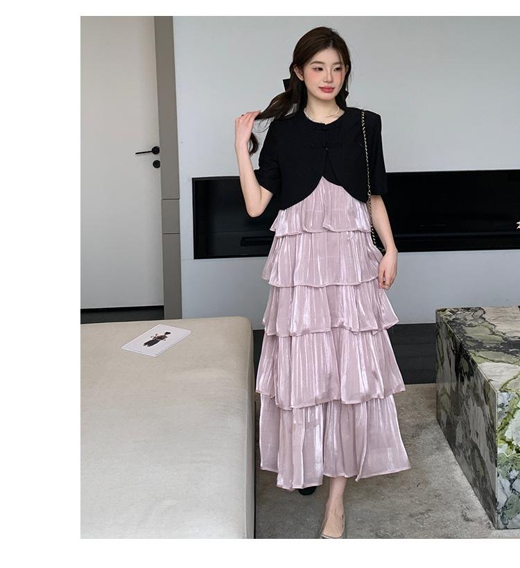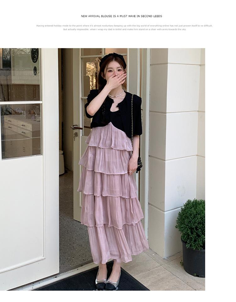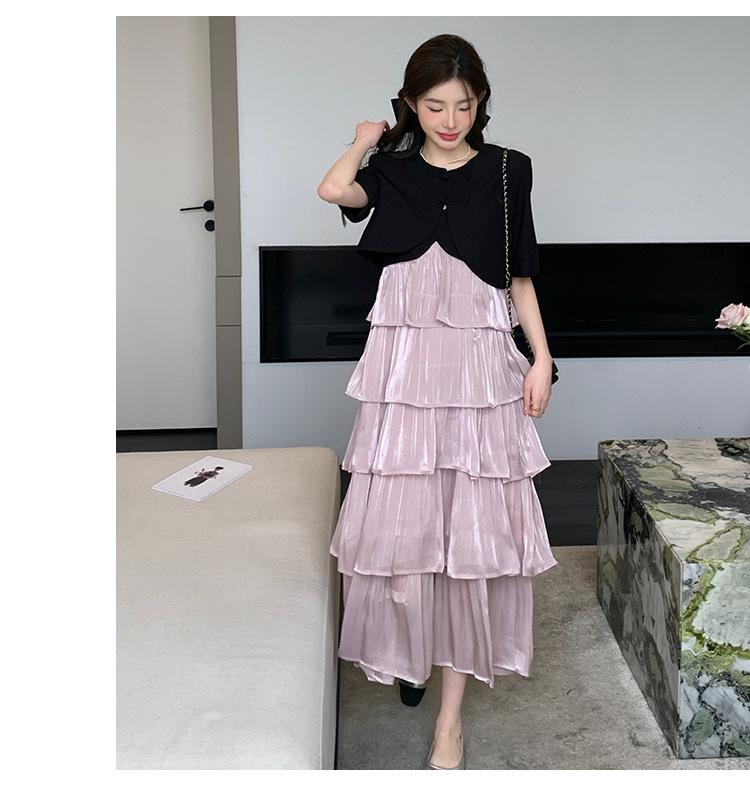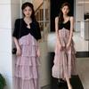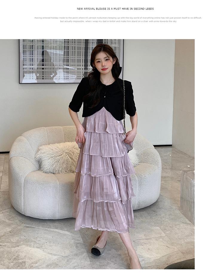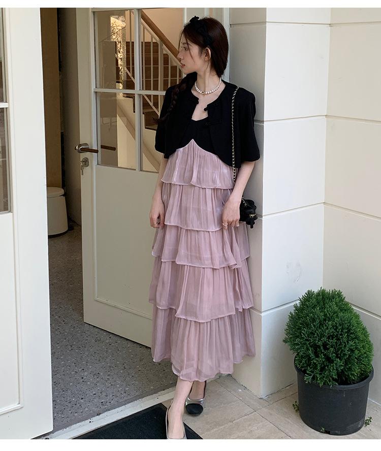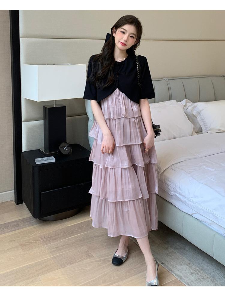 Vestido de Mujer Embarazada Verano Nuevo Moda Francesa de Alta Gama Mamá Caliente Suelto Slim Falda Pastel + Abrigo con Botones