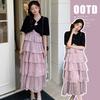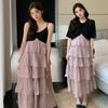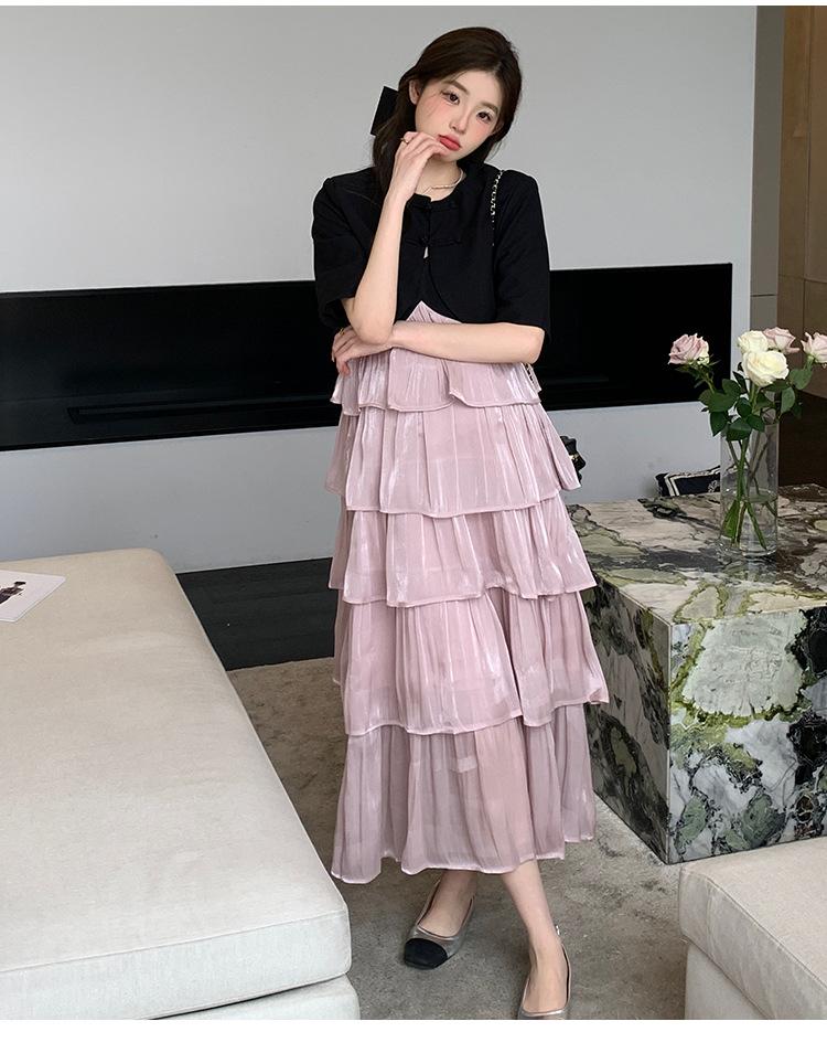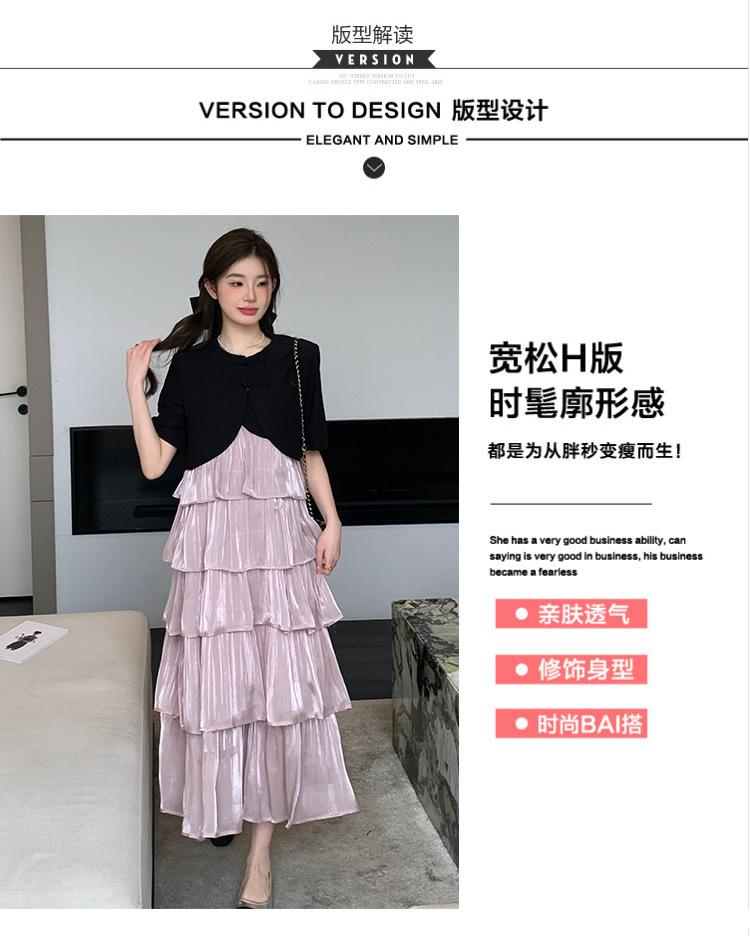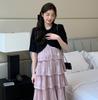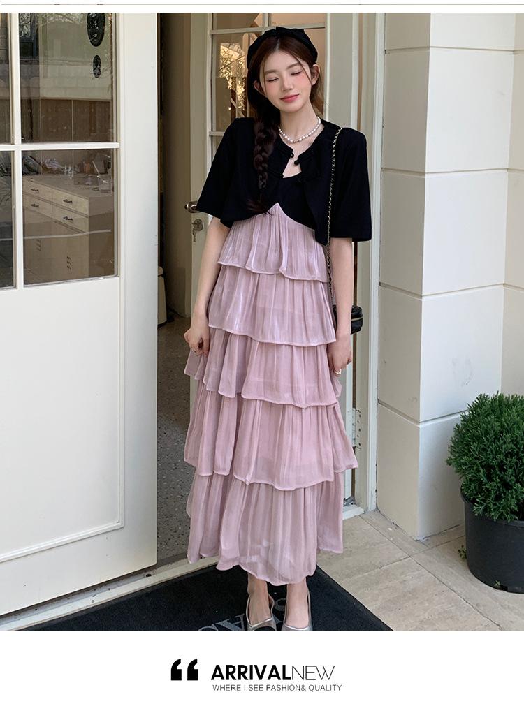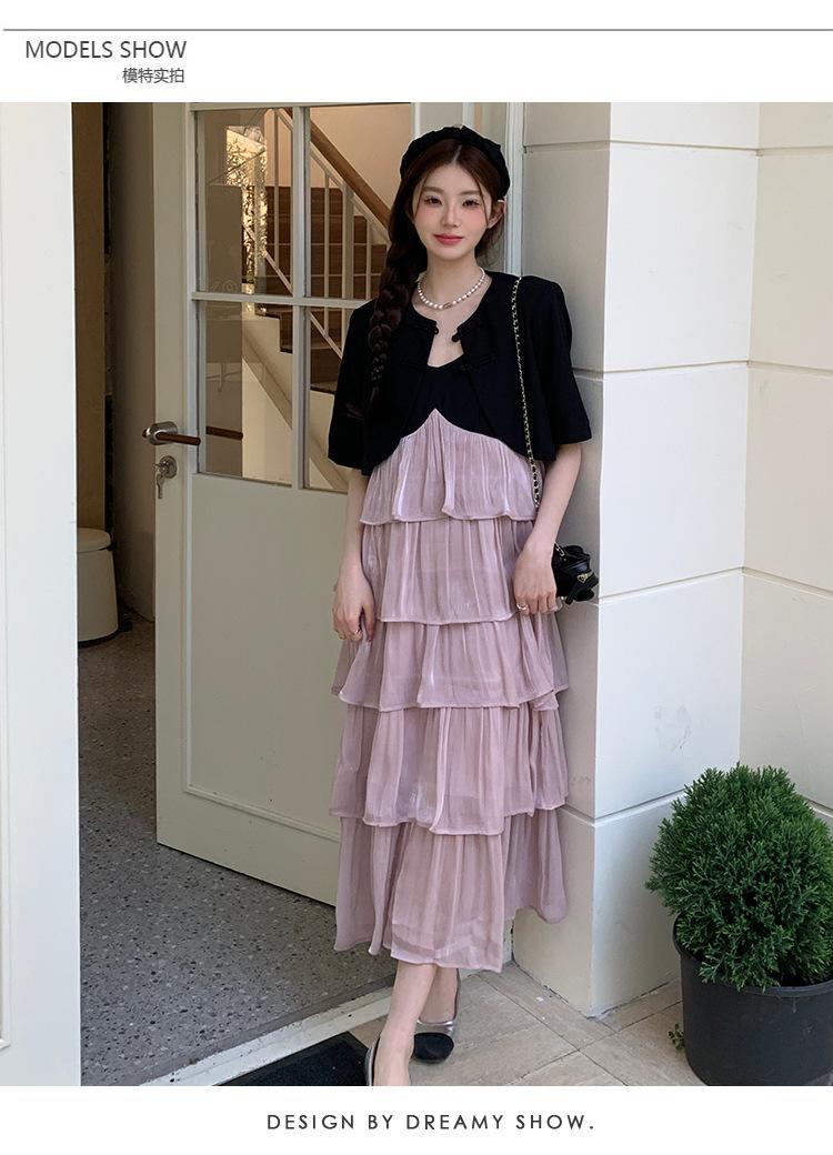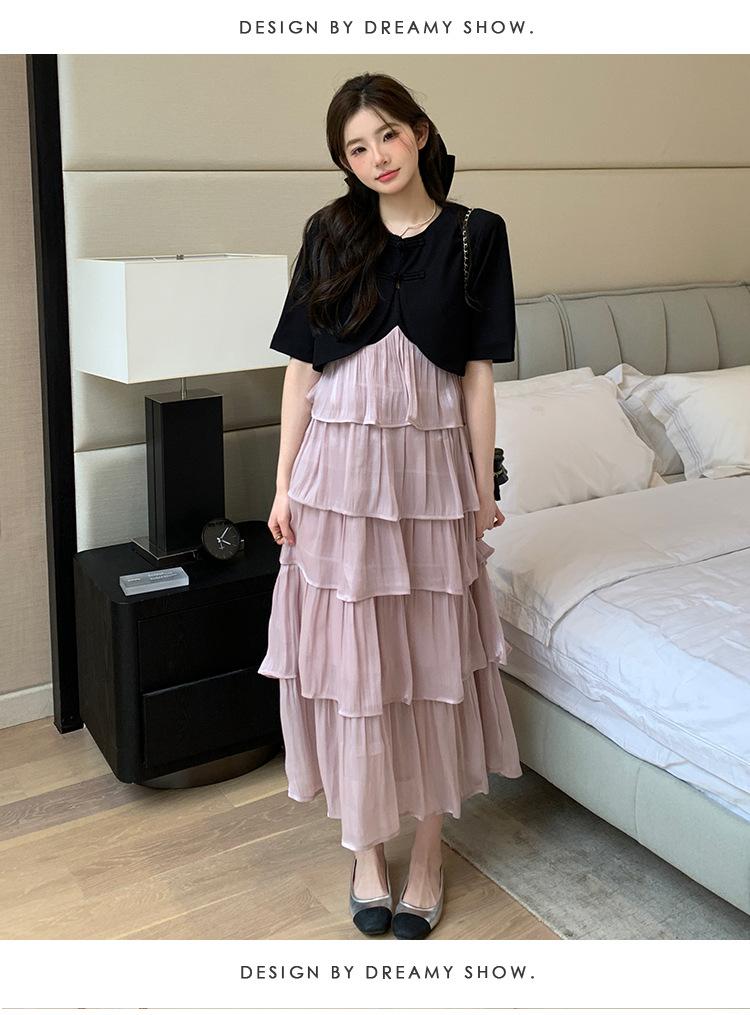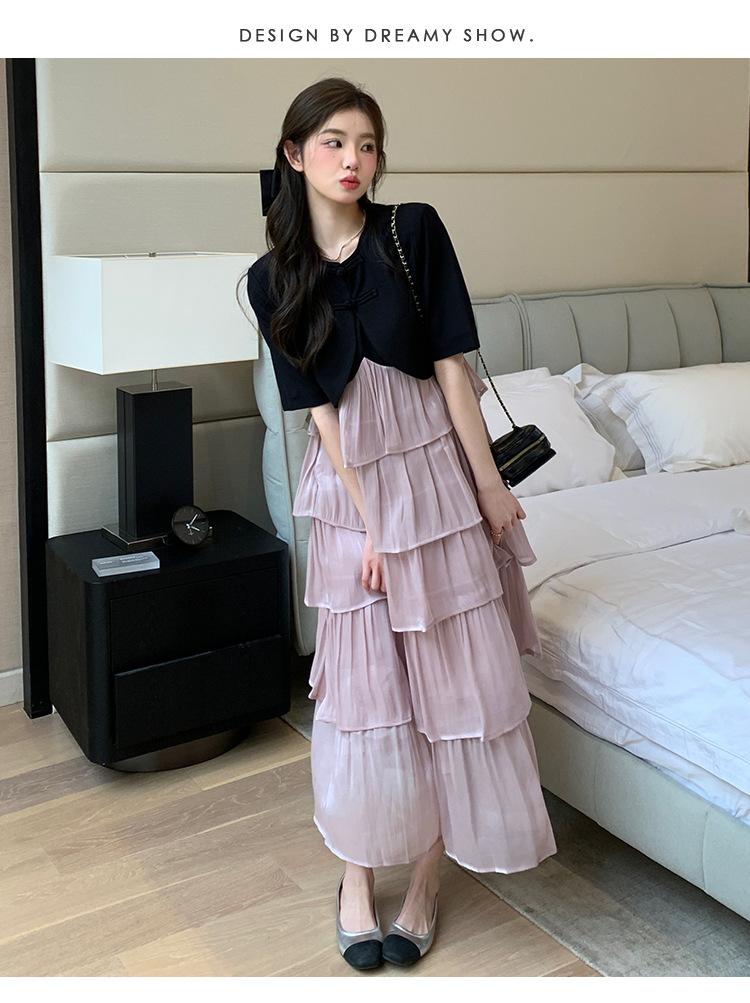 Vestido de Mujer Embarazada Verano Nuevo Moda Francesa de Alta Gama Mamá Caliente Suelto Slim Falda Pastel + Abrigo con Botones