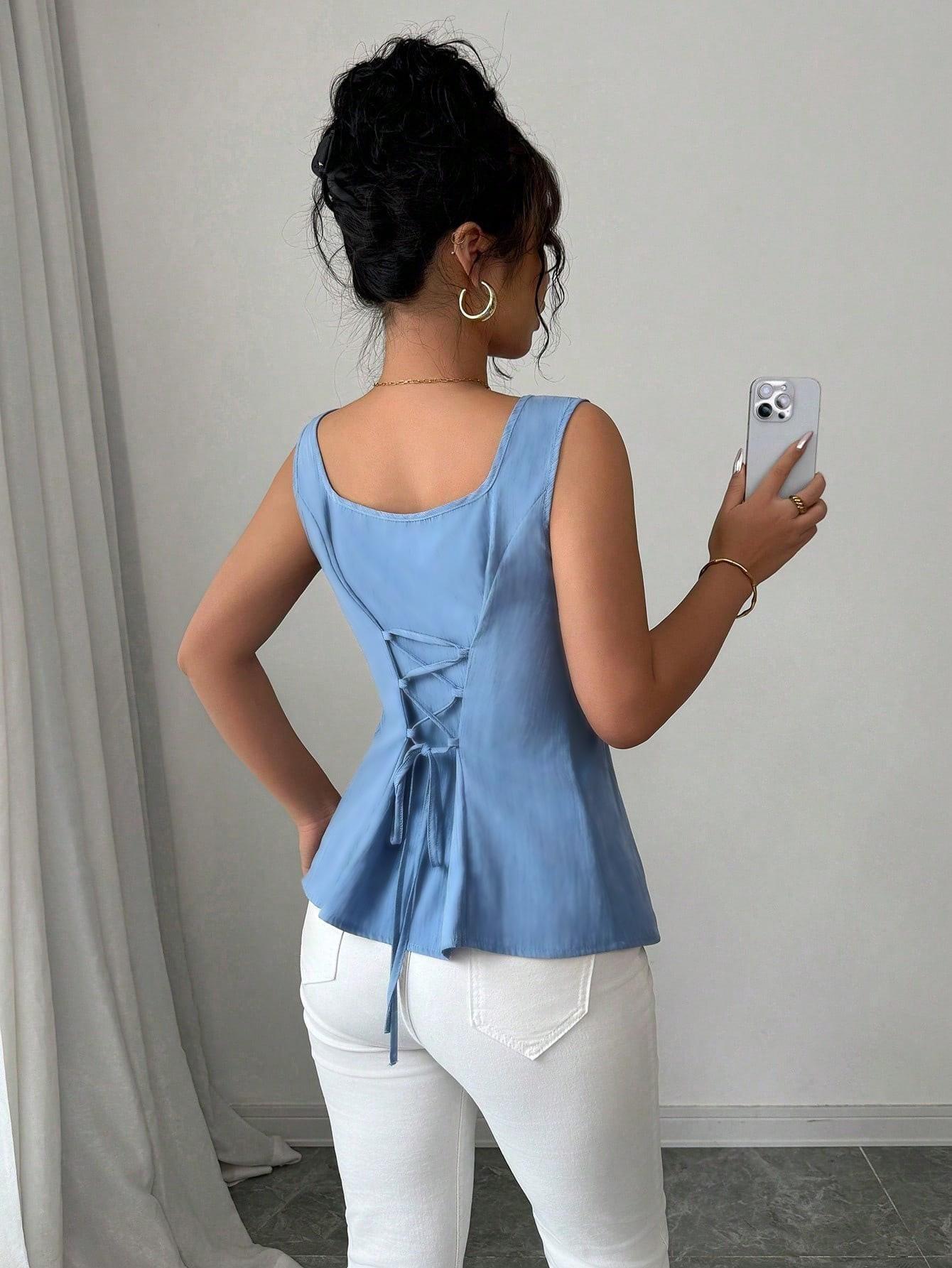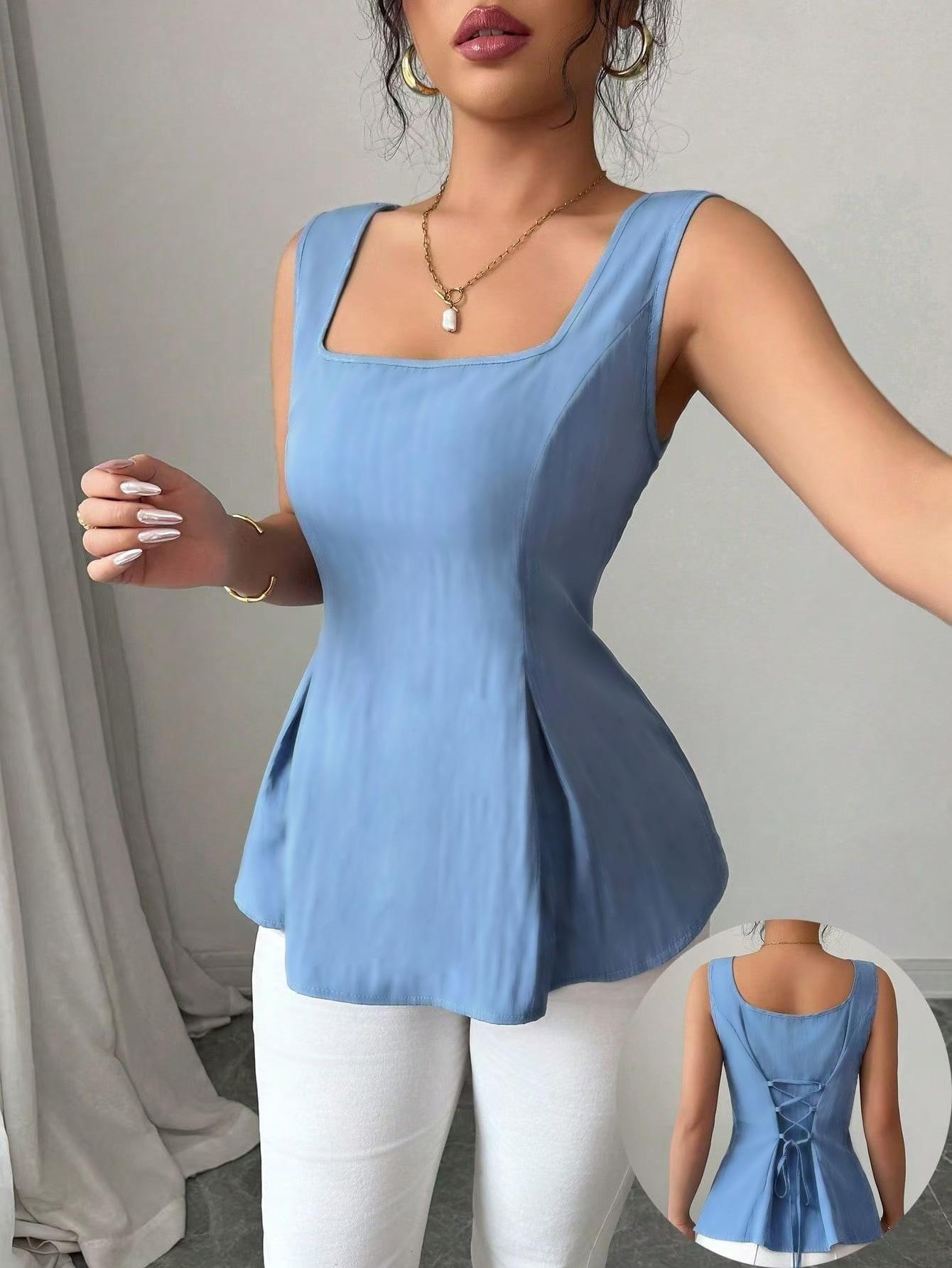 Exportación Transfronteriza Top Europeo y Americano sin Mangas con Tirantes y Cordón 2025 Verano Chaleco Francés Pulóver Ajustado Ropa de Mujer